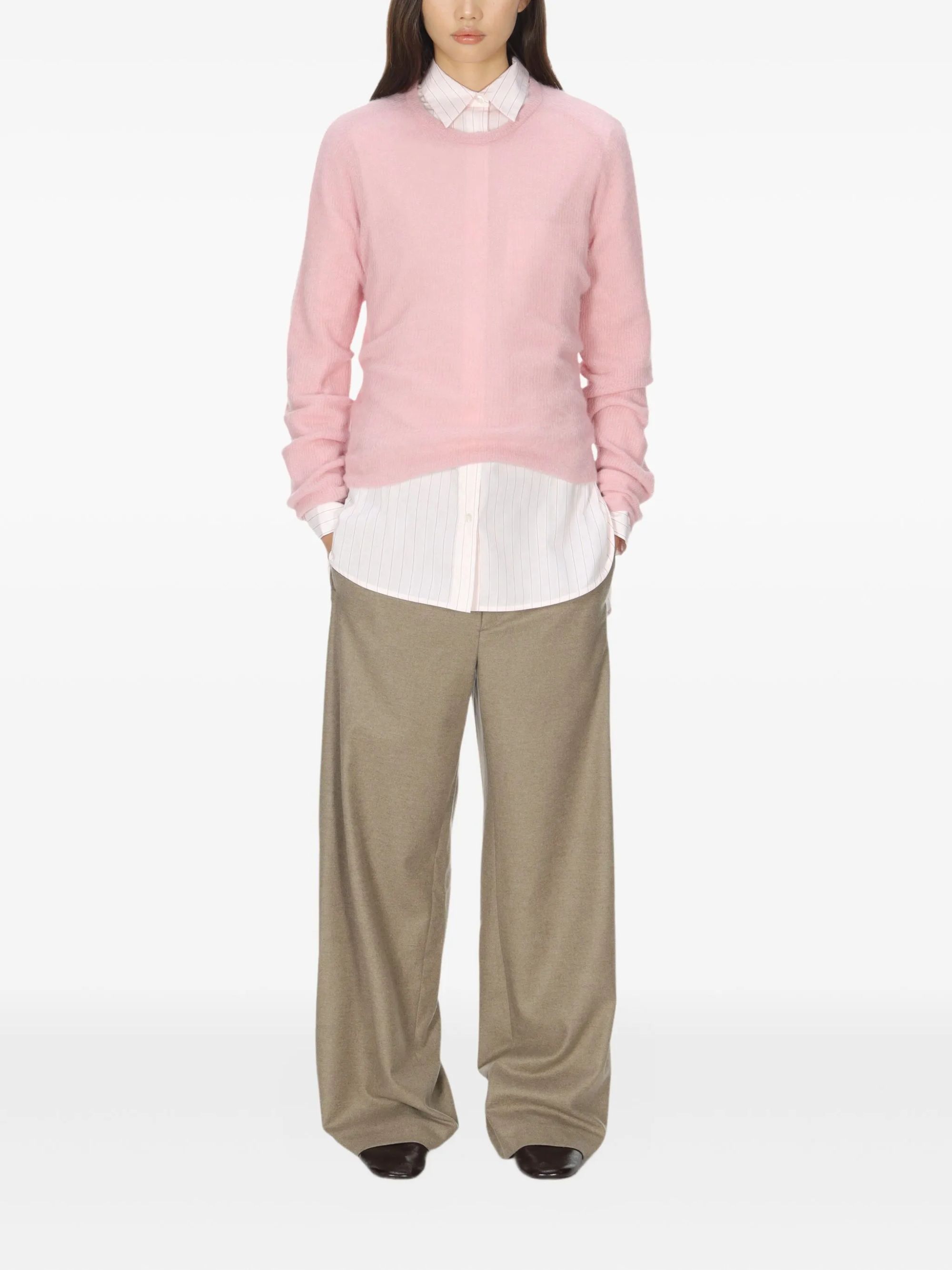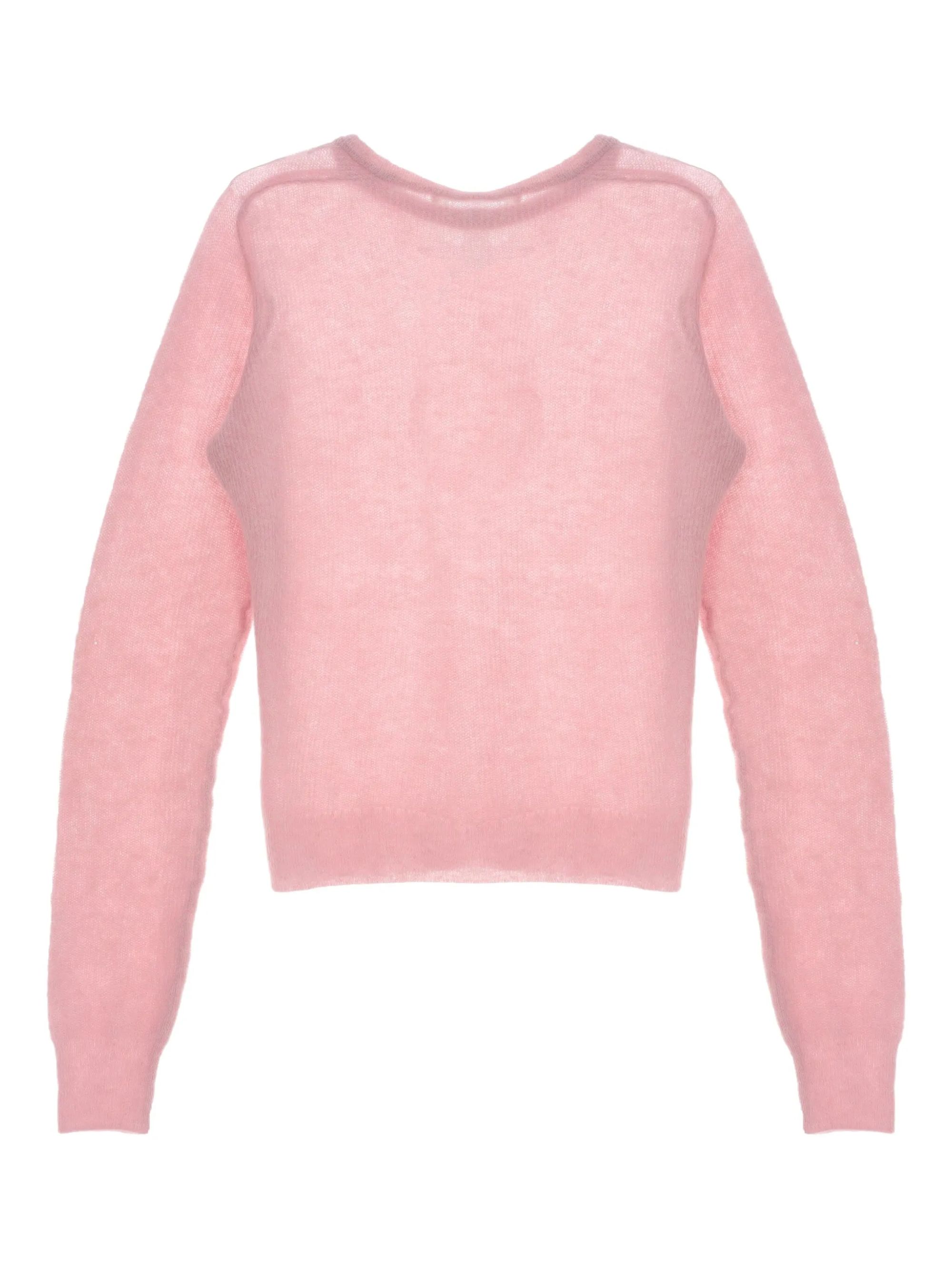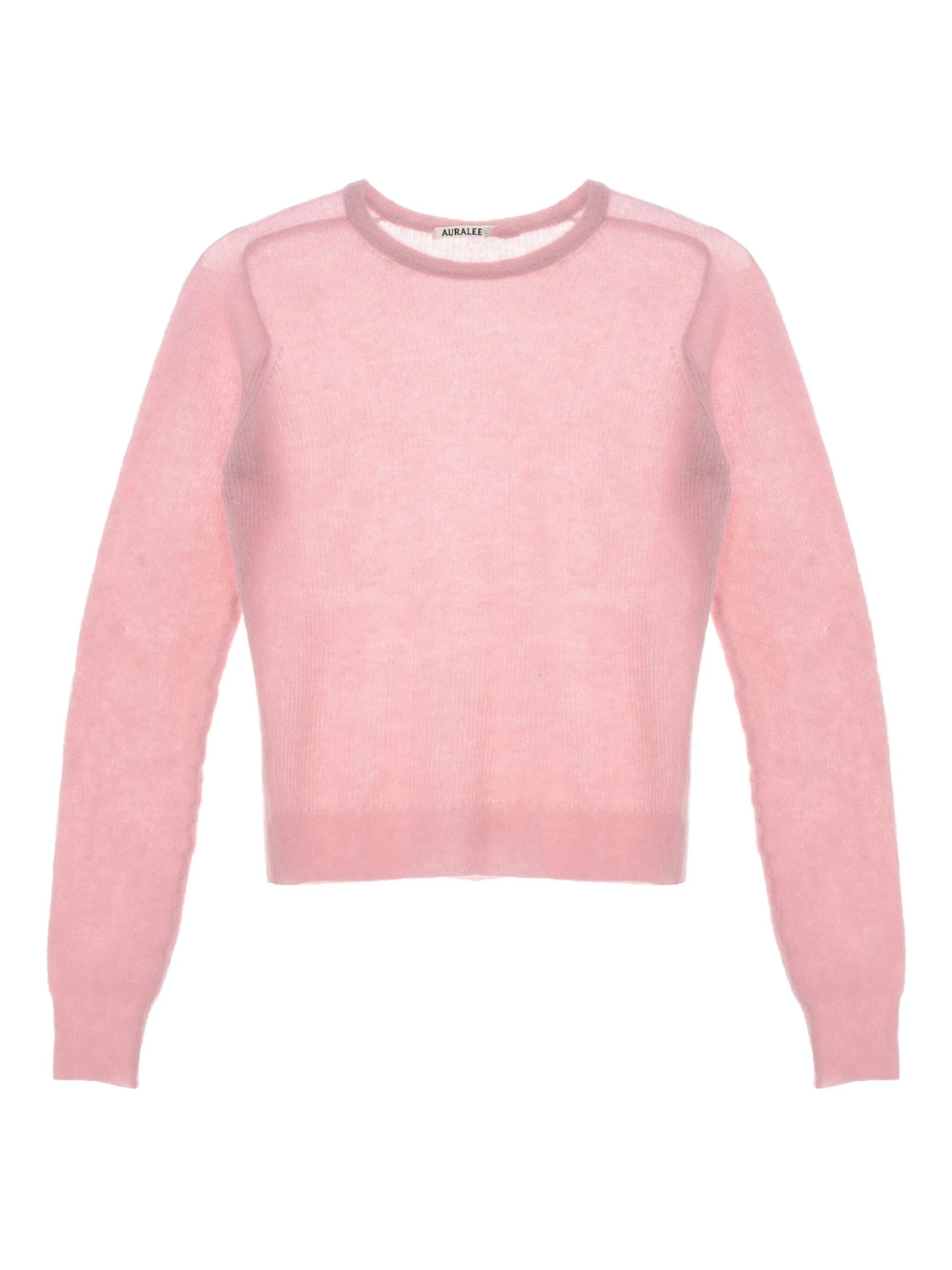 Maglione girocollo in lana di alpaca di AURALEE rosa, caratterizzato da girocollo, costruzione semi-trasparente, maniche lunghe e orlo dritto.