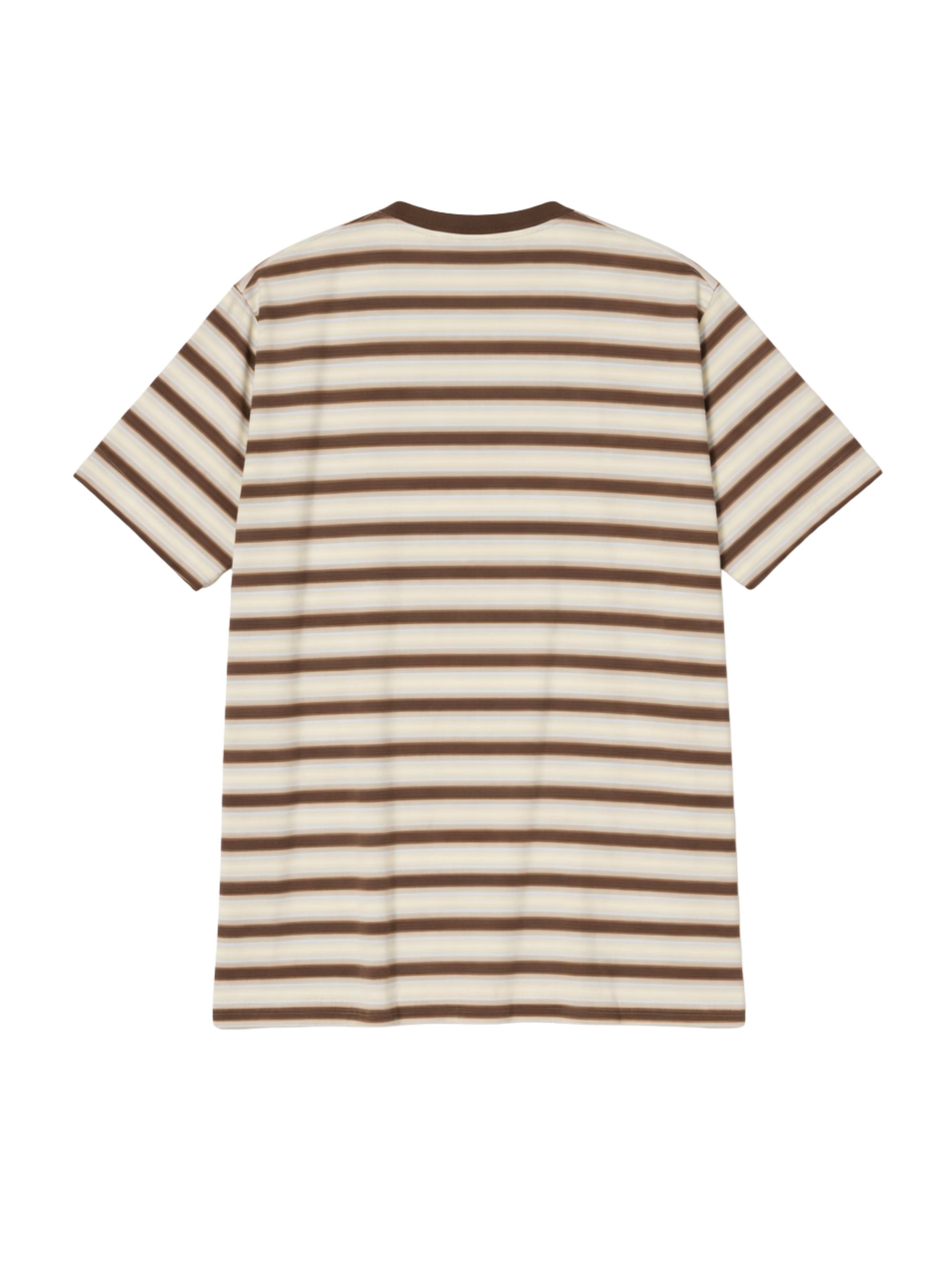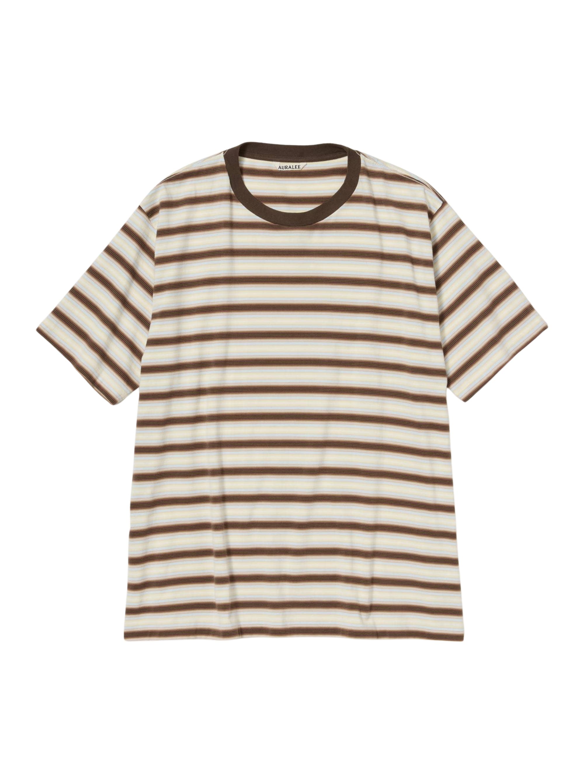 T-shirt in cotone di AURALEE marrone a righe a girocollo.