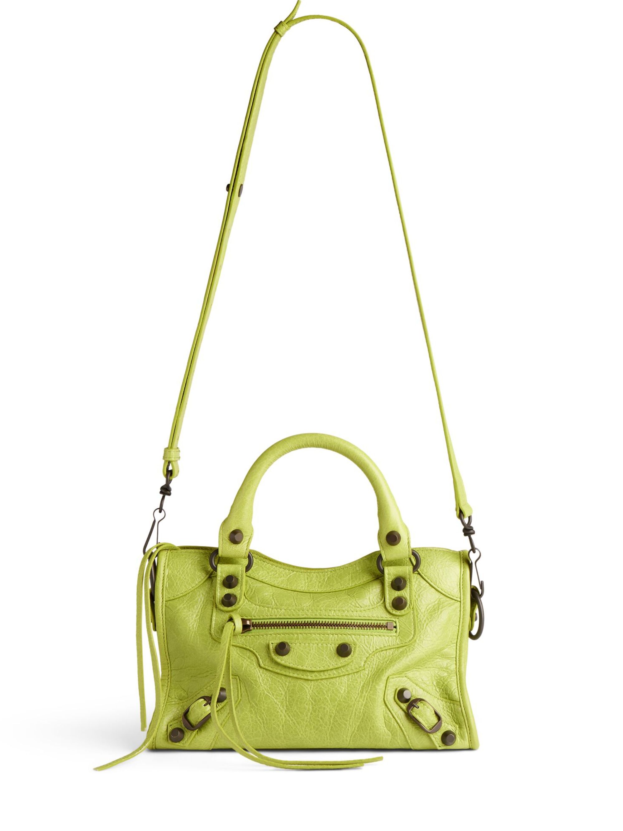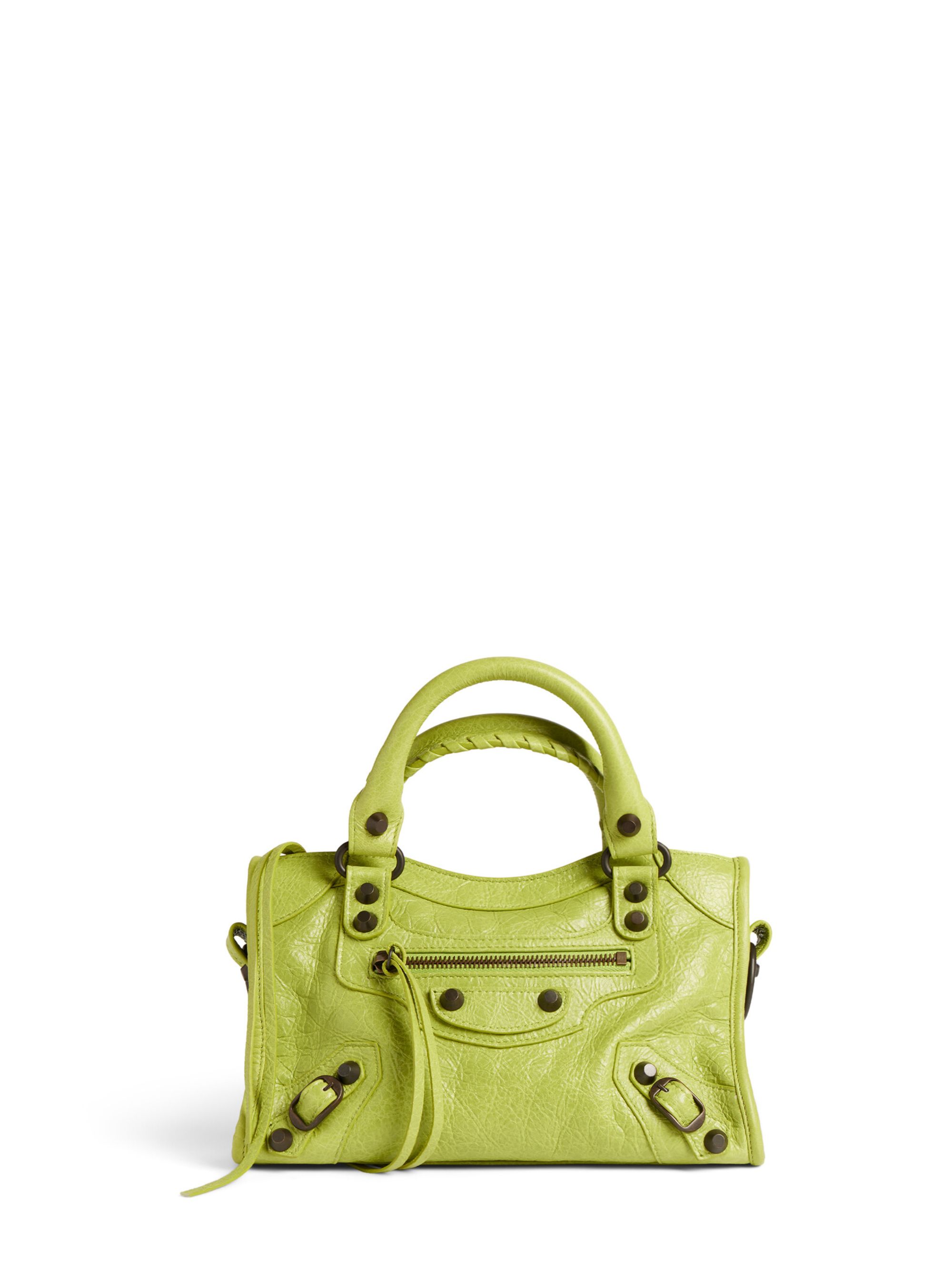 Borsa Le City mini di BALENCIAGA verde in pelle, caratterizzata da due manici, tracolla rimovibile e regolabile, finiture argento, chiusura con zip, nastri e tasca anteriore con zip. Dimensioni: 24 x 16 x 6,5 CM.
