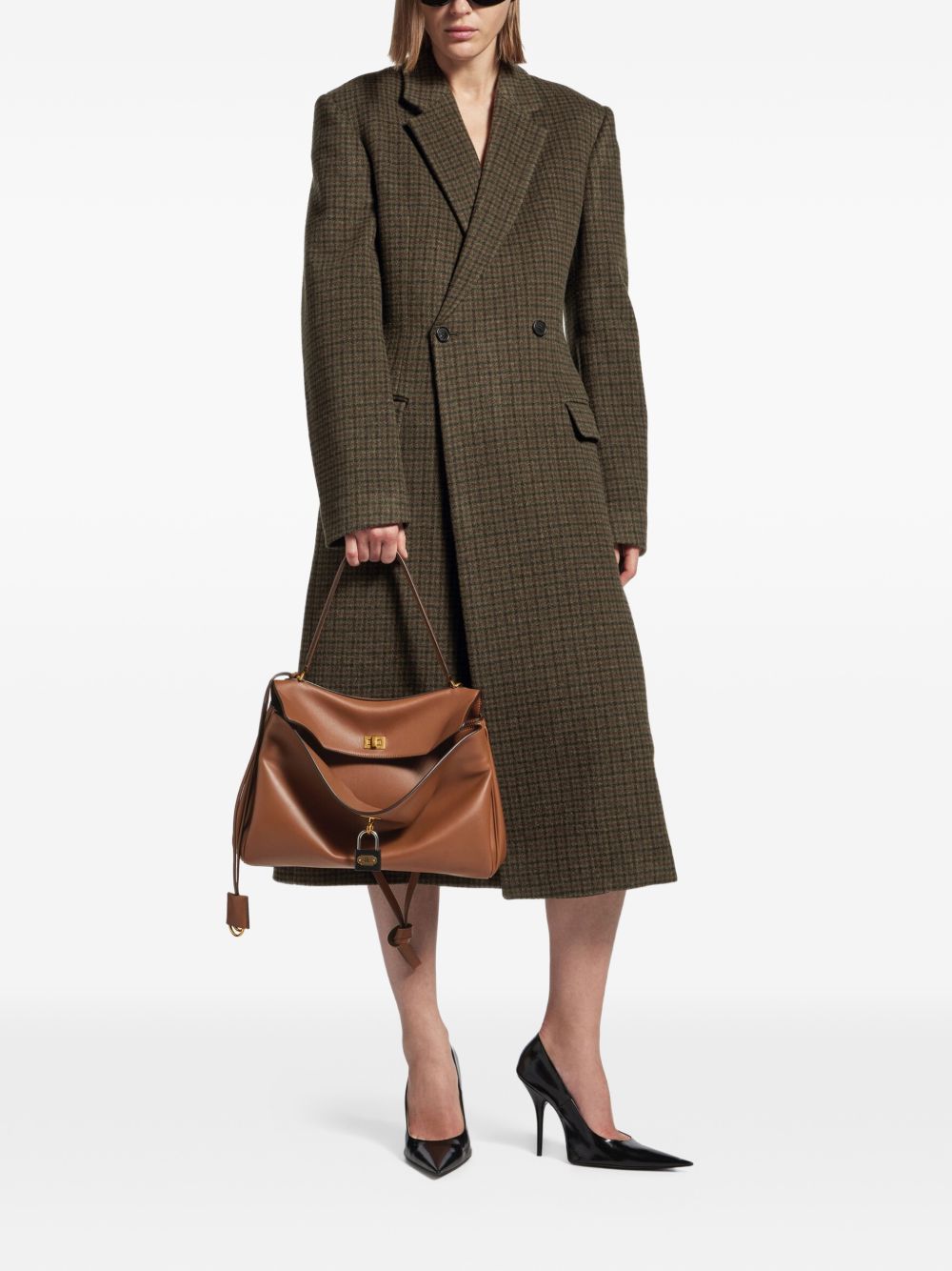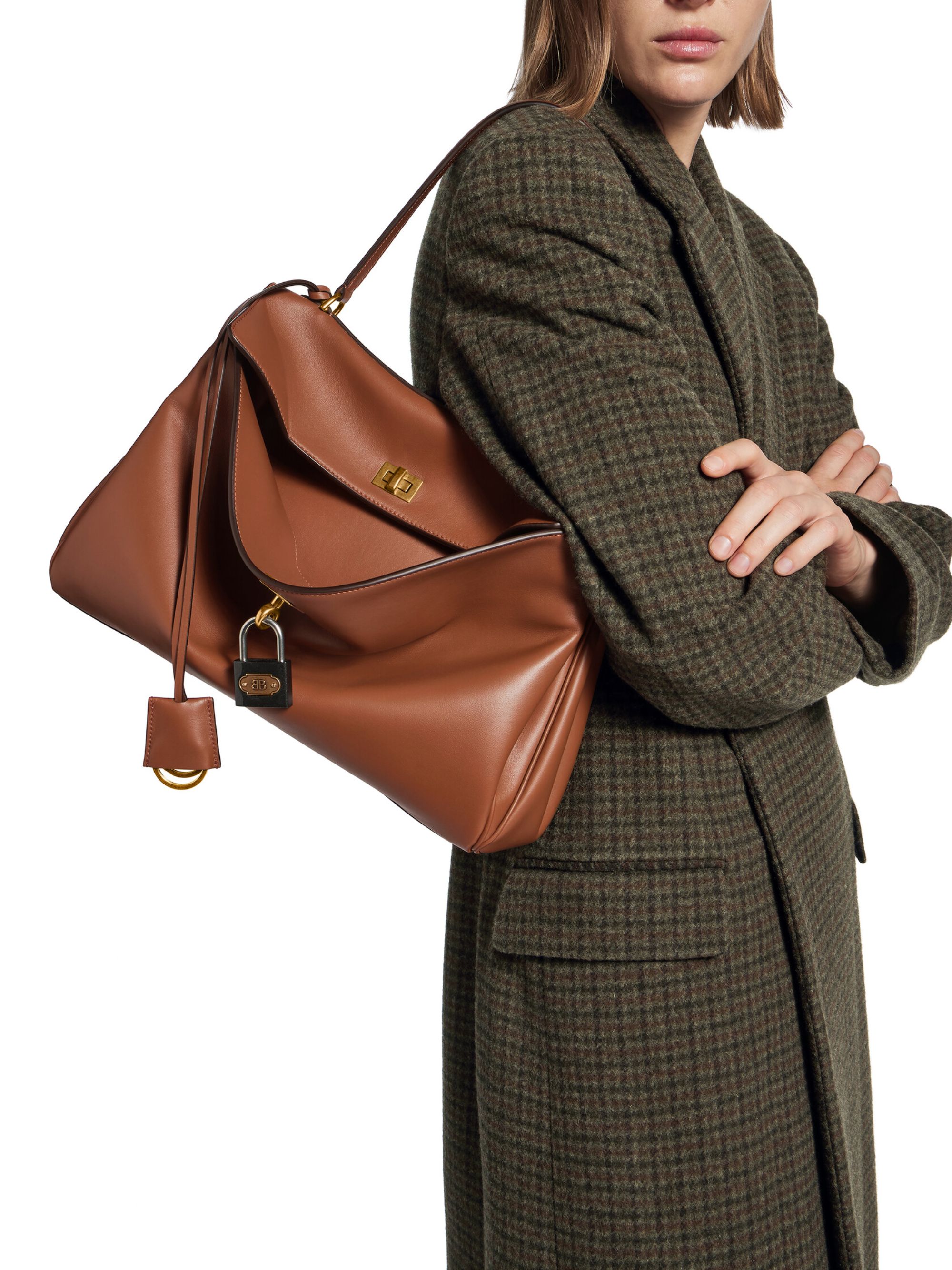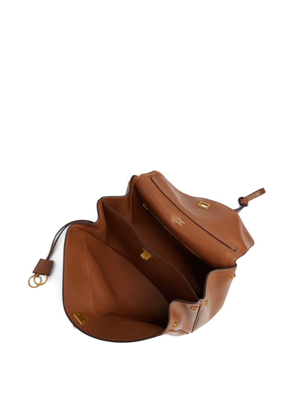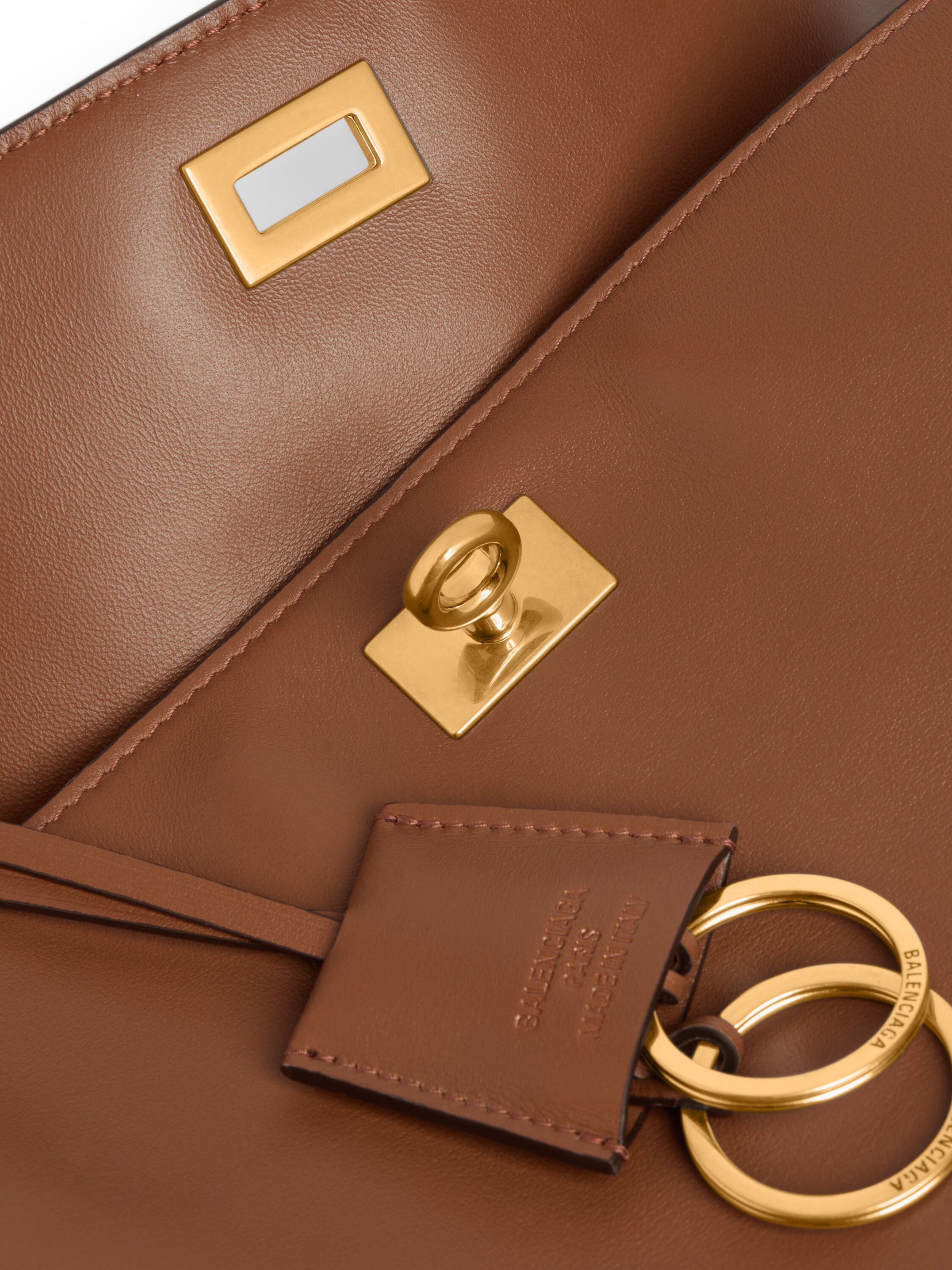 Borsa Rodeo di BALENCIAGA marrone in pelle, caratterizzata da manico, tracolla rimovibile, portachiavi rimovibile, finiture in oro anticato, chiusura a girello, tasca anteriore e piedini in ottone. Dimensioni: 35 x 23,5 x 11 CM.
