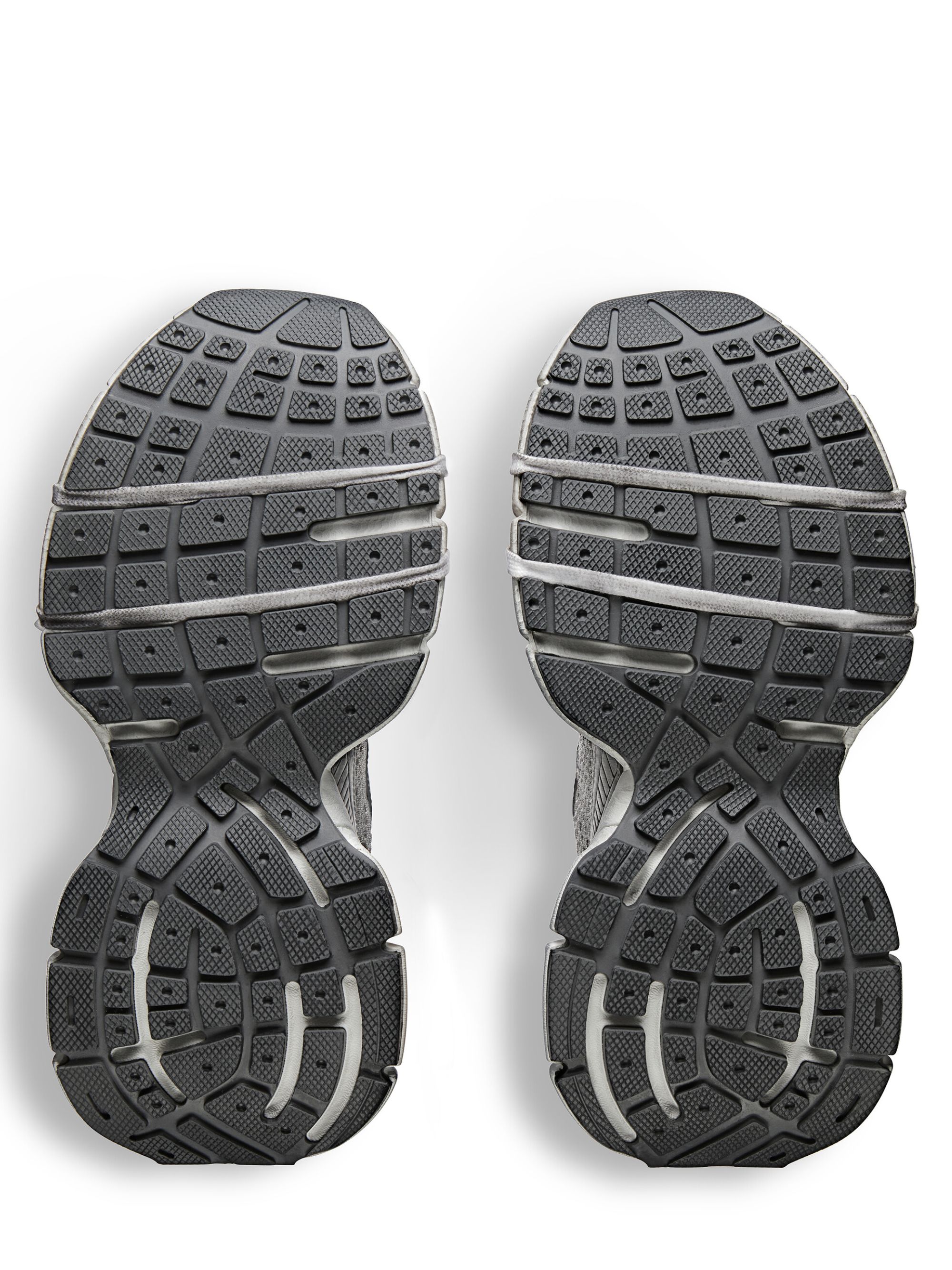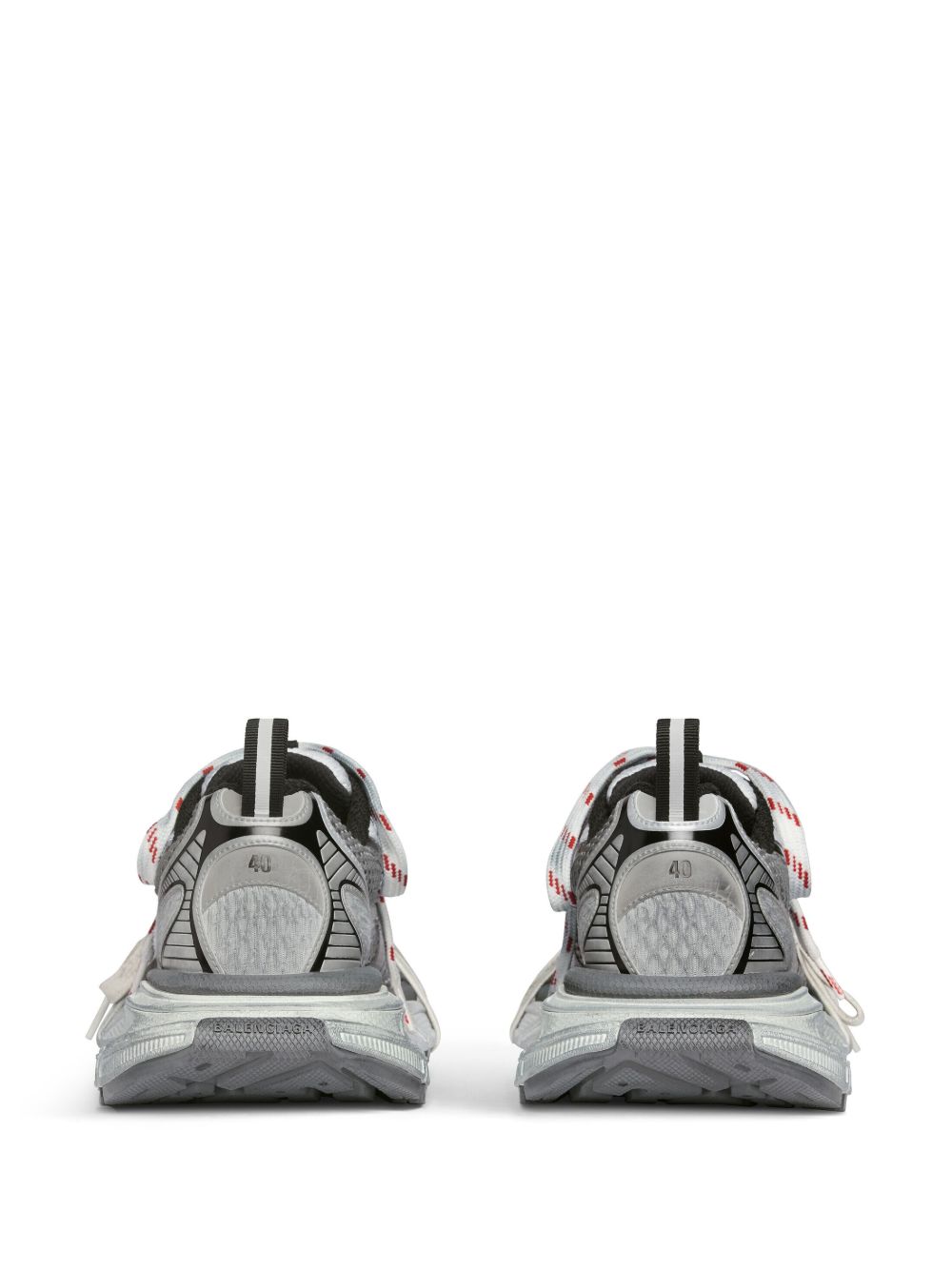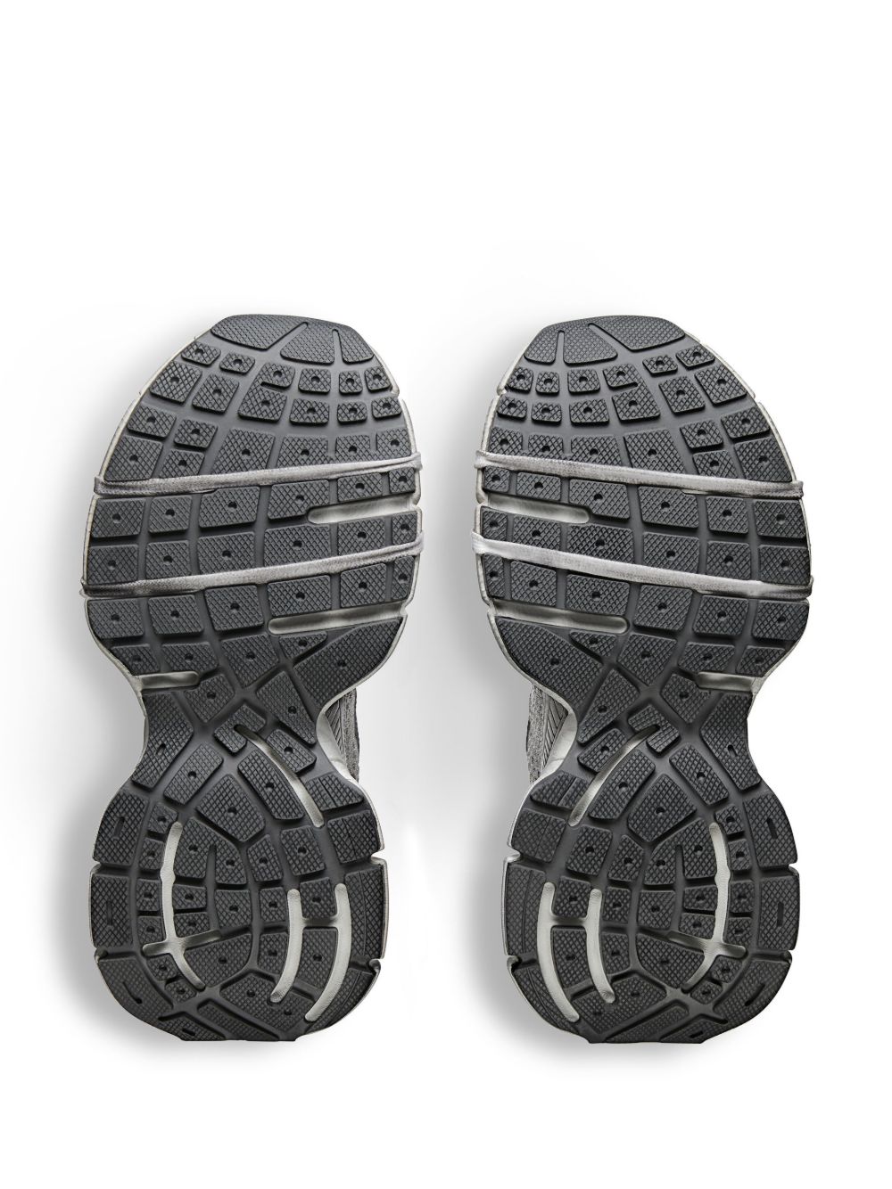 Sneaker 3XL di BALENCIAGA grigia in mesh, caratterizzata da effetto consumato, logo, branding 3XL in gomma sulla linguetta, chiusura con lacci e dettagli riflettenti.