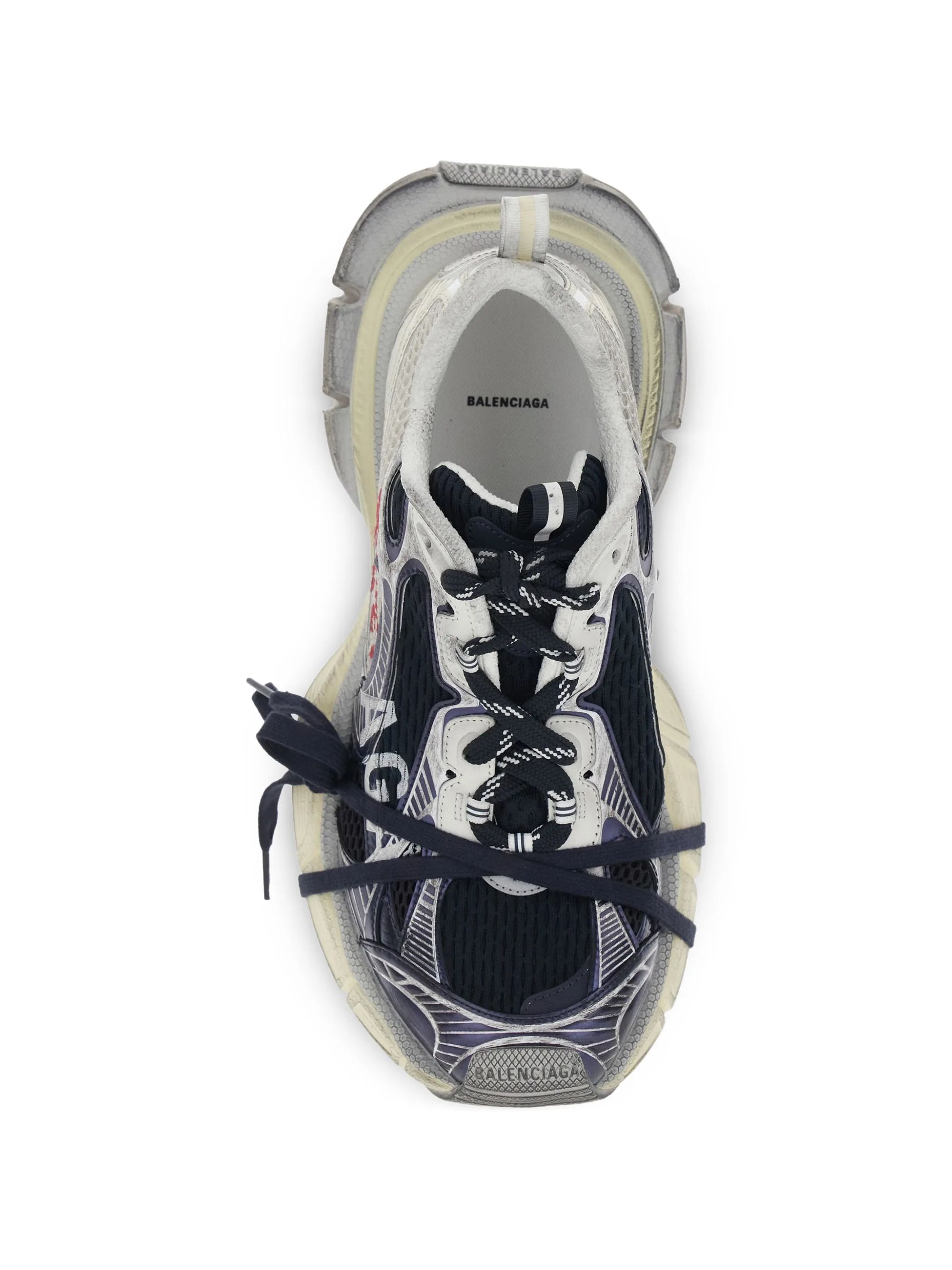 Sneaker 3XL Split Logo di BALENCIAGA multicolor, caratterizzata da chiusura con lacci, effetto consumato, motivo split stampato all'esterno logo, marchio 3XL sulla linguetta e suola in gomma.