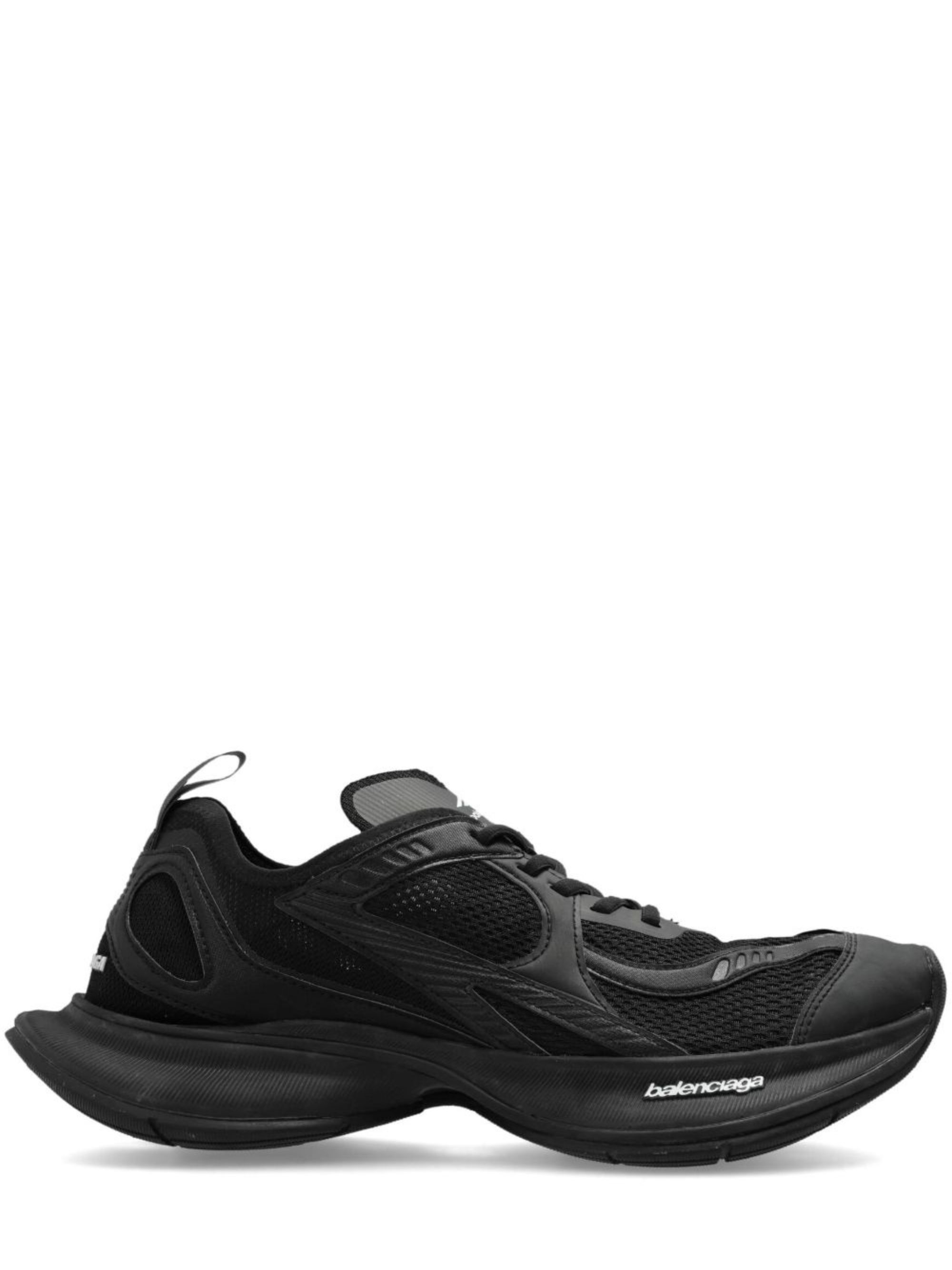 Sneaker Circuit di BALENCIAGA nera in nylon, caratterizzata da effetto consumato, chiusura con lacci, logo laterale e suola in gomma.