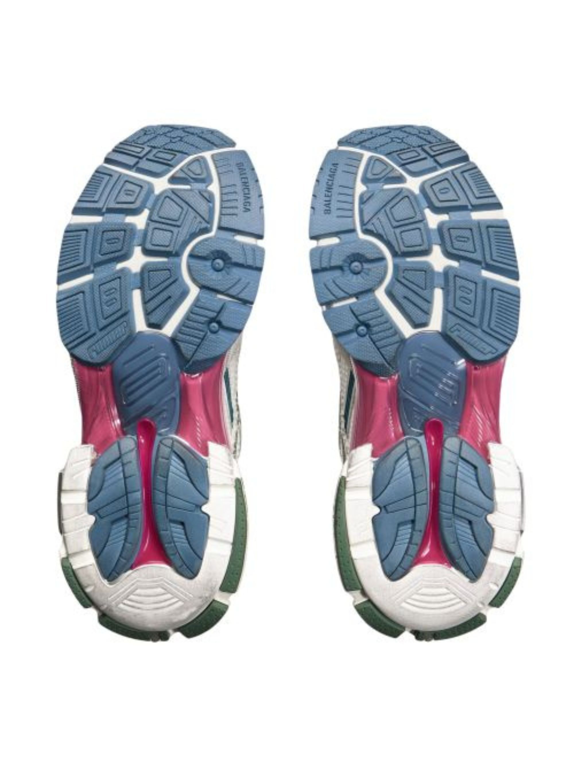 Sneaker Runner di BALENCIAGA bianca e multicolor in rete con suola chunky in gomma e chiusura con lacci.