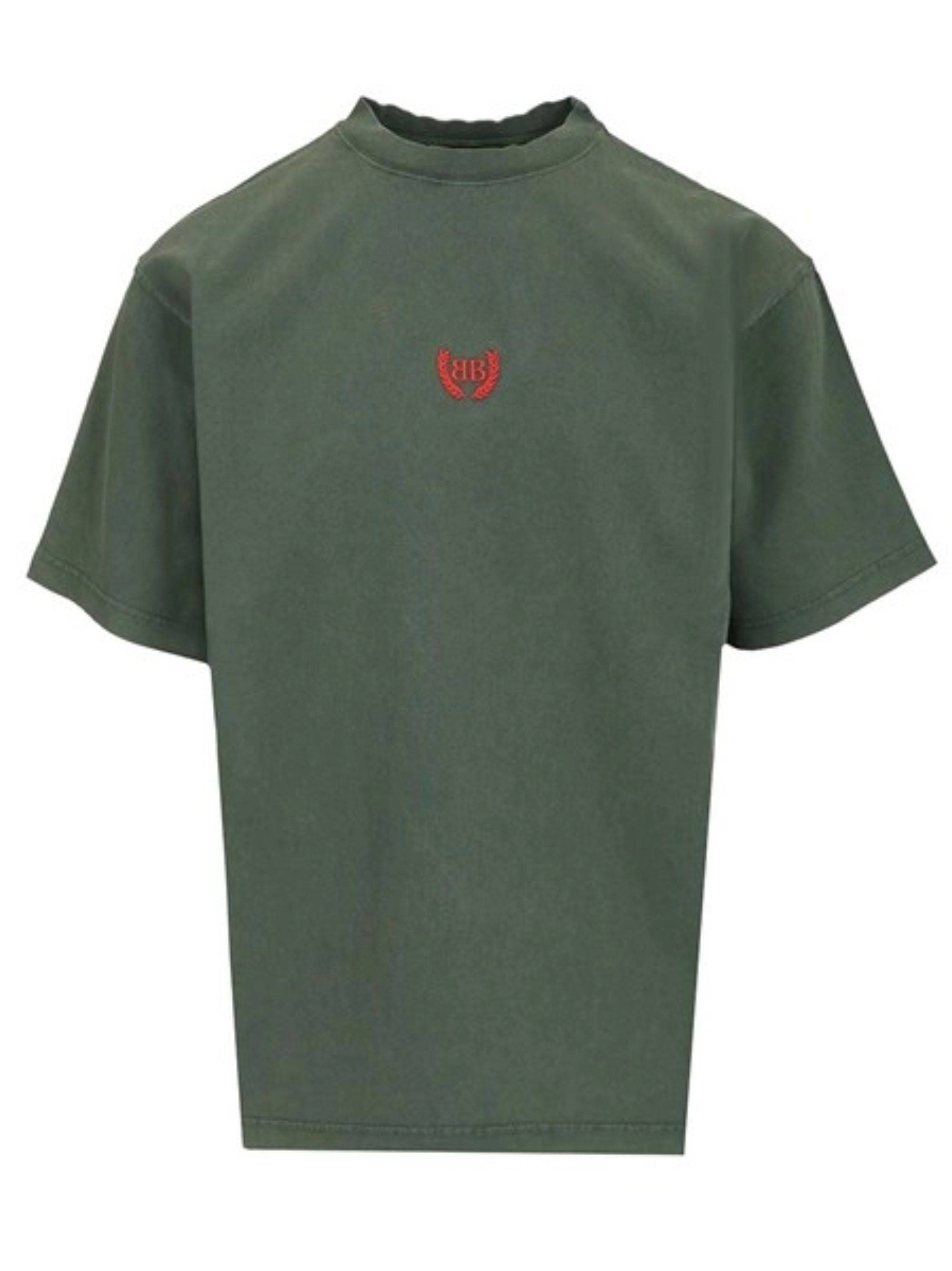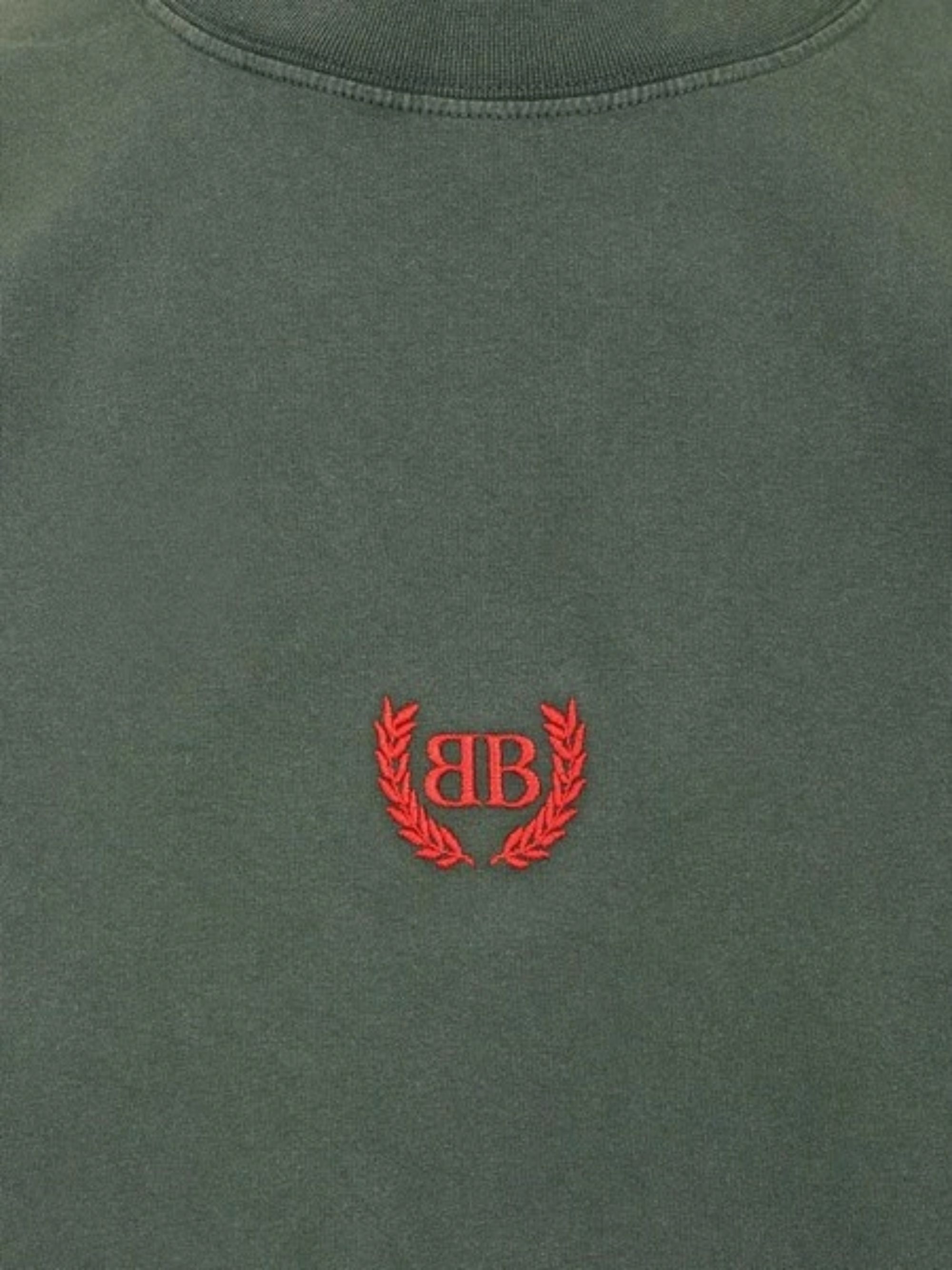 T-shirt Laurel Classic di BALENCIAGA verde in cotone, caratterizzata da girocollo, maniche corte e ricamo classico con motivo alloro sul davanti.