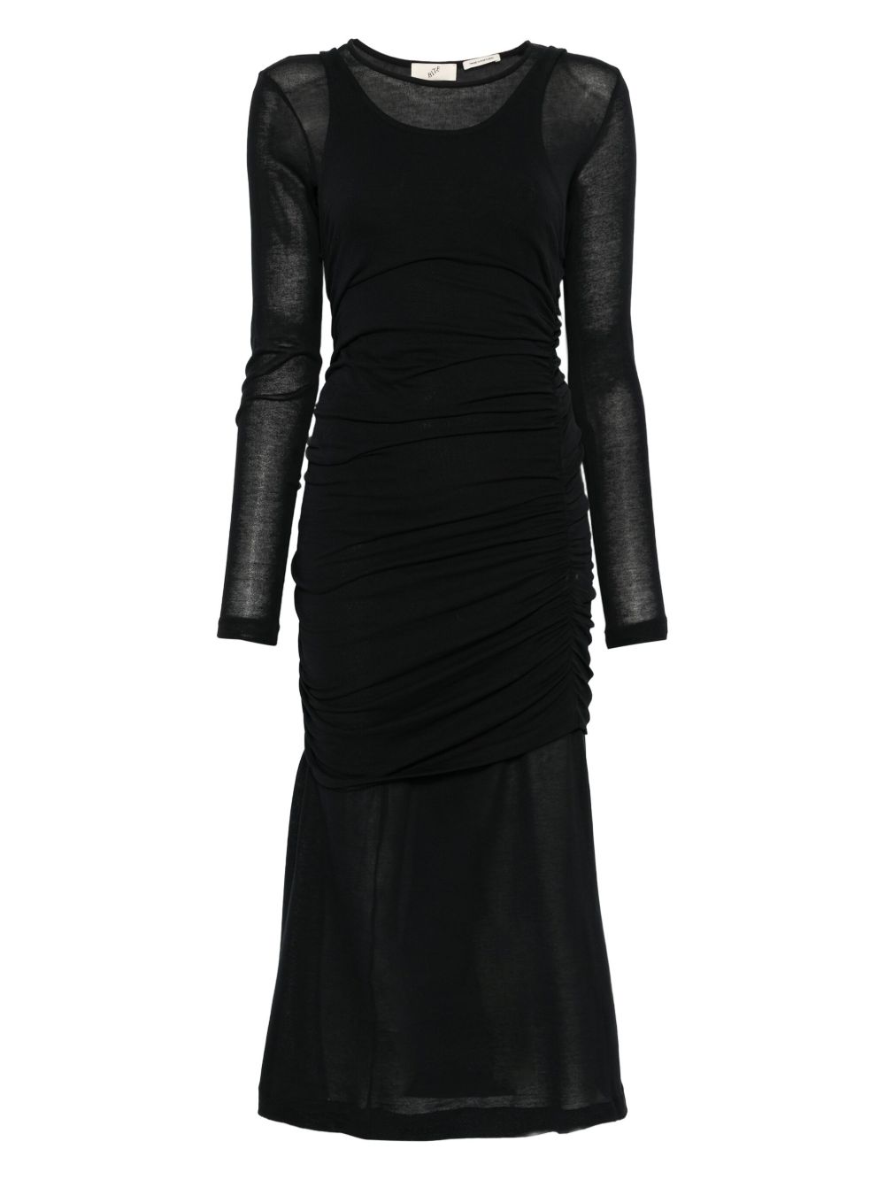 Abito Rigel di BITE STUDIOS nero in cotone con dettaglio con arricciatura, design a più strati, scollo rotondo e lunghezza midi.