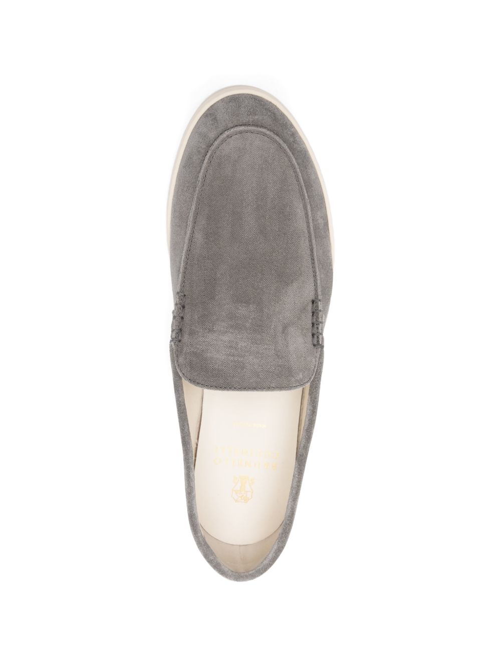 Mocassino slip-on di BRUNELLO CUCINELLI grigio in pelle scamosciata, caratterizzato da suola in gomma e design slip-on con punta arrotondata.