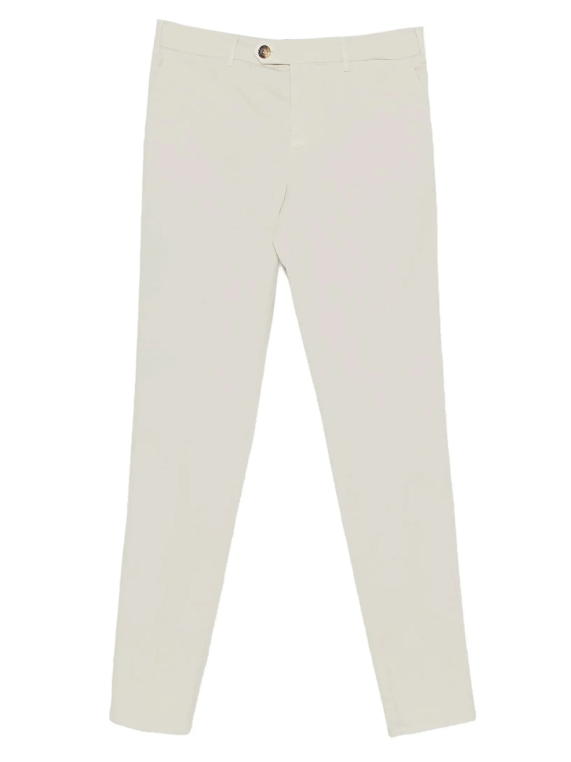 Pantalone di BRUNELLO CUCINELLI grigio in cotone a gamba drritta con passanti e chiusura con zip e bottone.