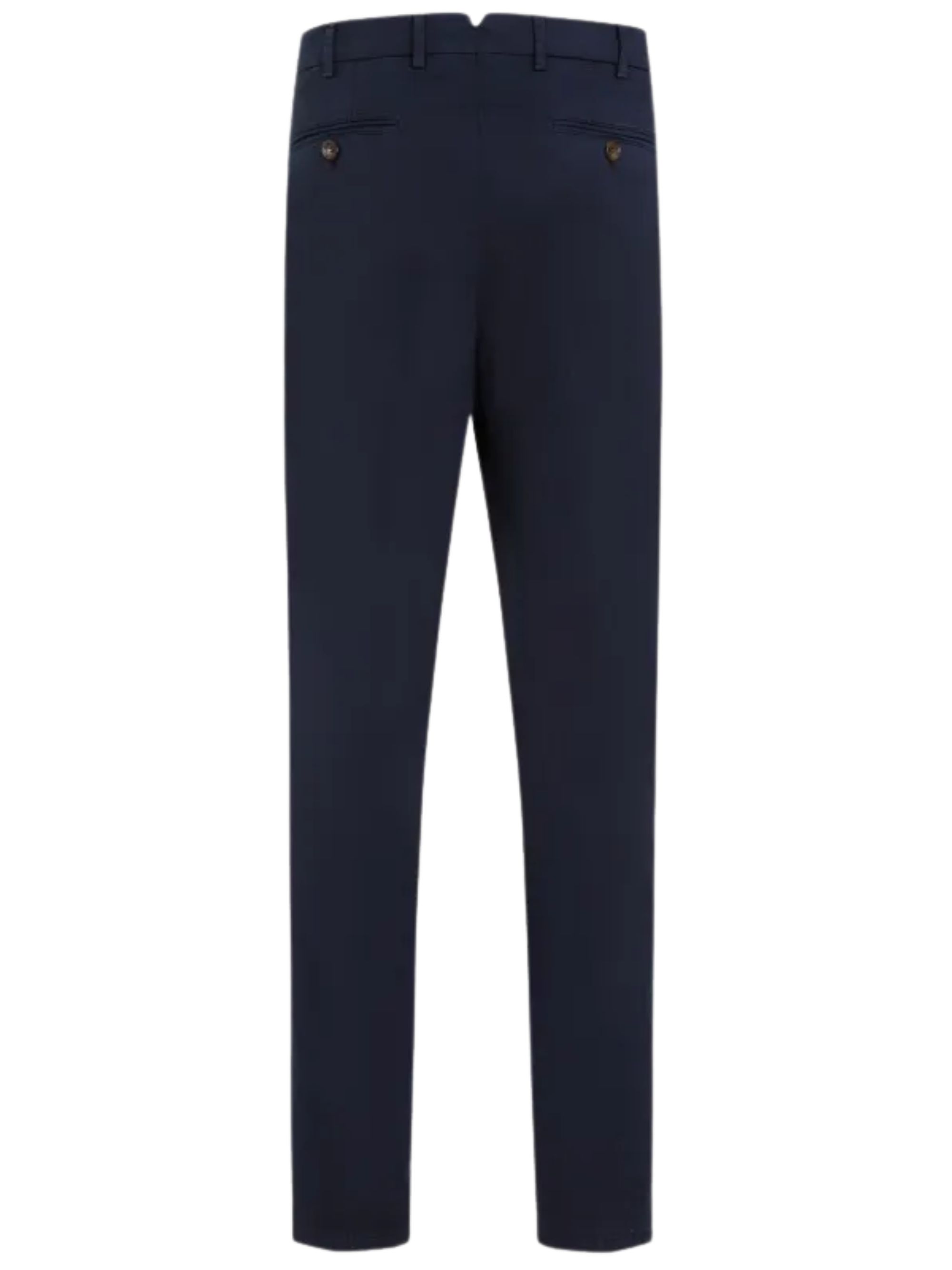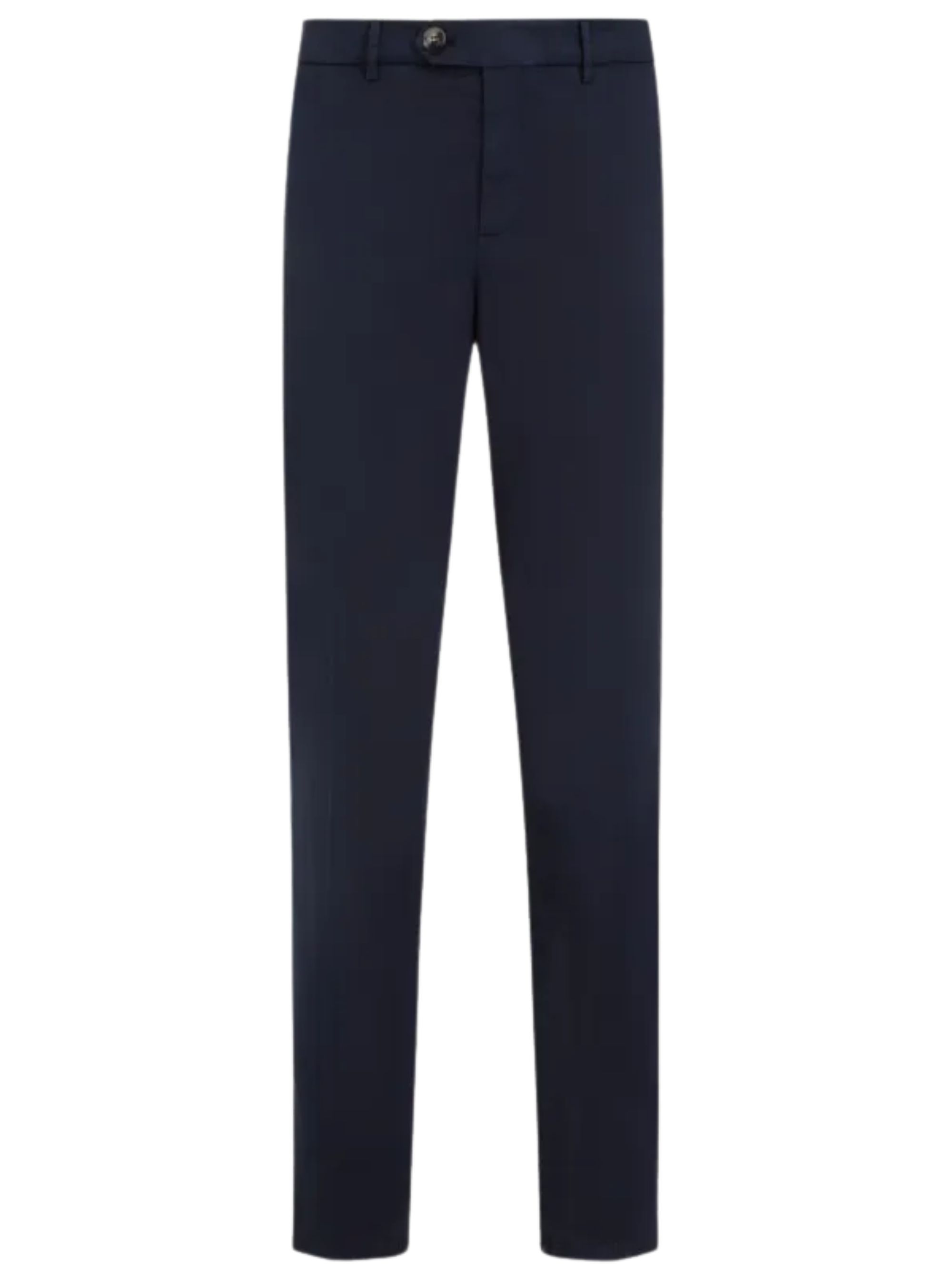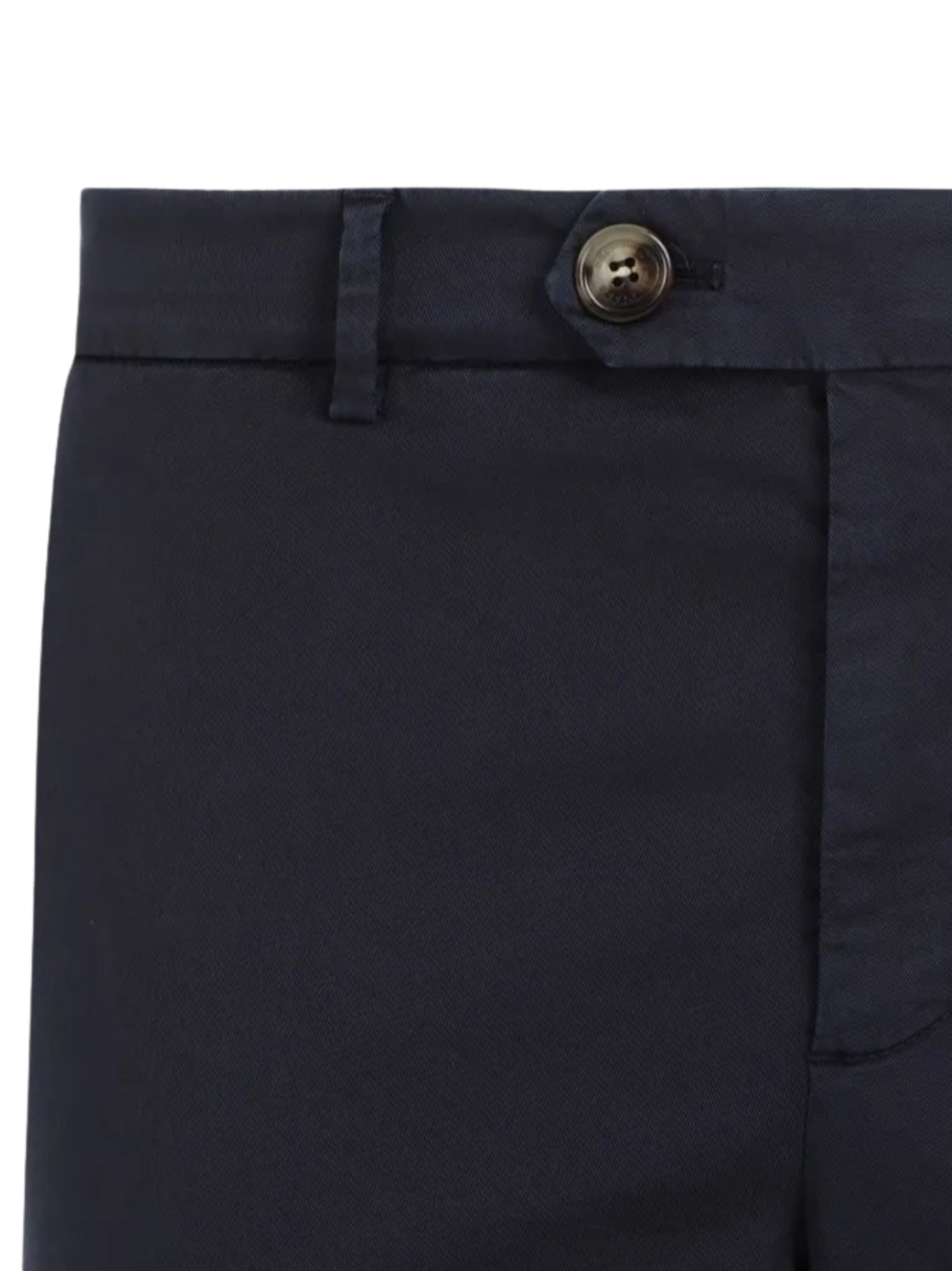 Pantalone in cotone di BRUNELLO CUCINELLI blu, caratterizzato da chiusura con zip e bottone, passanti per cintura e tasche posteriori abbottonate.