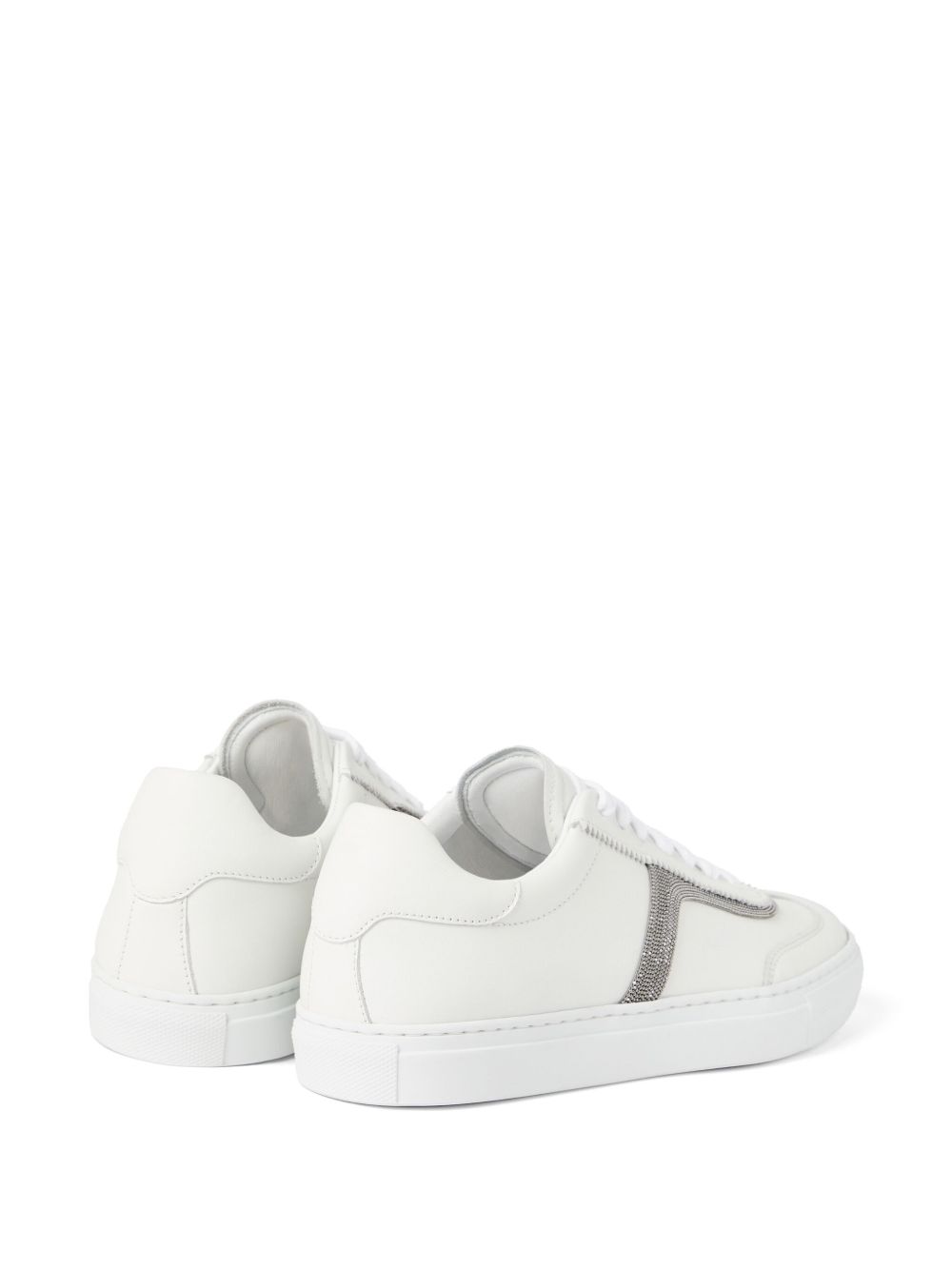 Sneaker in pelle di BRUNELLO CUCINELLI bianca con caratteristico dettaglio a catena Monili e suola piatta in gomma.