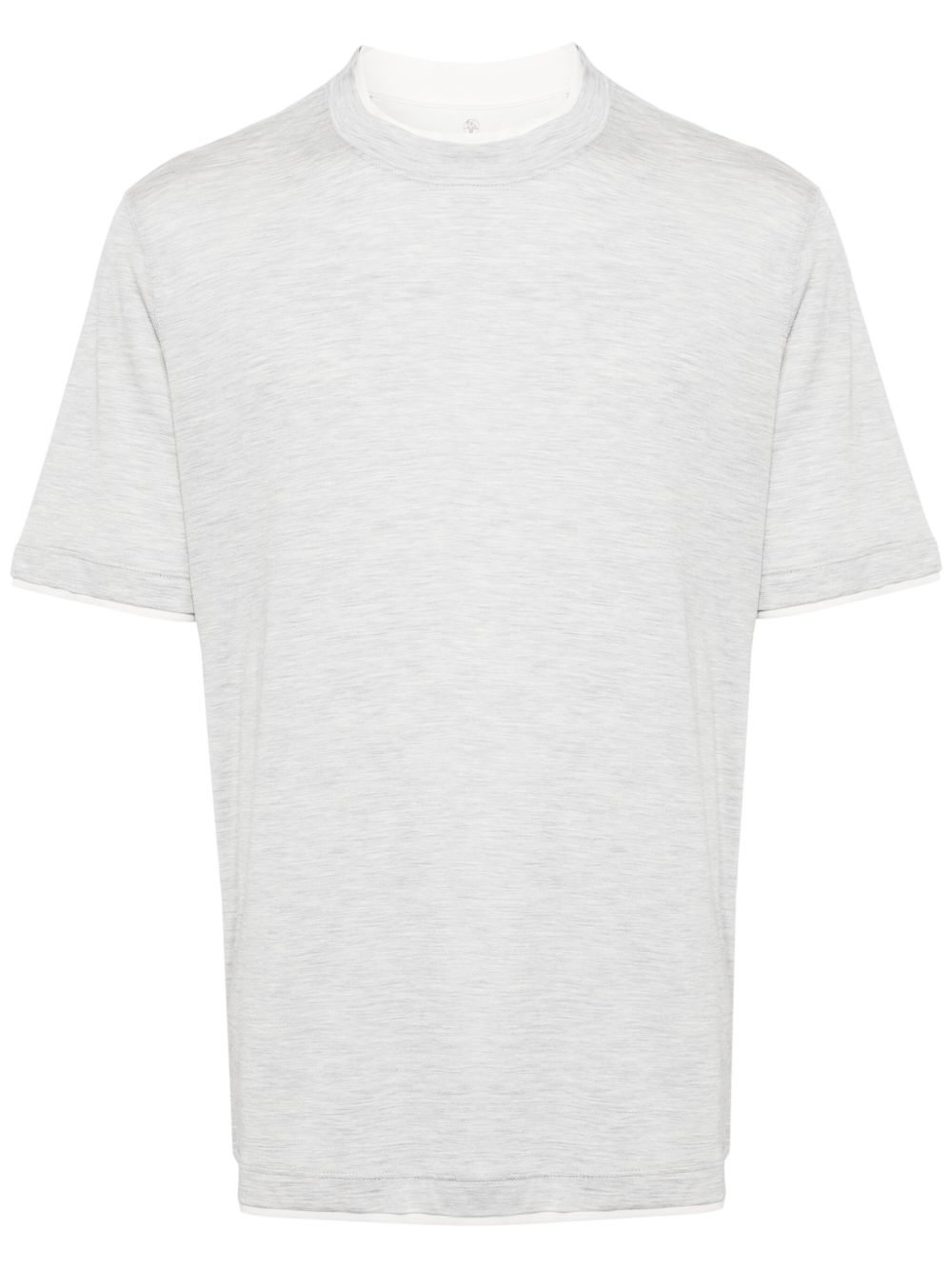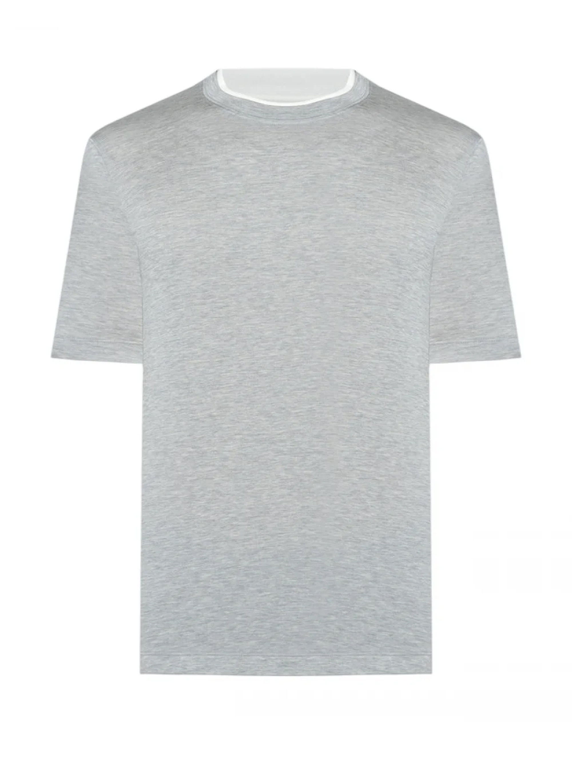 T-shirt in cotone di BRUNELLO CUCCINELLI grigia, caratterizzata da girocollo a contrasto, maniche corte e orlo dritto.