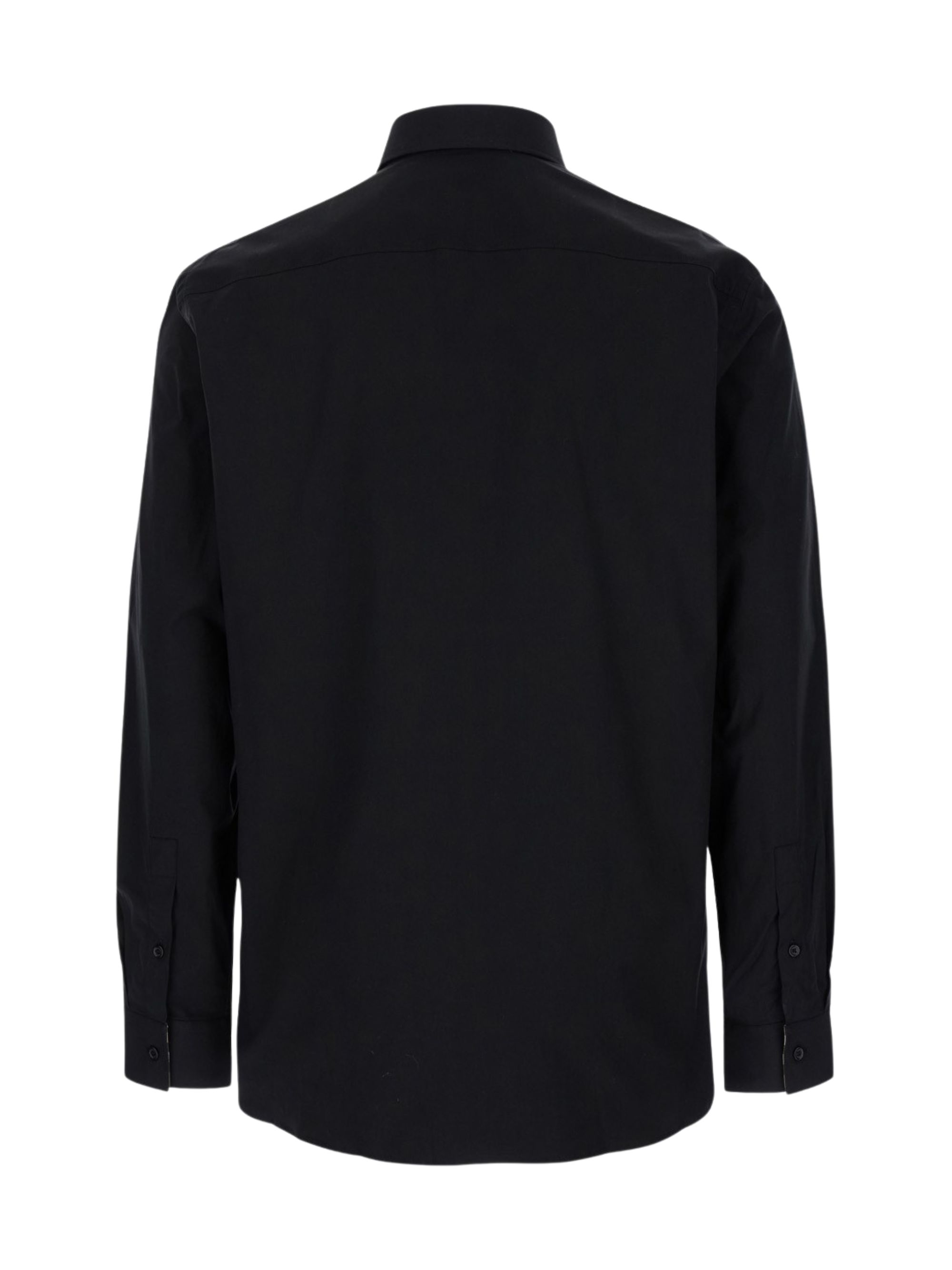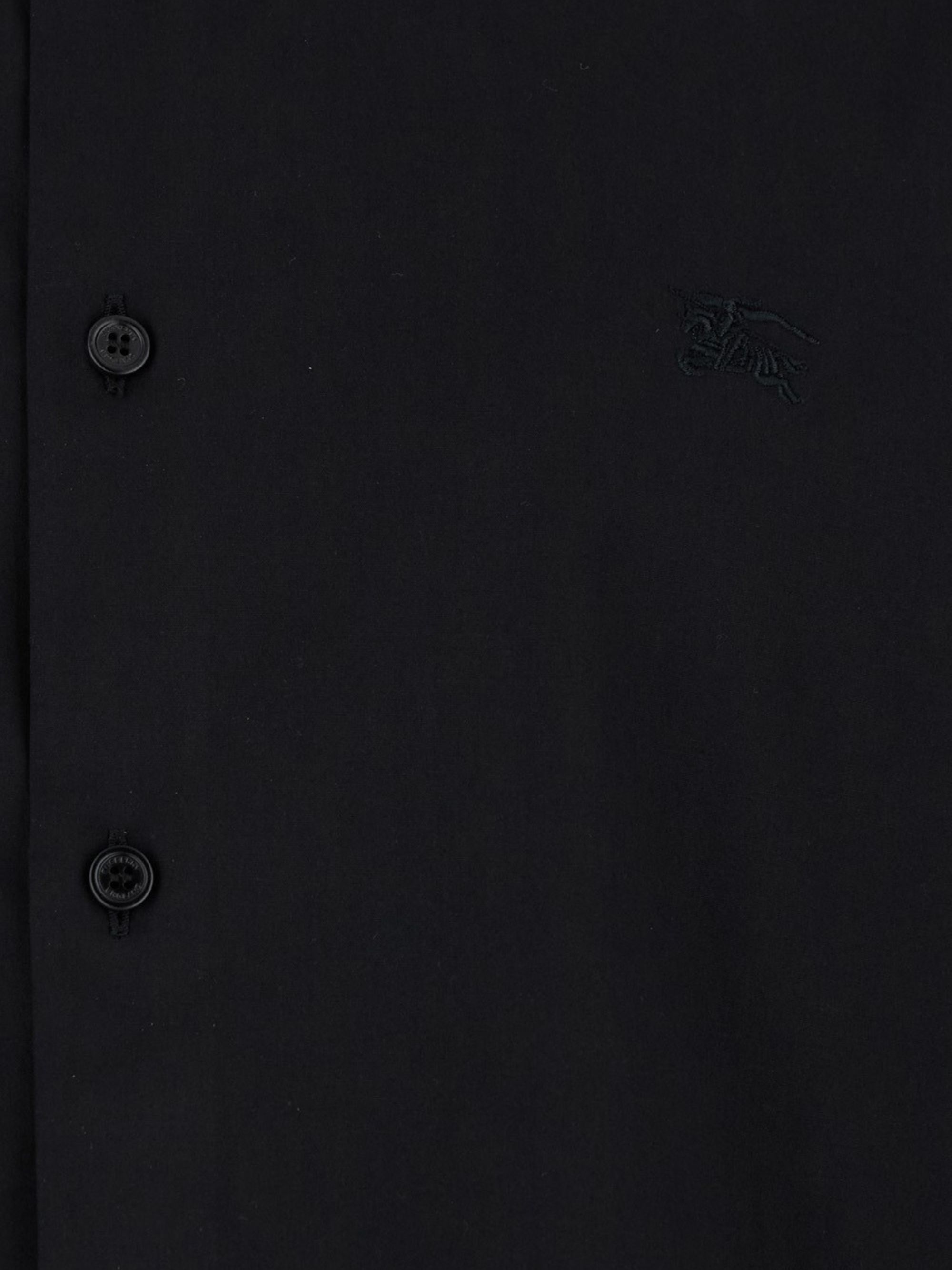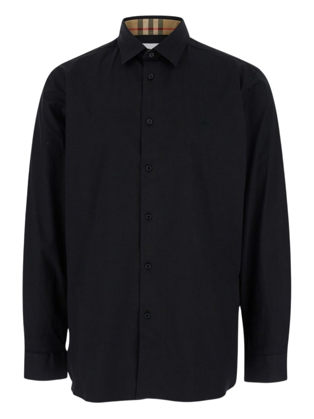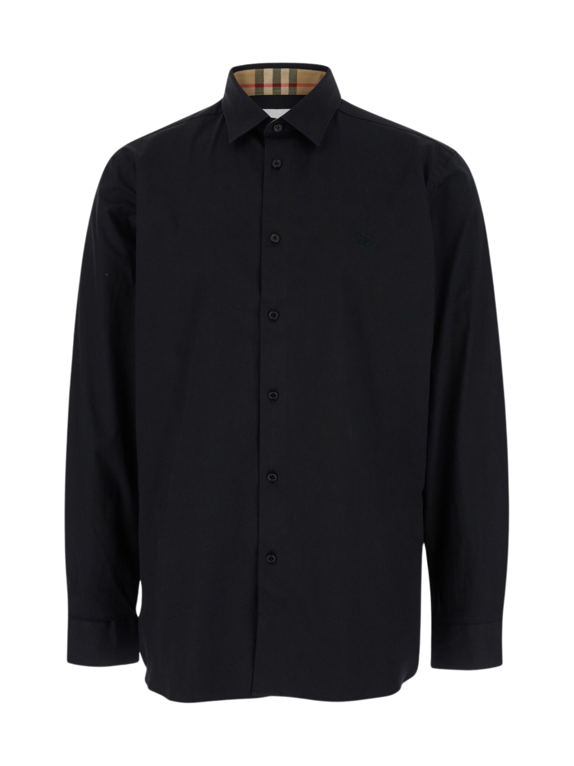 Camicia Monogram di BURBERRY nera in cotone, caratterizzata da fantasia monogramma, fodera con motivo Vintage Check, colletto classico, chiusura con bottoni, polsini con bottoni e maniche lunghe.
