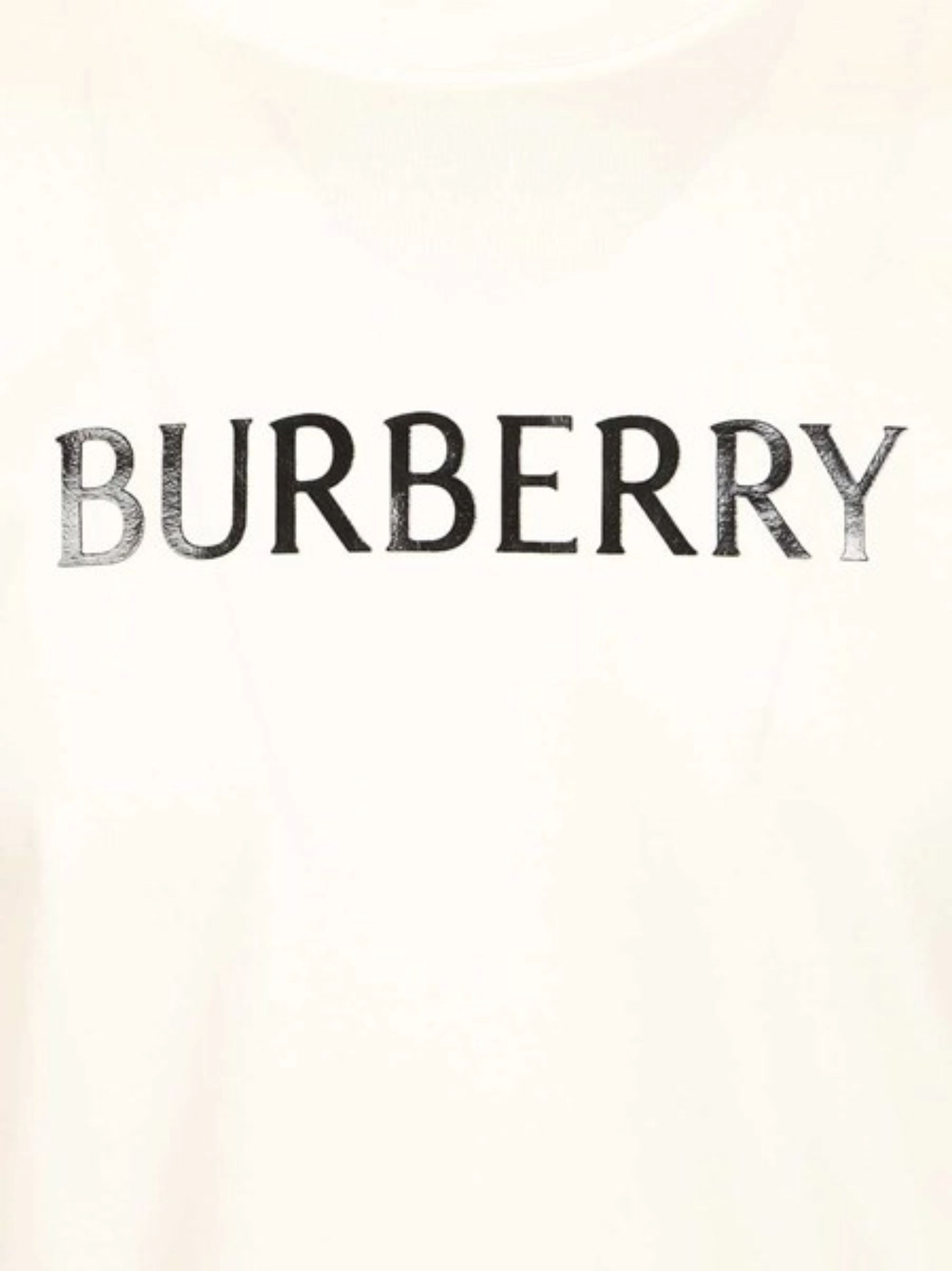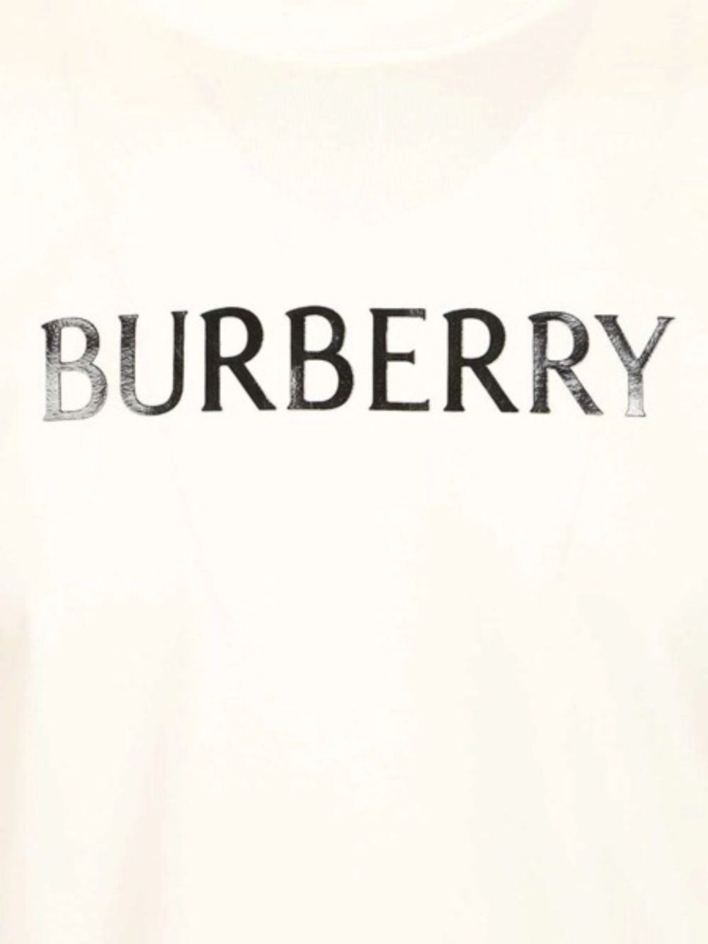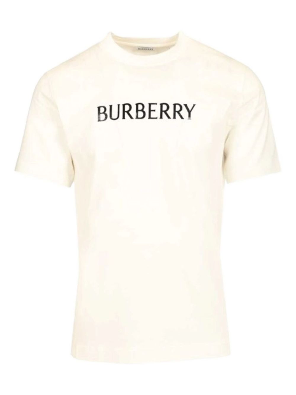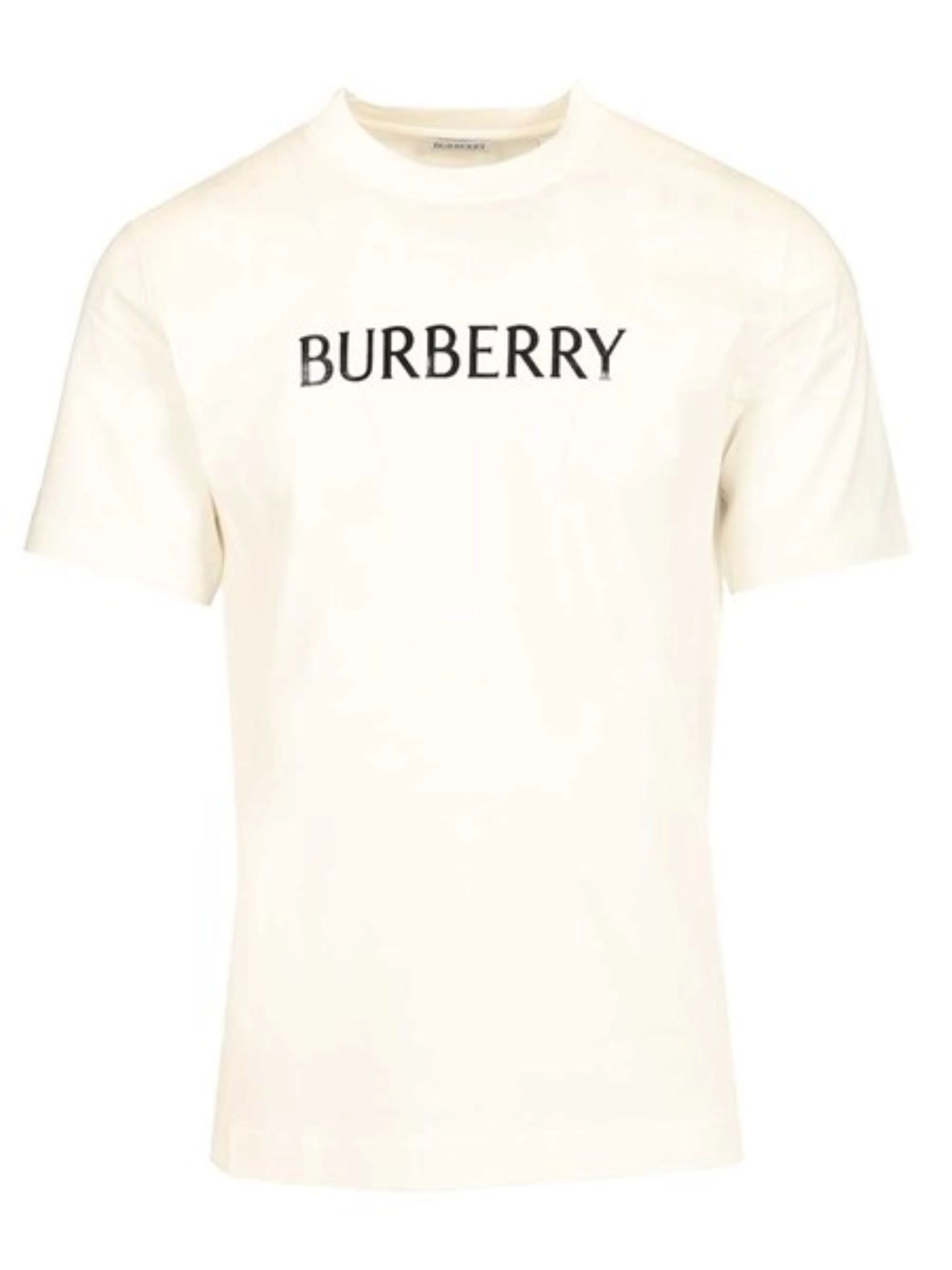 T-shirt Seth di BURBERRY bianca in cotone, caratterizzata da girocollo, maniche corte, stampa Burberry sul davanti a contrasto e finiture a costine.