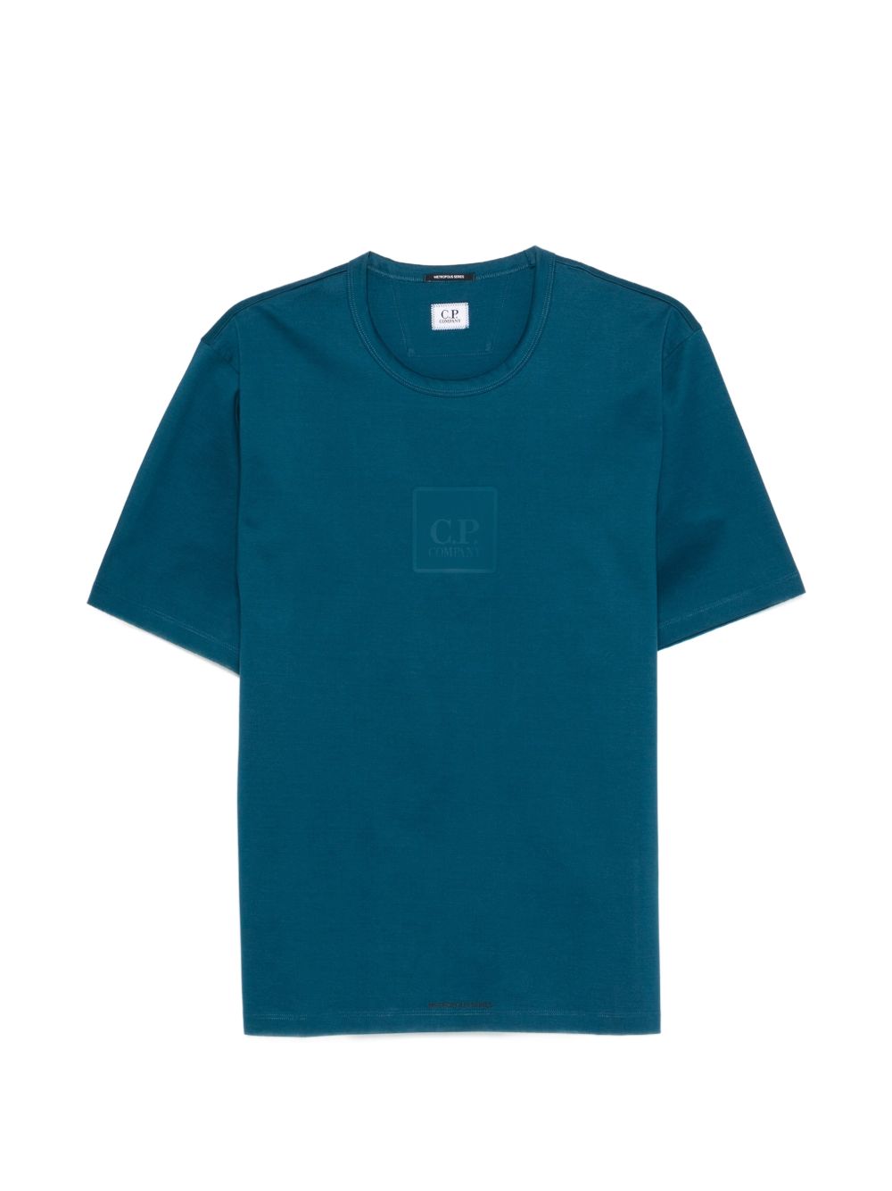 T-shirt Metropolis di C.P. COMPANY blu in cotone, caratterizzata da maniche corte, girocollo e logo sul petto.