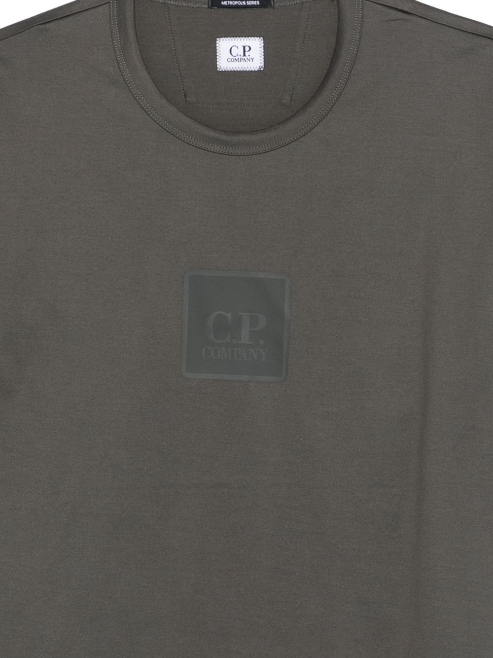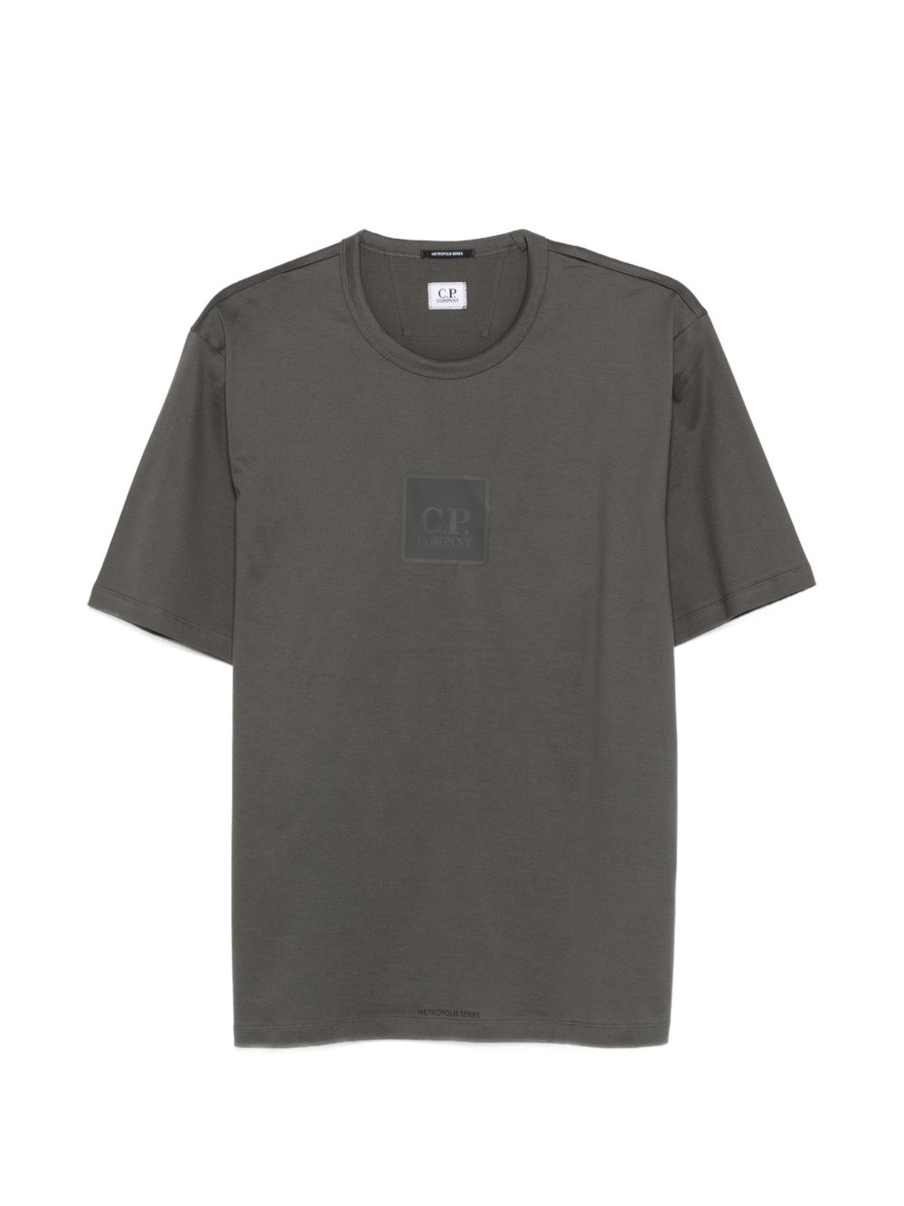 T-shirt Metropolis di C.P. COMPANY grigia in cotone, caratterizzata da maniche corte, girocollo e logo sul petto.