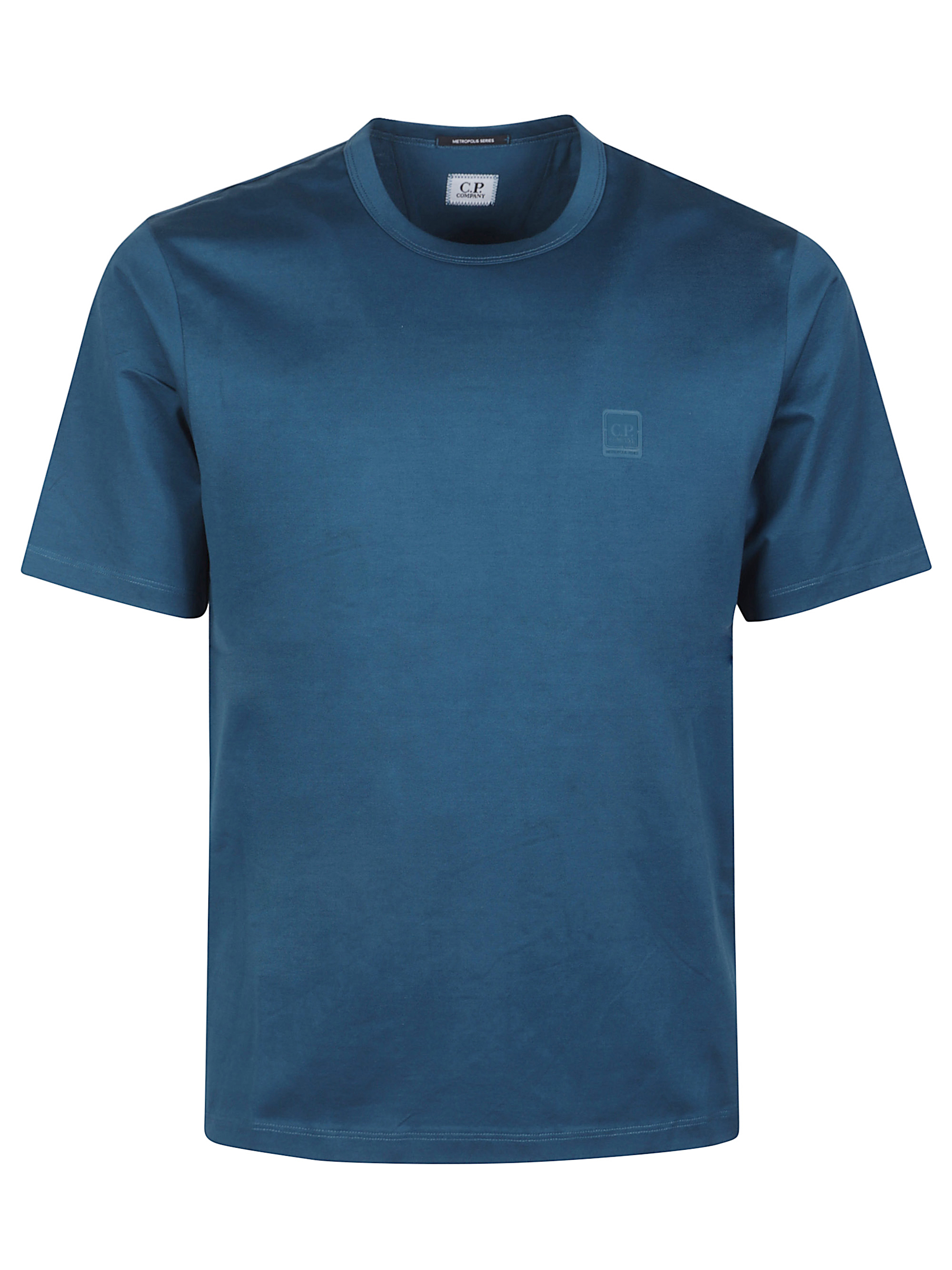 T-shirt Metropolis di C.P. COMPANY blu in cotone, caratterizzata da maniche corte, girocollo e logo sul petto.