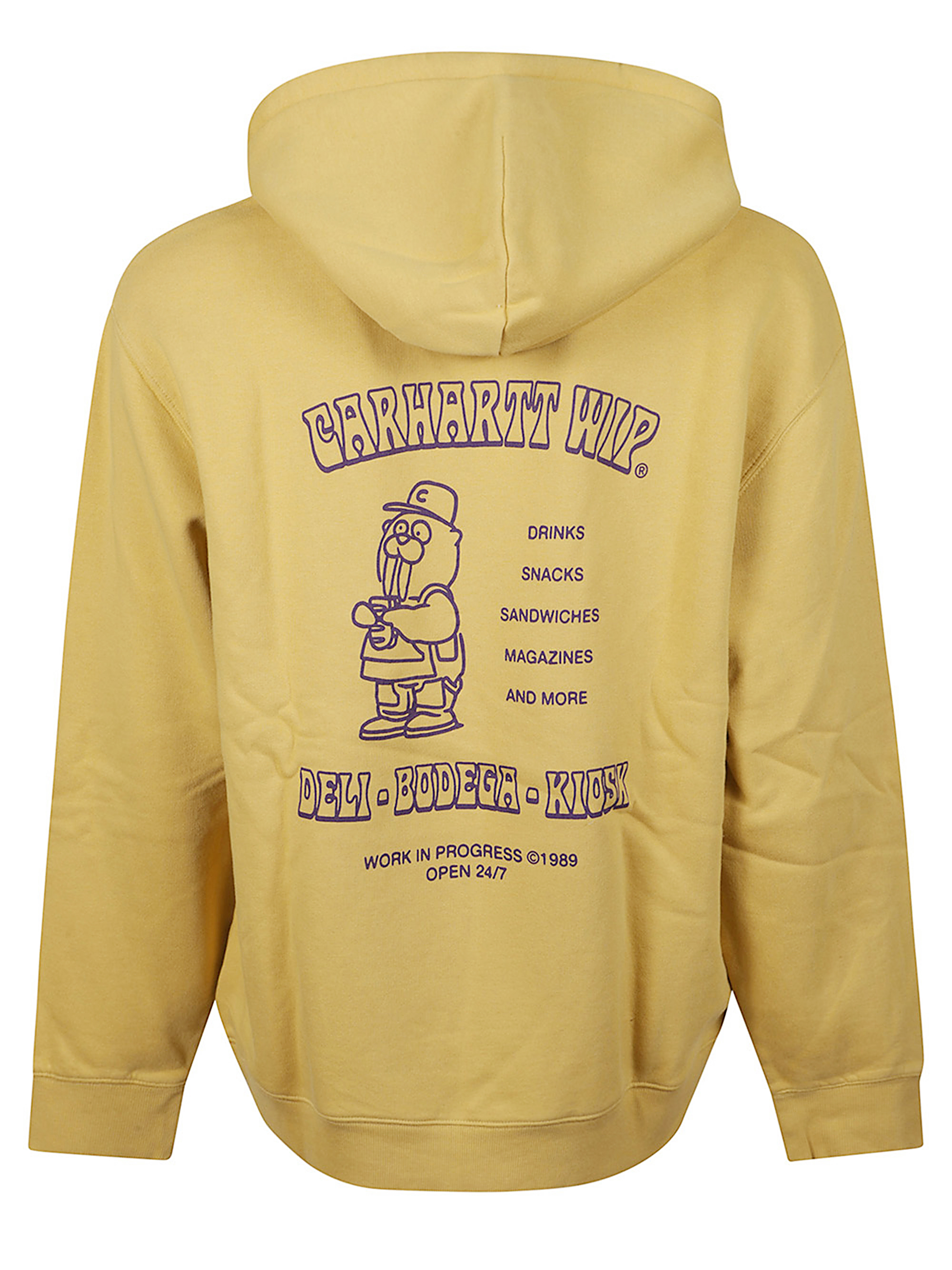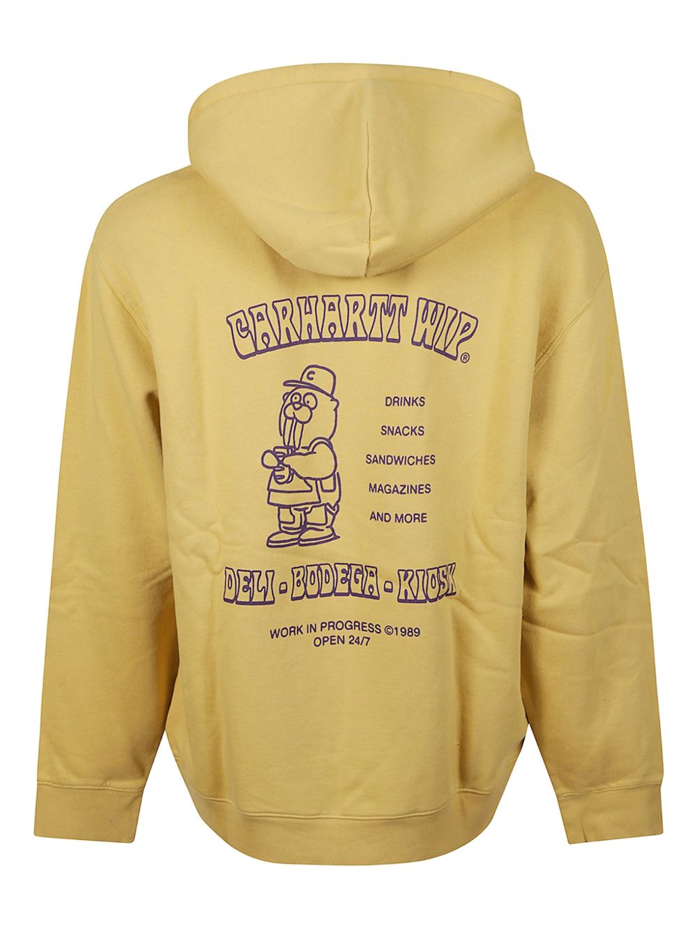 Felpa Sandwich di CARHARTT WIP gialla in cotone con cappuccio con coulisse, tasca a canguro, stampa fronte e retro e maniche lunghe con polsini.