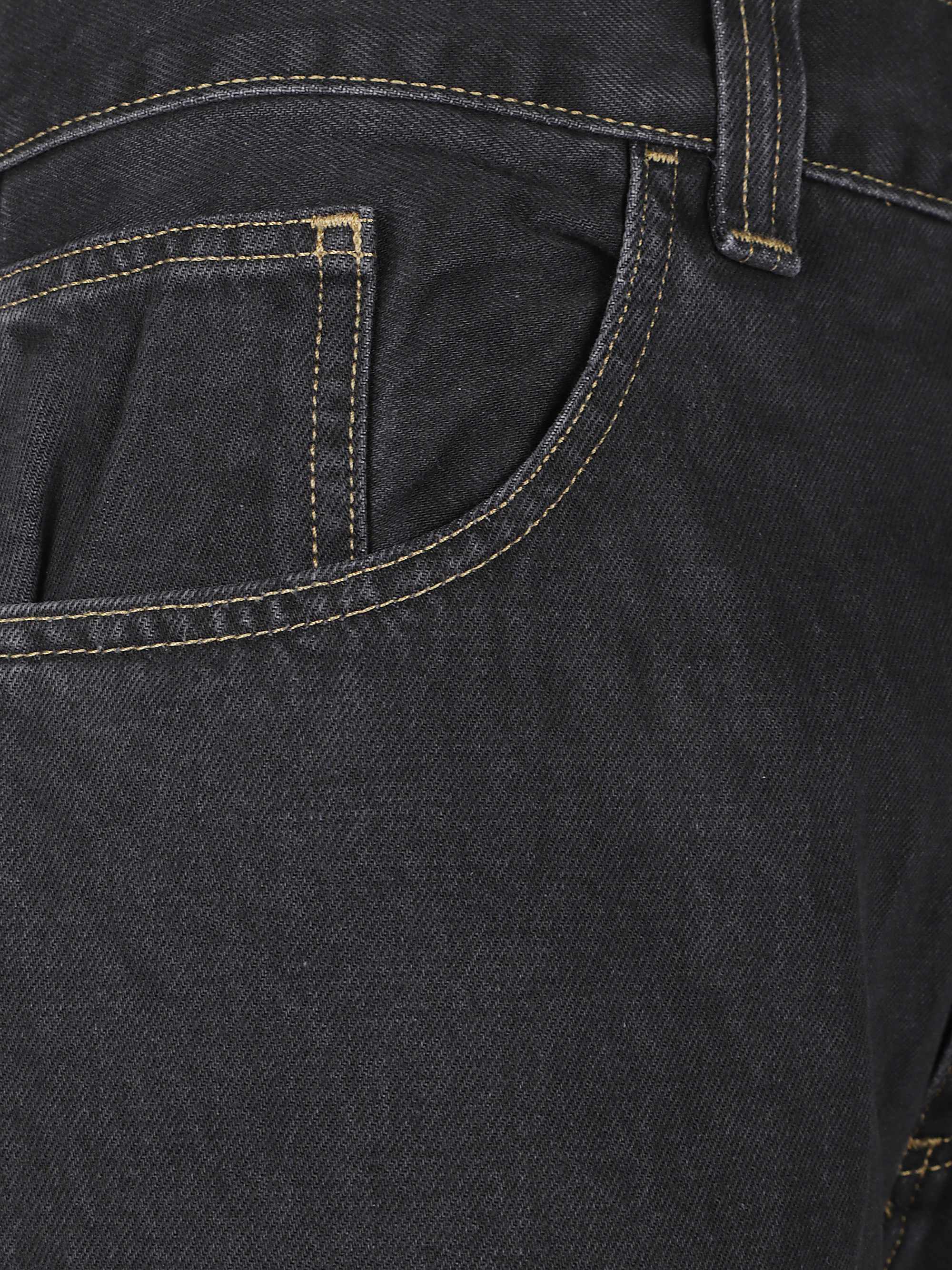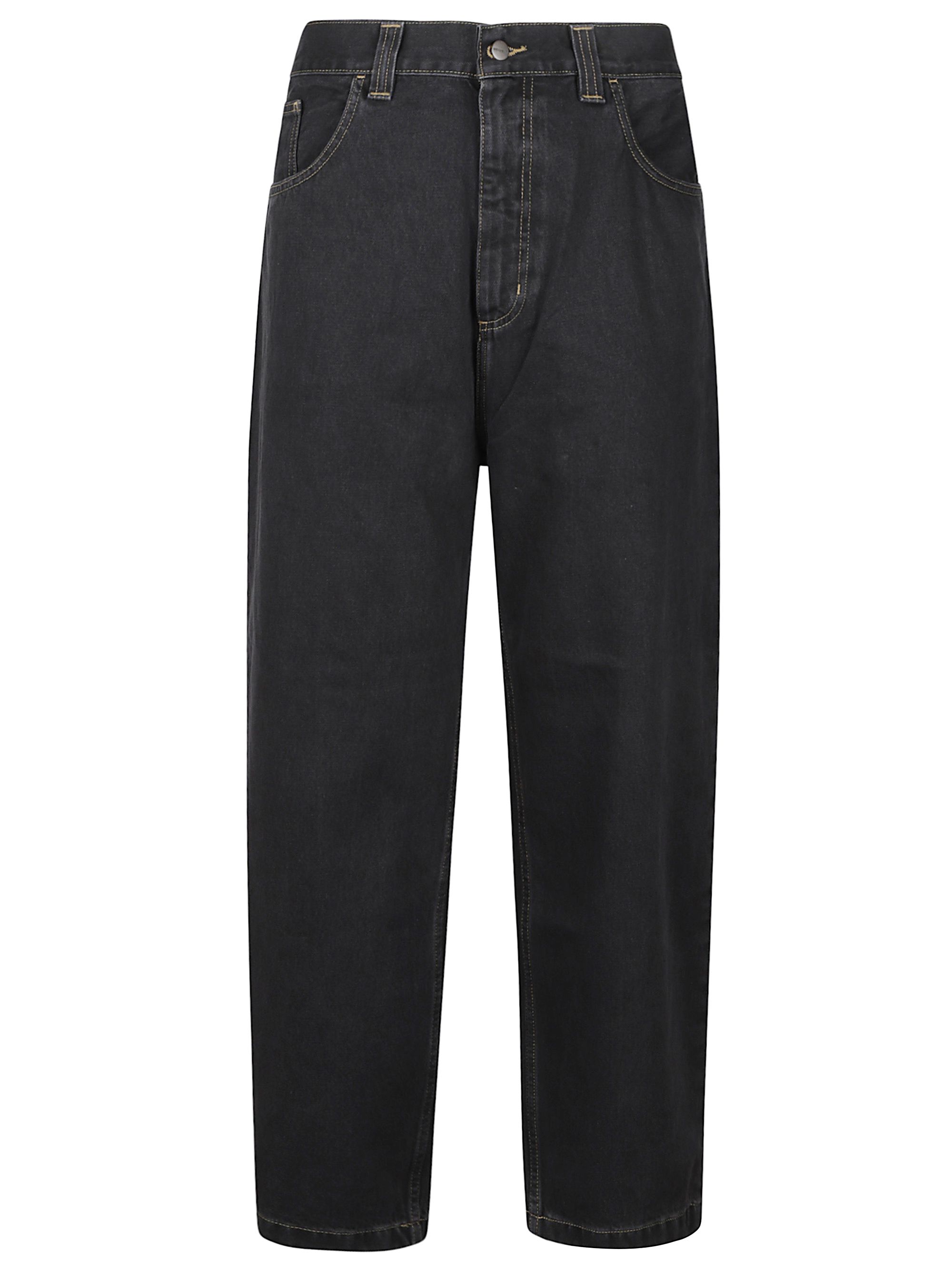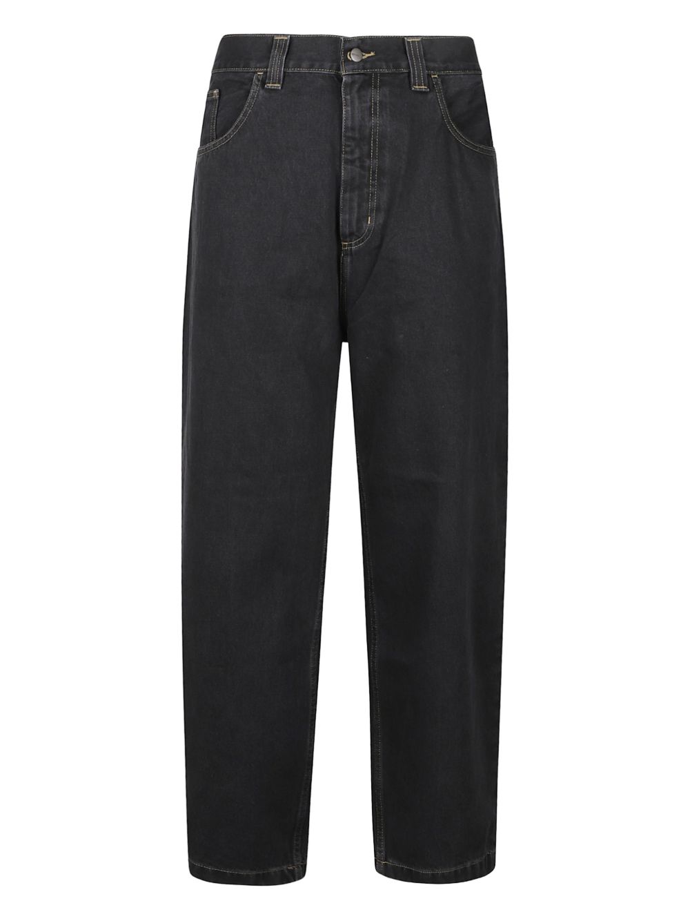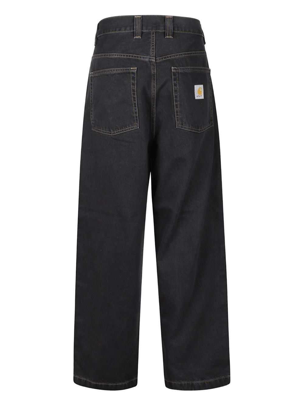 Jeans Brandon di CARHARTT WIP nero in cotone, caratterizzato da cavallo basso, vestibilità larga, logo posteriore, chiusura con bottoni, due tasche frontali e posteriori e due tasche laterali.