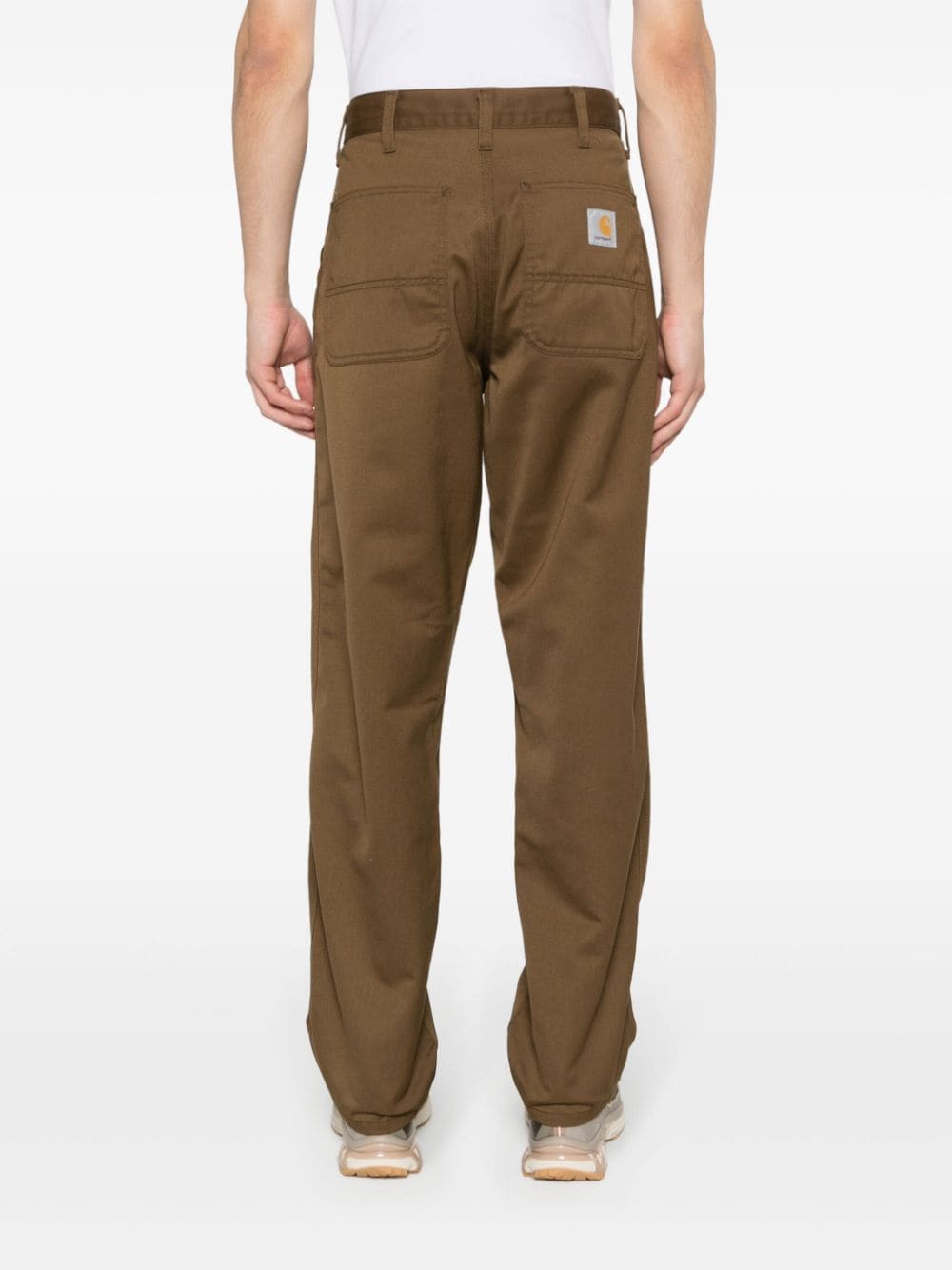 Pantalone Simple Pant con logo di CARHARTT WIP colore marrone, chiusura con zip e bottone e passanti per cintura.