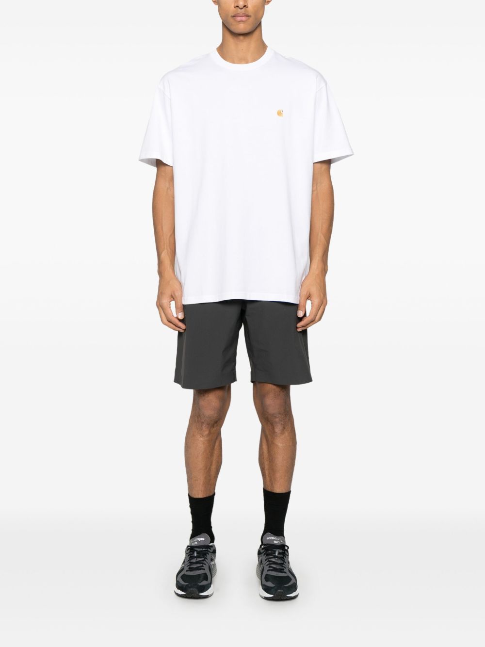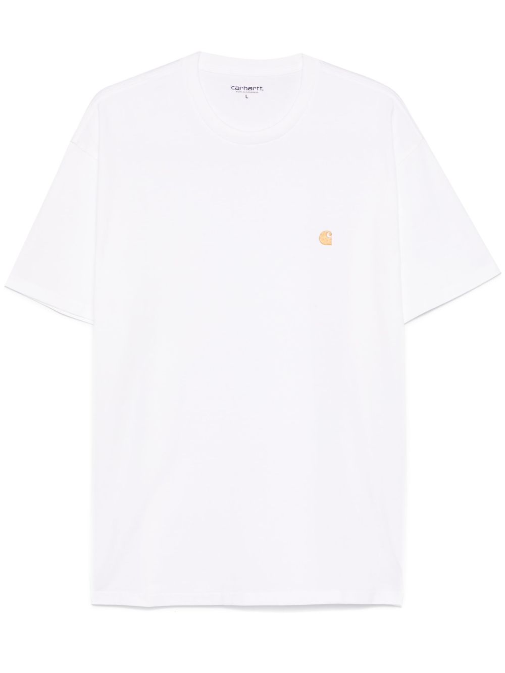 T-shirt Chase di CARHARTT WIP bianca in cotone, caratterizzata da girocollo e logo lato cuore ricamato.