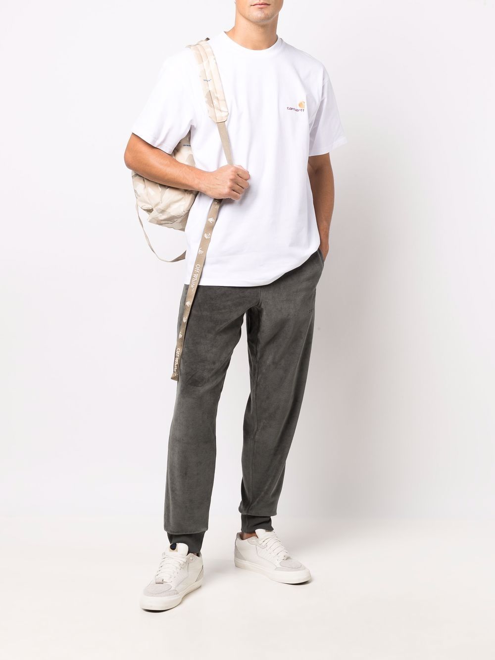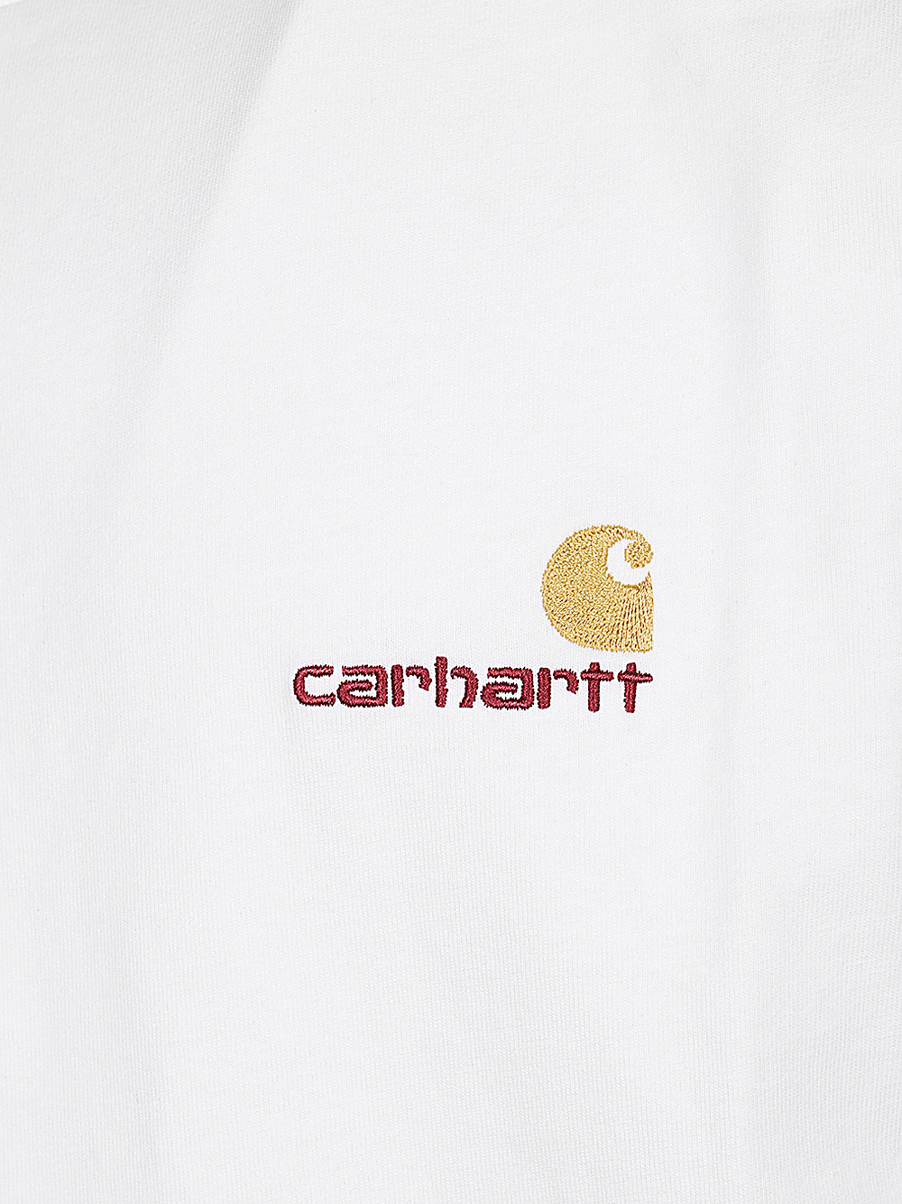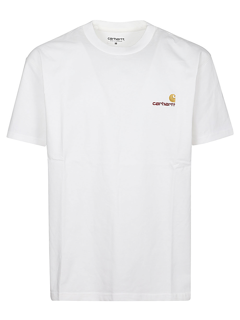 T-shirt S/S American Script di CARHARTT WIP bianca in cotone, caratterizzata da lgoo American in due colori ricamato sul petto, girocollo e vestibilità ampia.