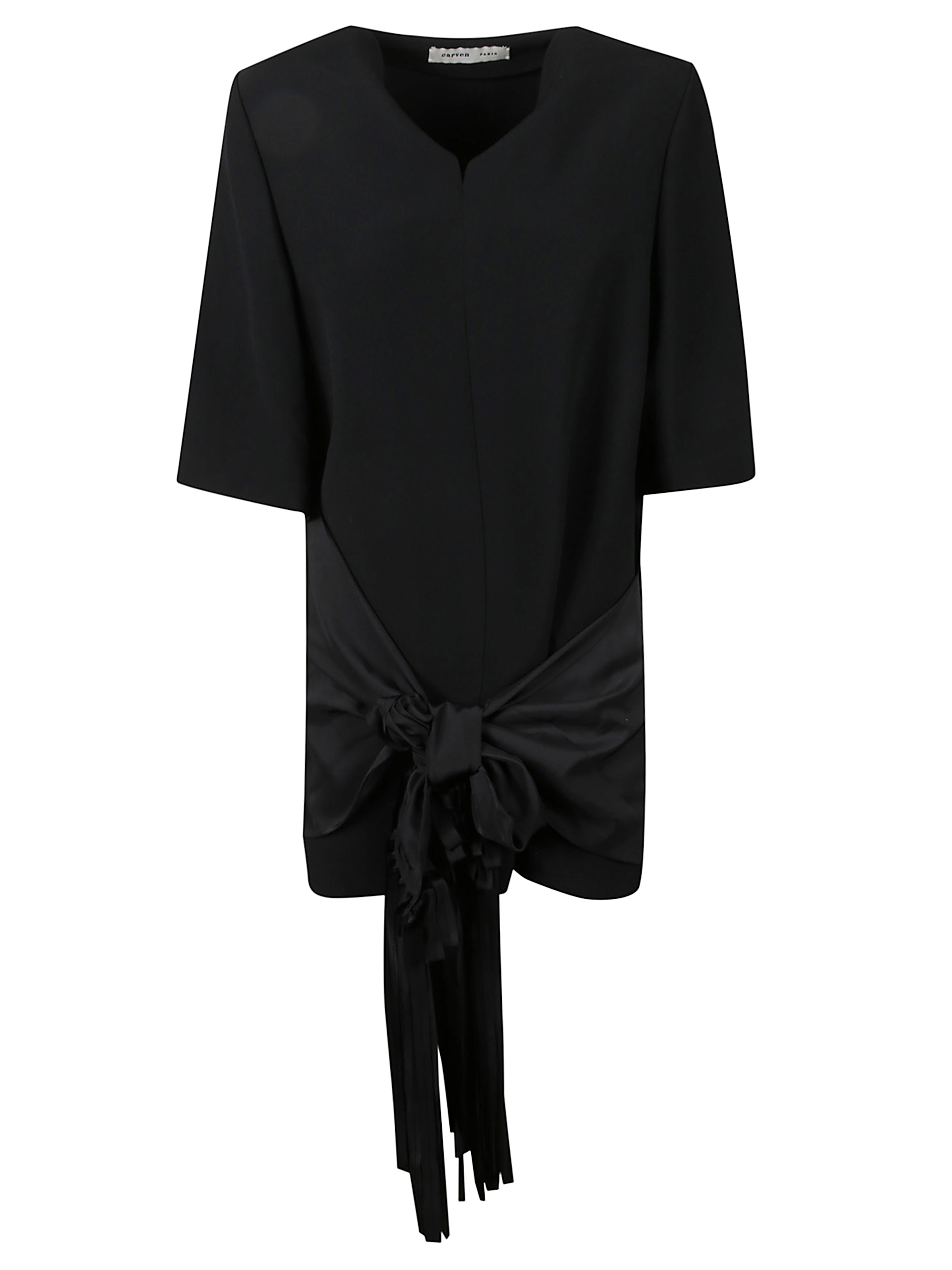 Abito nero di CARVEN caratterizzato dal modetto a t-shirt, maniche corte e fiocco frontale.