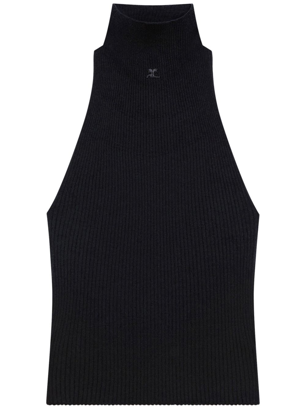 Canotta a coste di COURRÈGES nera in misto cotone e lana merino, senza maniche con applicazione con logo.