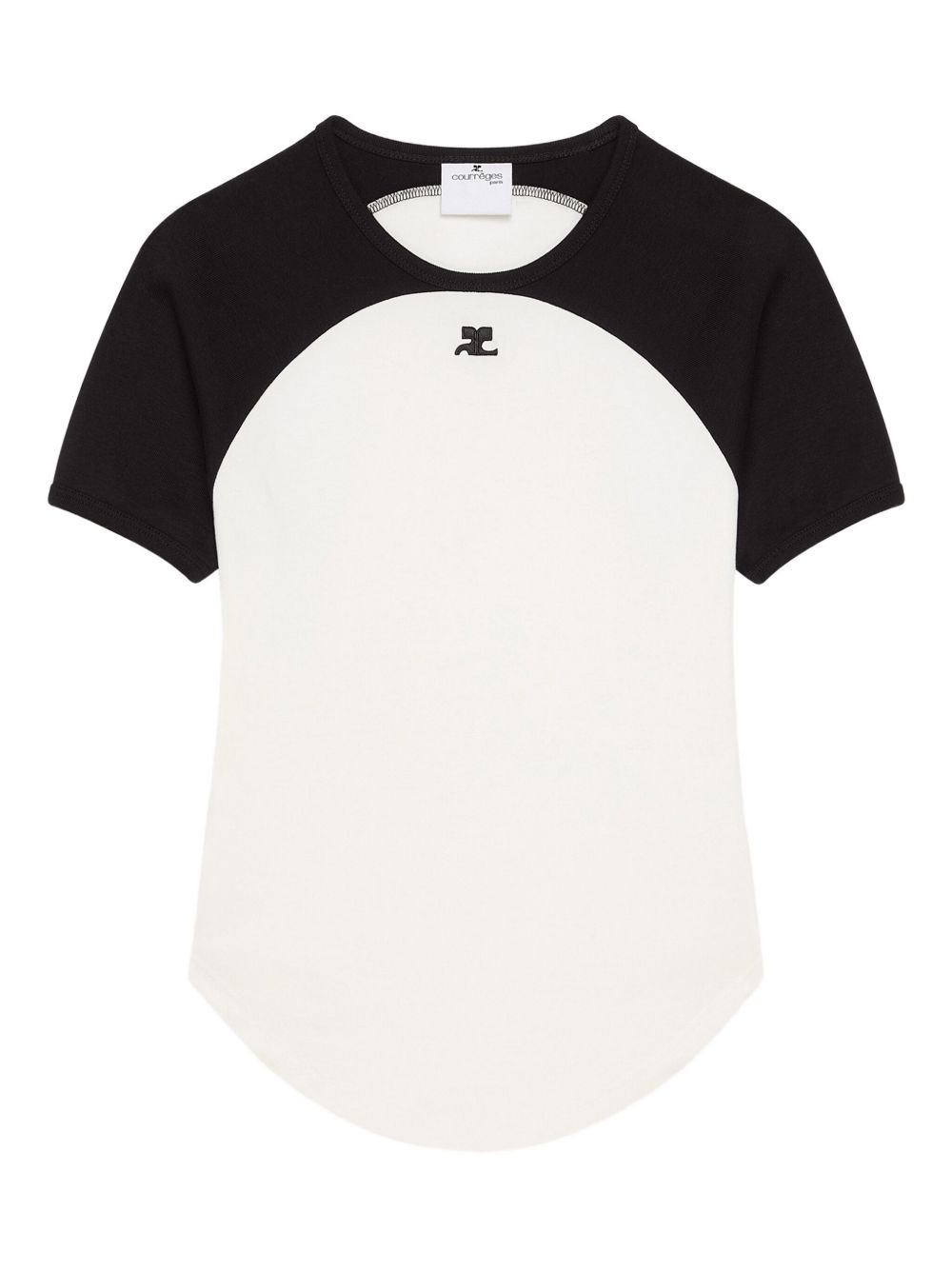 T-shirt di COURRÈGES a contrasto bianco e nero con scollo rotondo, orlo dritto e stampa con logo sul petto.
