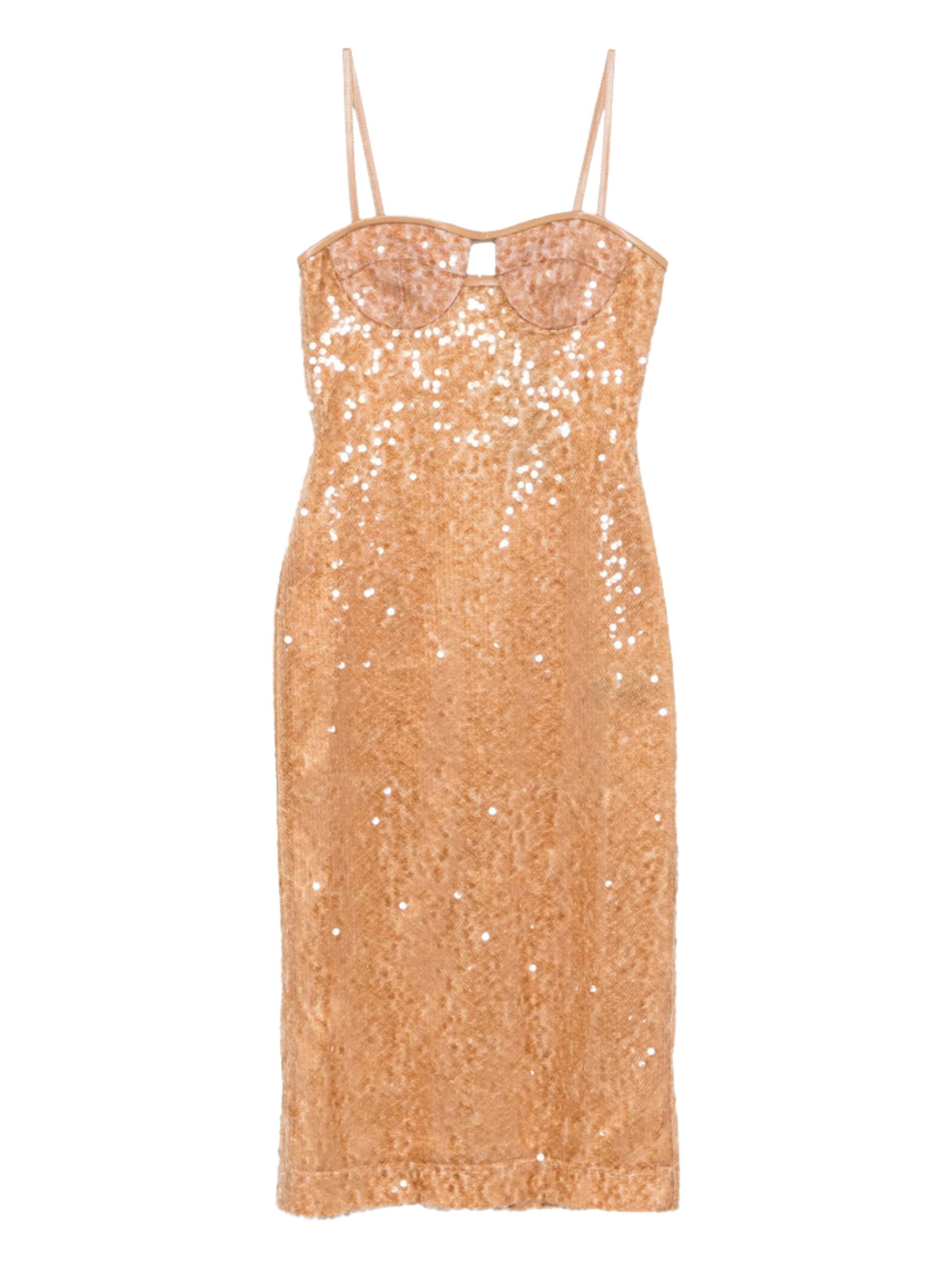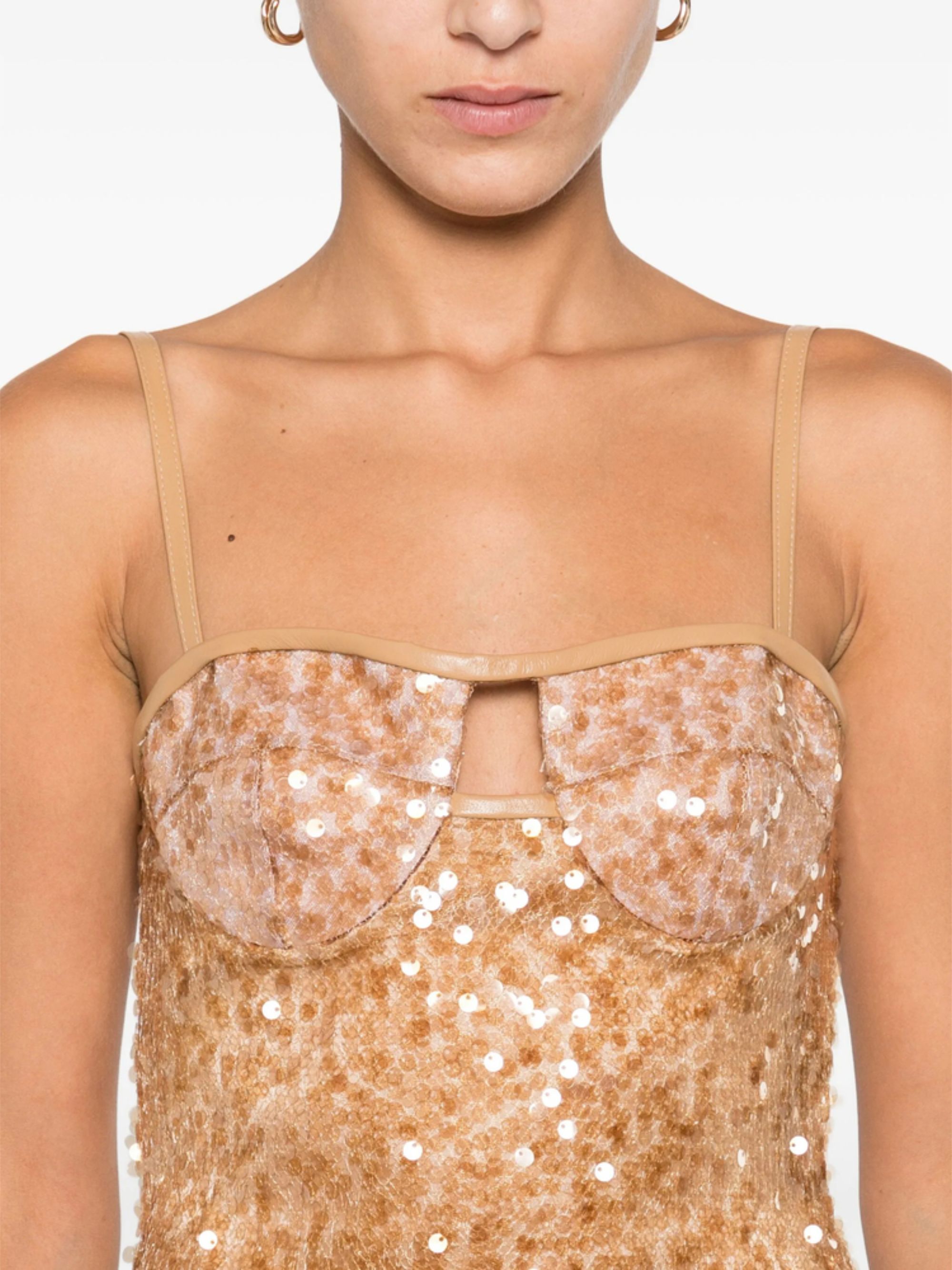 Abito con paillettes di DAVID KOMA color cipria, con coppe caratterizzato da dettaglio cut-out e spalline.