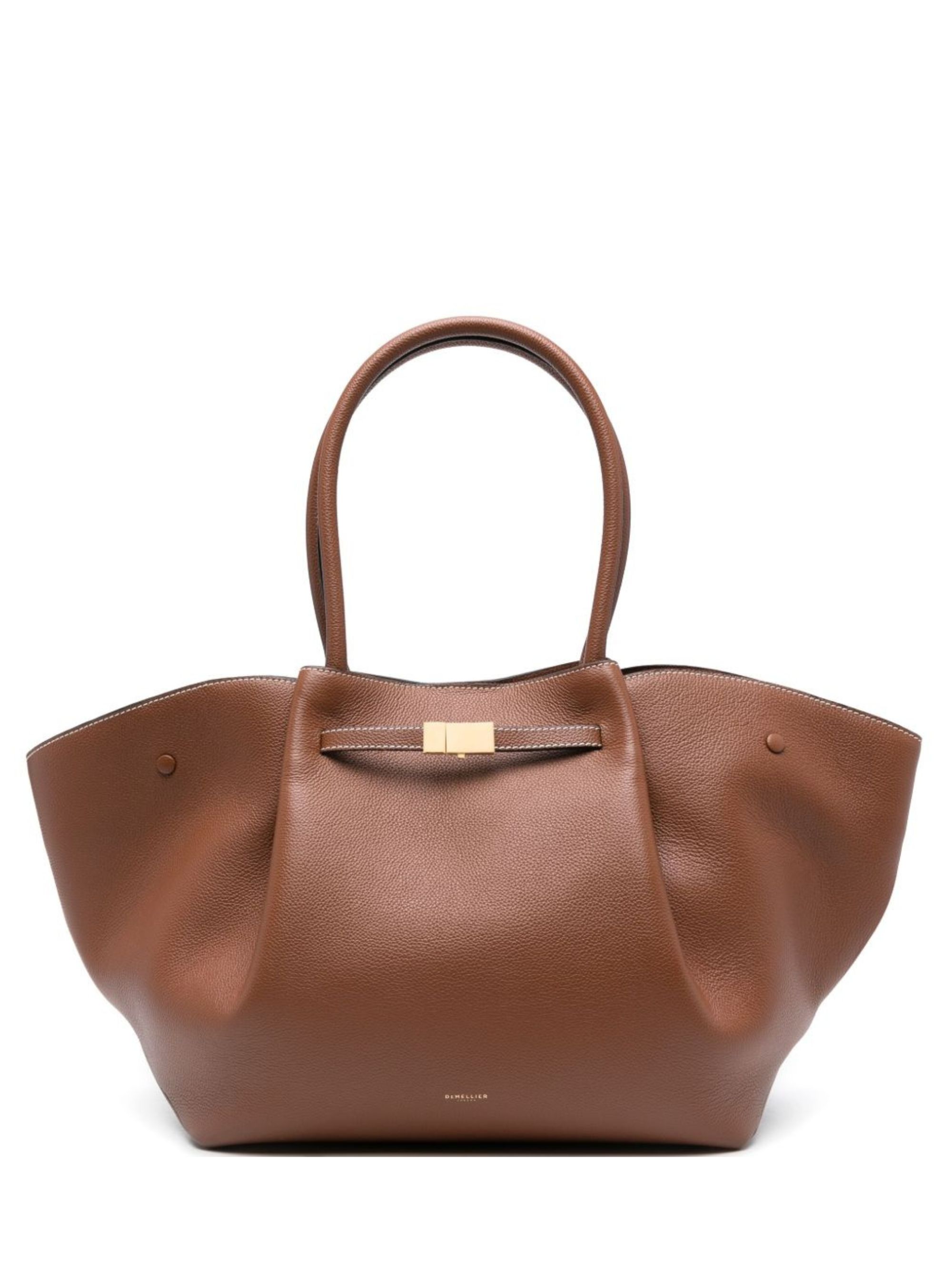 Borsa New York di DEMELLIER marrone in pelle, caratterizzata da due manici, lati espandibili, chiusura con fibbia, logo frontale e scomparto interno con tasca. Dimensioni: 35 x 25 x 20 CM.