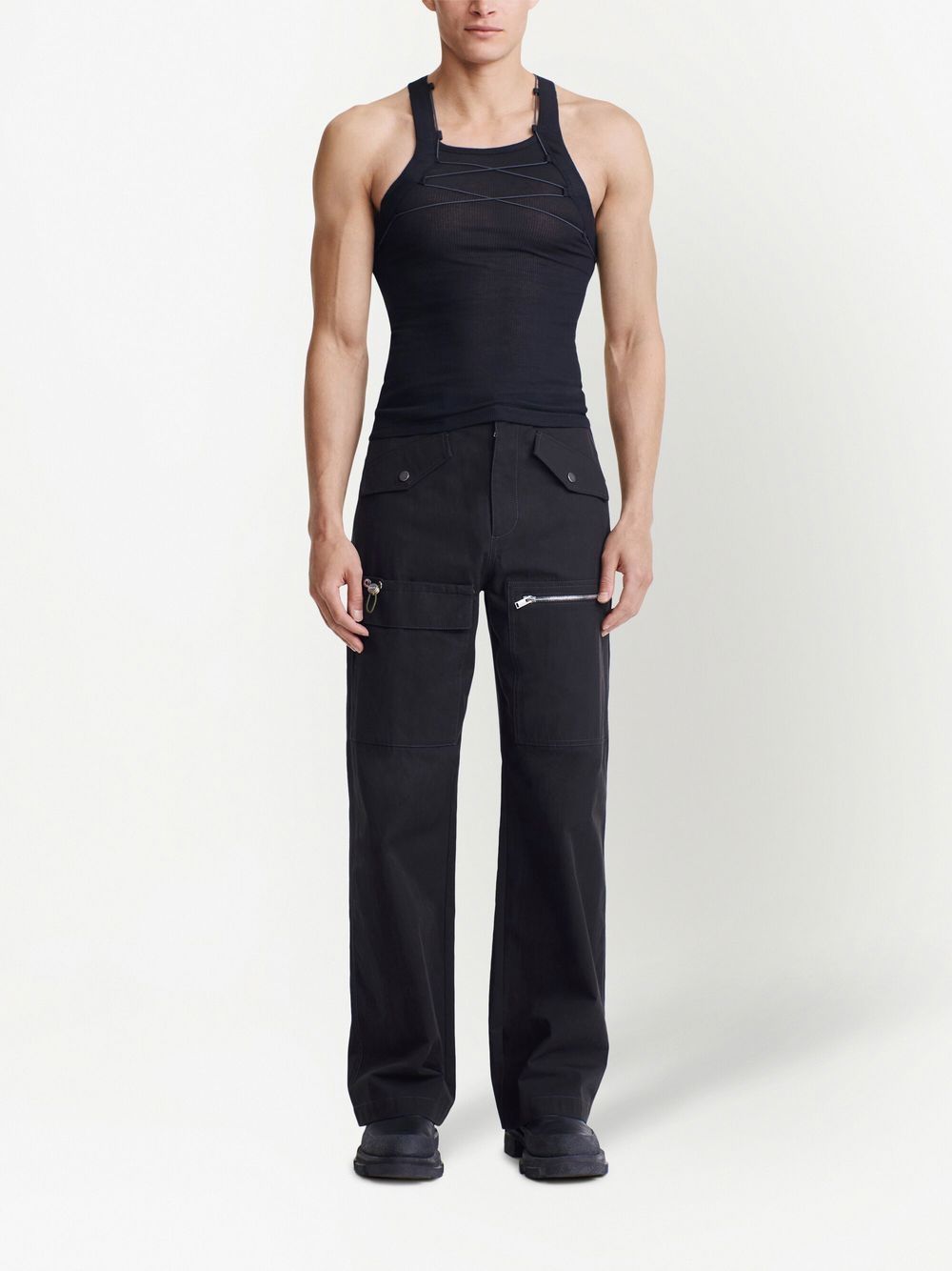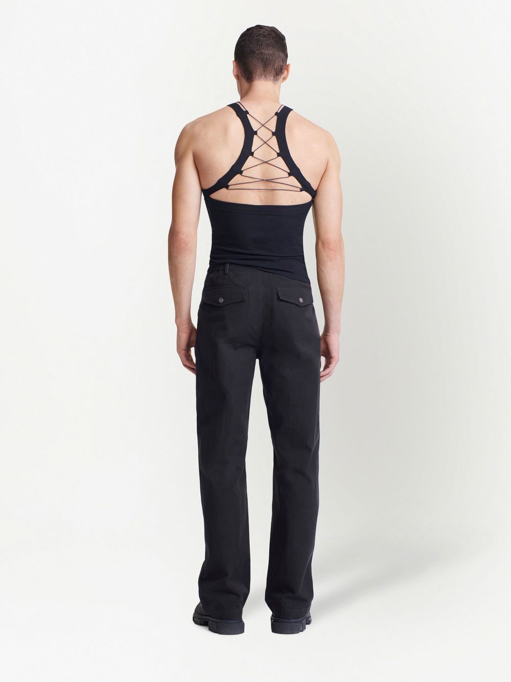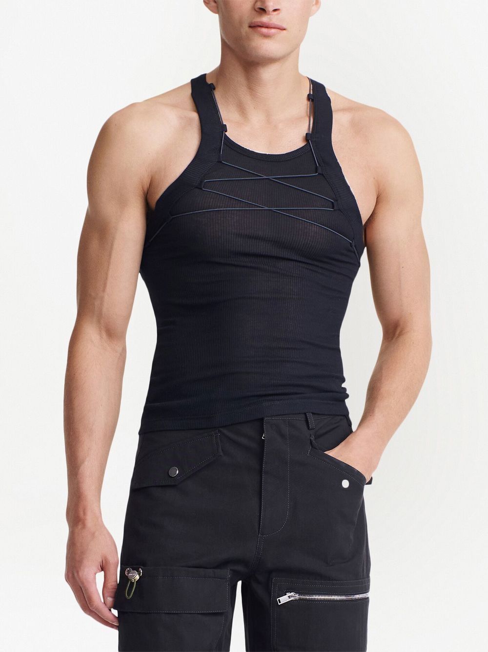 Canotta con stringhe nera di DION LEE caratterizzato da dettaglio stringhe fronte e retro.