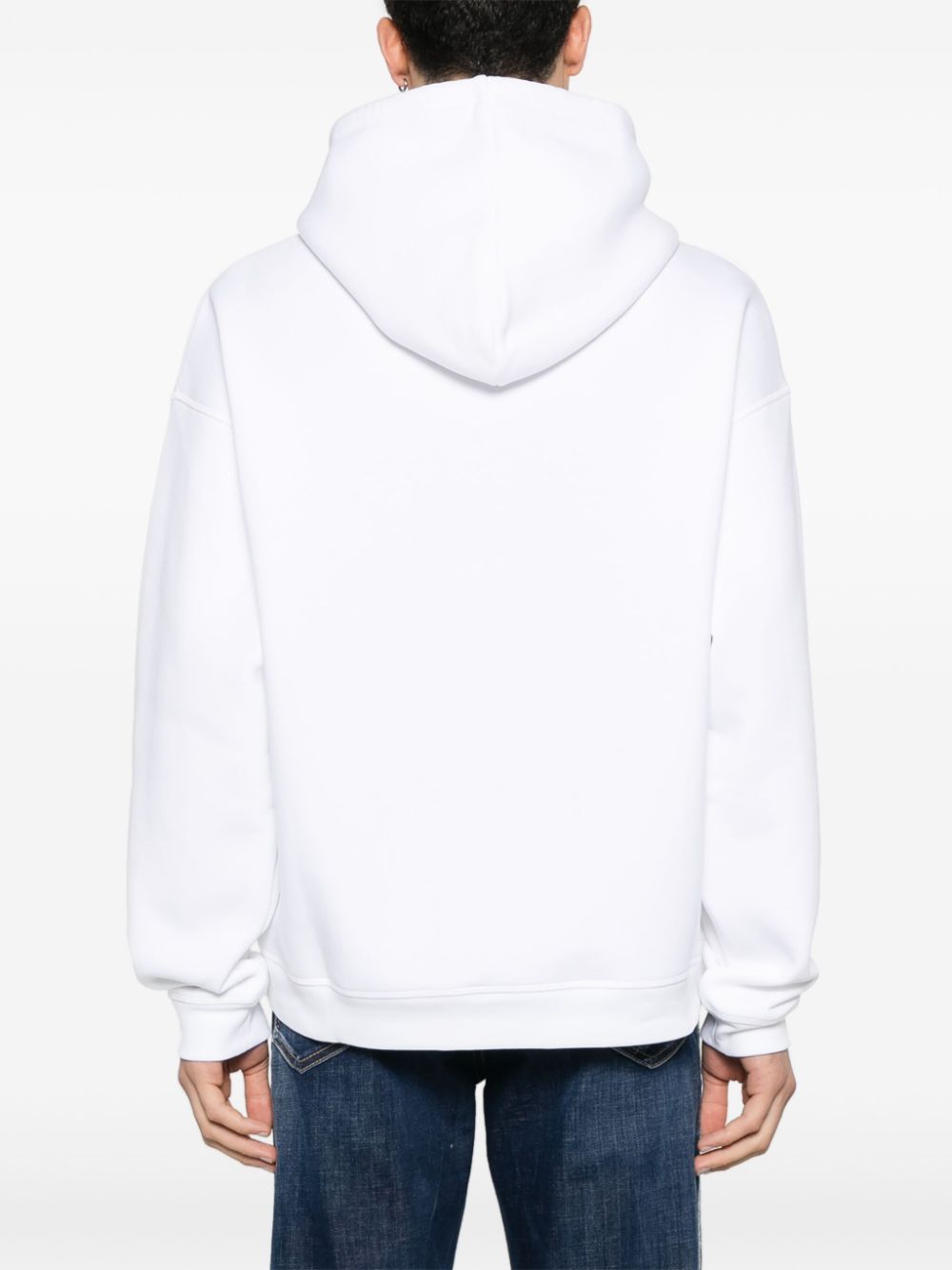 Felpa con stampa grafica di DSQUARED bianca in cotone con cuciture a contrasto, orlo elasticizzato e con cappuccio.