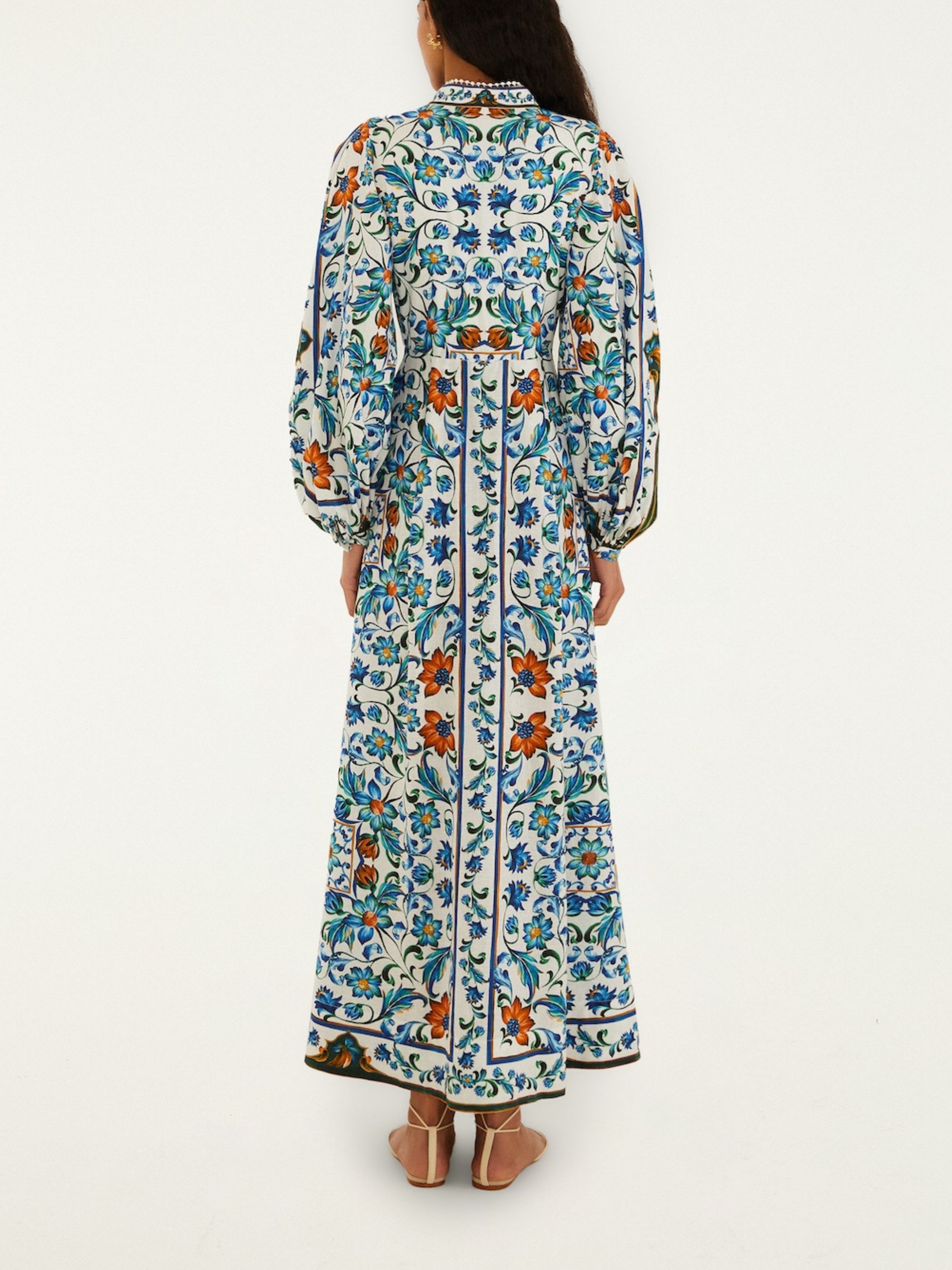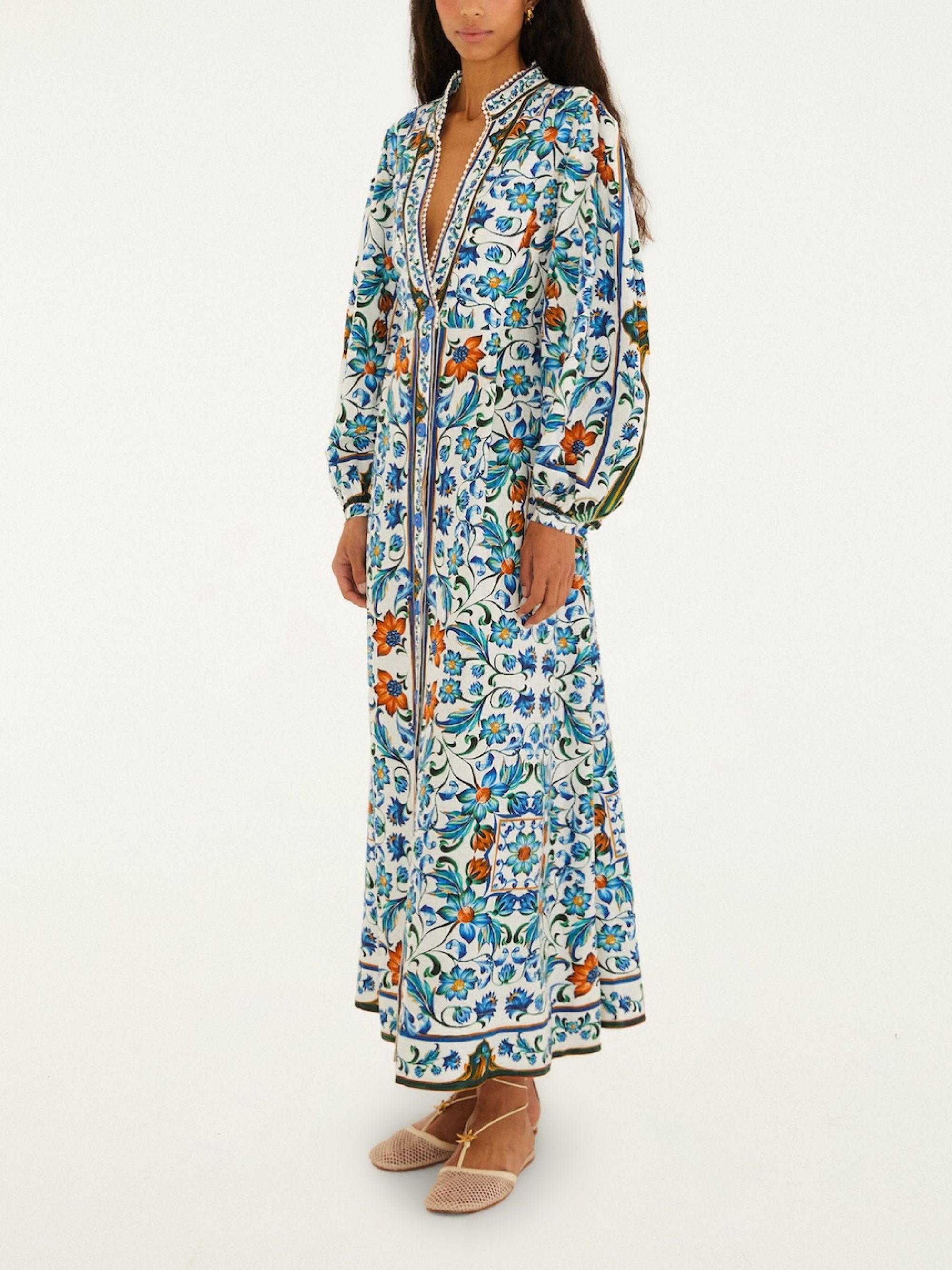 Abito Floratile di FARM RIO multicolor, caratterizzato da scollo a V con collo alto, stampa floreale, chiusura con bottoni e maniche lunghe.
