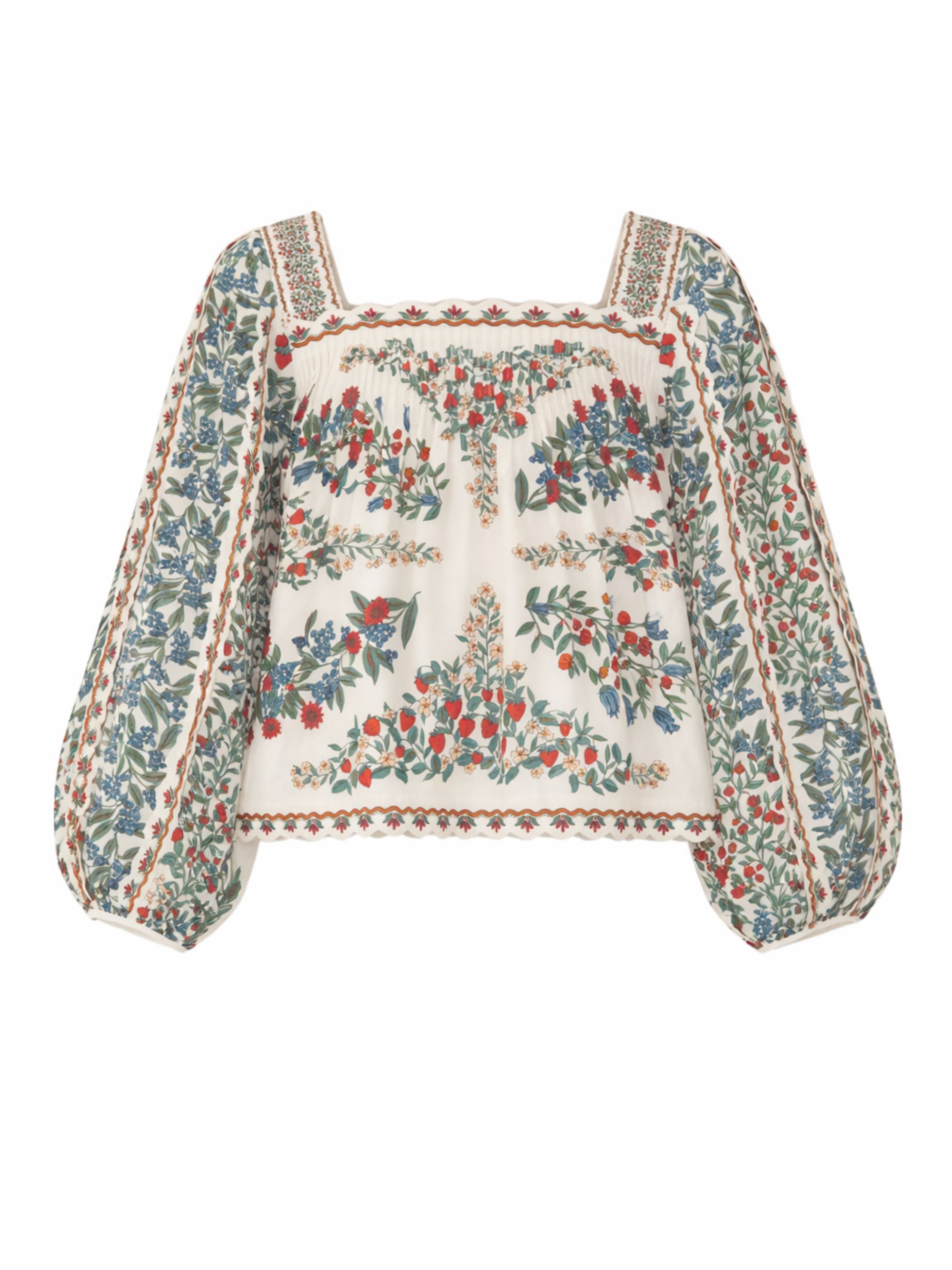 Camicia con stampa multicolor di FARM RIO in cotone biologico con scollo quadrato e vestibilità rilassata.
