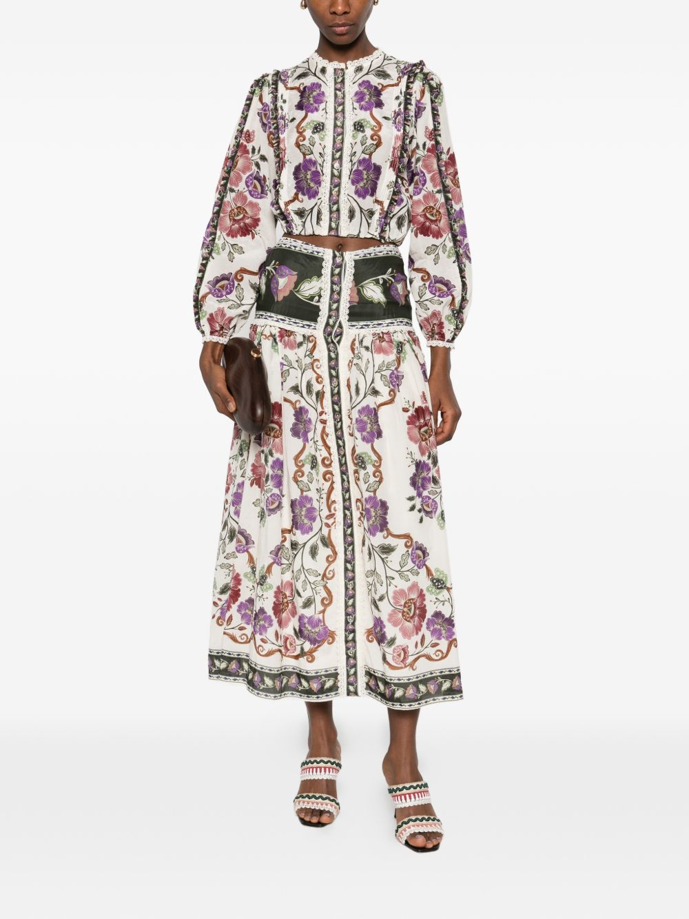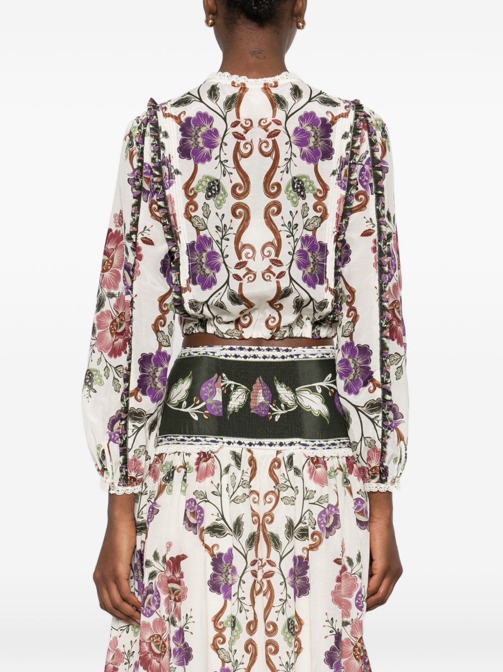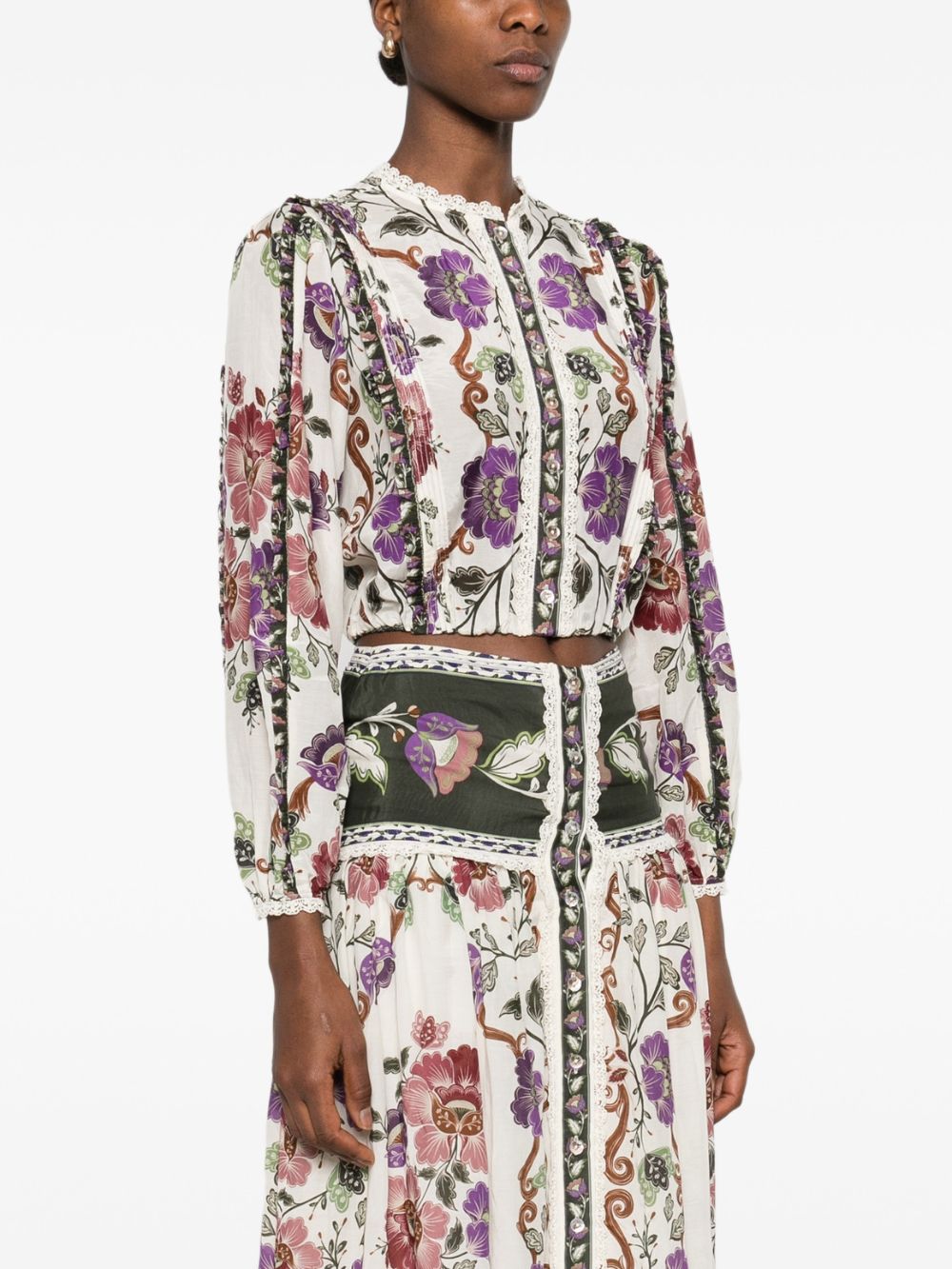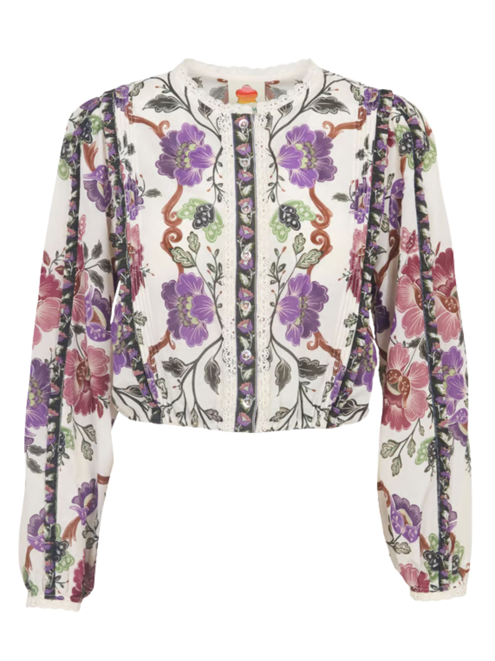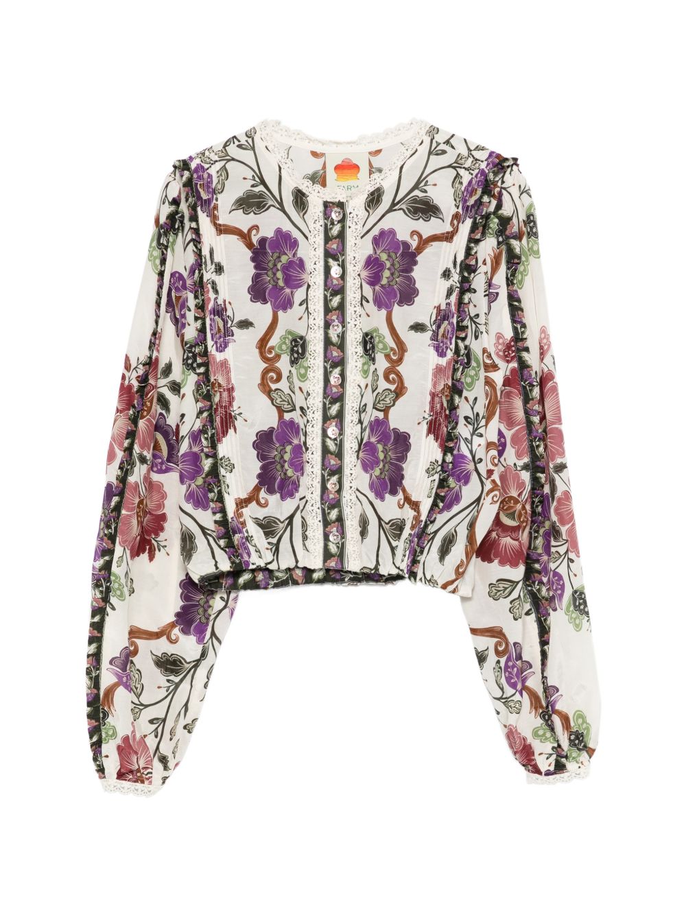 Camicia Rococo di FARM RIO multicolor in cotone e viscosa, caratterizzata da manich e lunghe, motivo floreale, dettagli in pizzo e chiusura con bottoni.