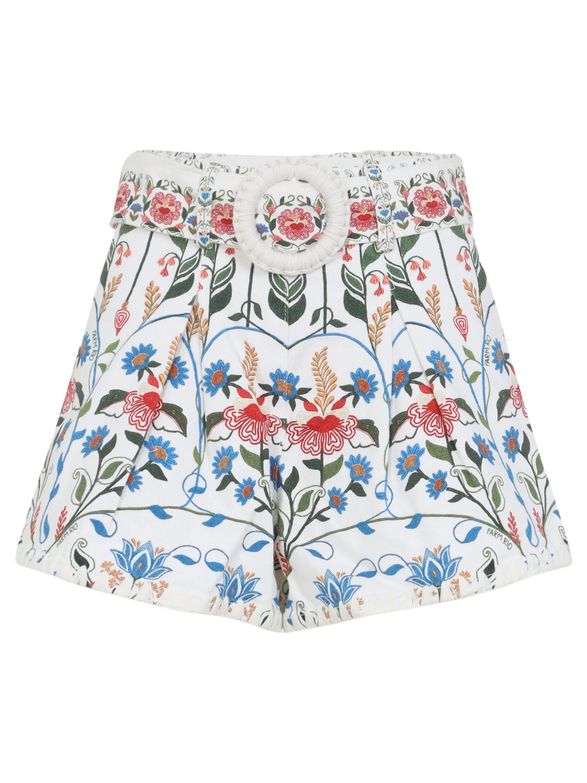 Shorts Fraga di FARM RIO multicolor in cotone, caratterizzati da motivo floreale, cintura con fibbia circolare e passanti per cintura.