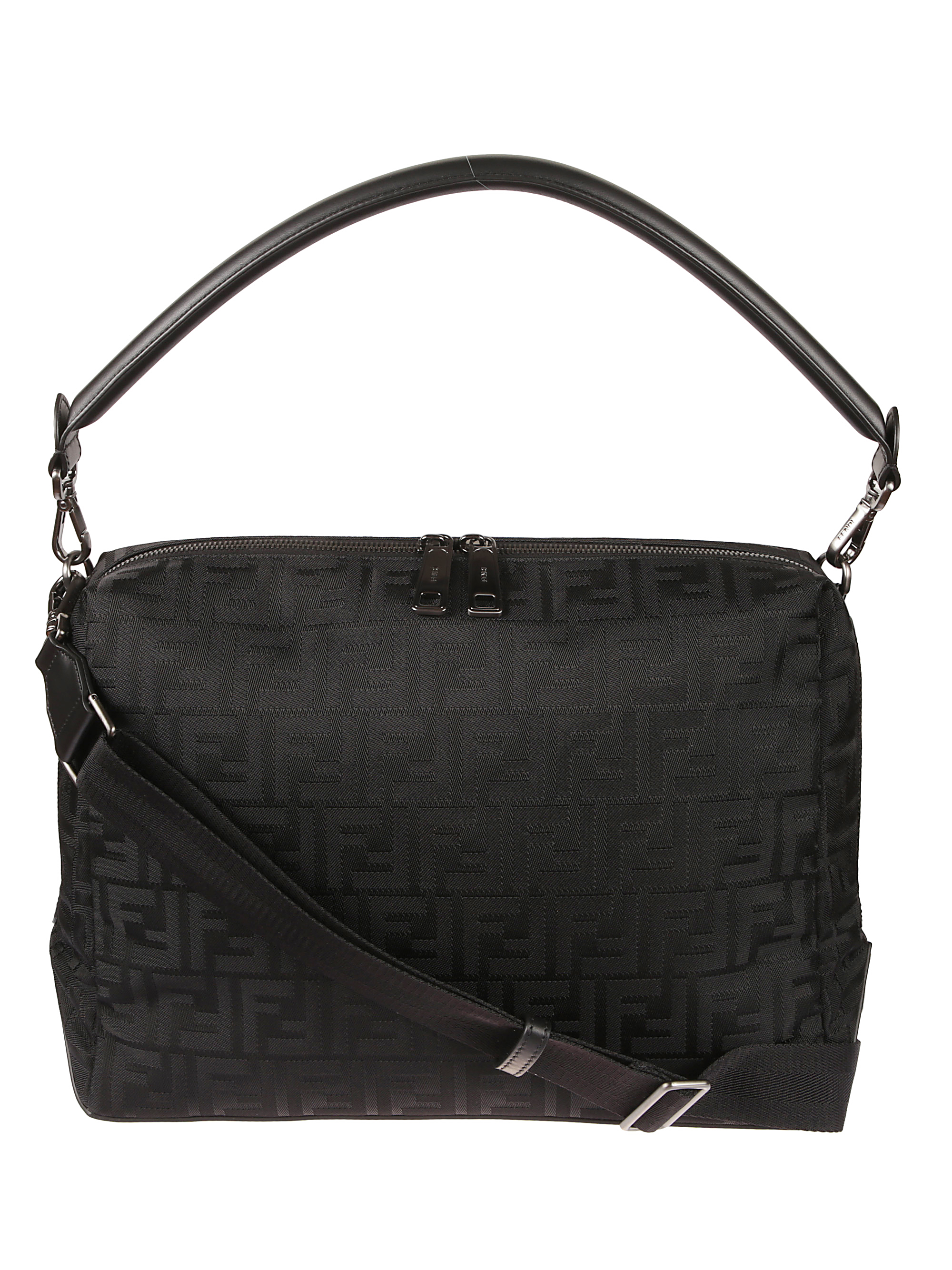 Borsa Fendi Lui grande di FENDI nera in nylon FF, caratterizzata da texture lucida e goffrata, chiusura con zip a doppio cursore, applicazioni metalliche FF sugli angoli, manico rimovibile e tracolla regolabile. Dimensioni: 27 x 13 x 34 CM.