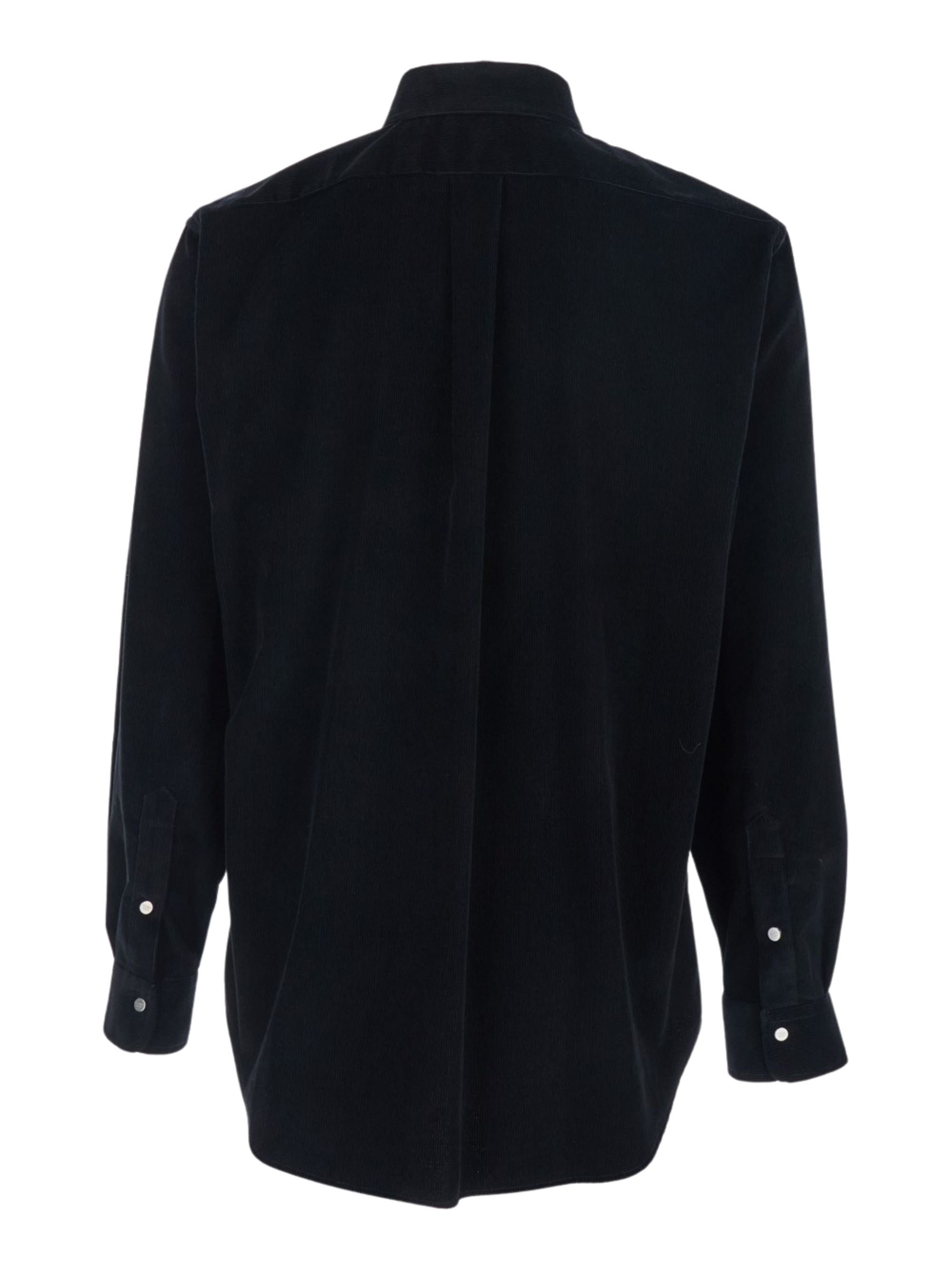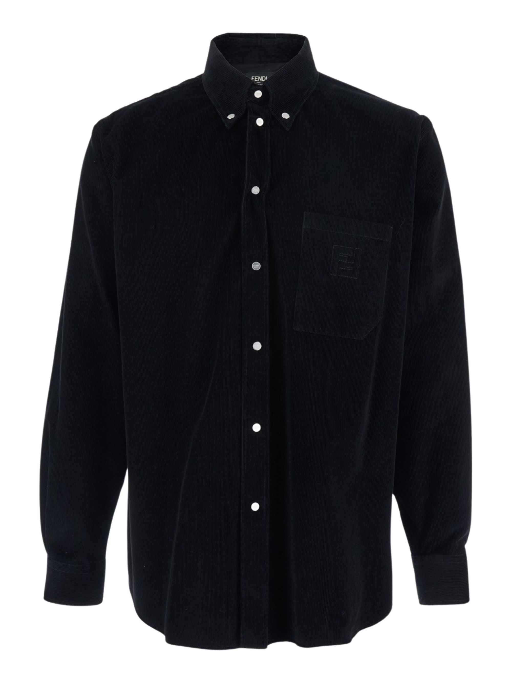 Camicia con ricamo FF di FENDI nera in velluto di cotone, caratterizzata da colletto button-down, taschino sul petto, chiusura con bottoni a vista e dettaglio FF ricamato.