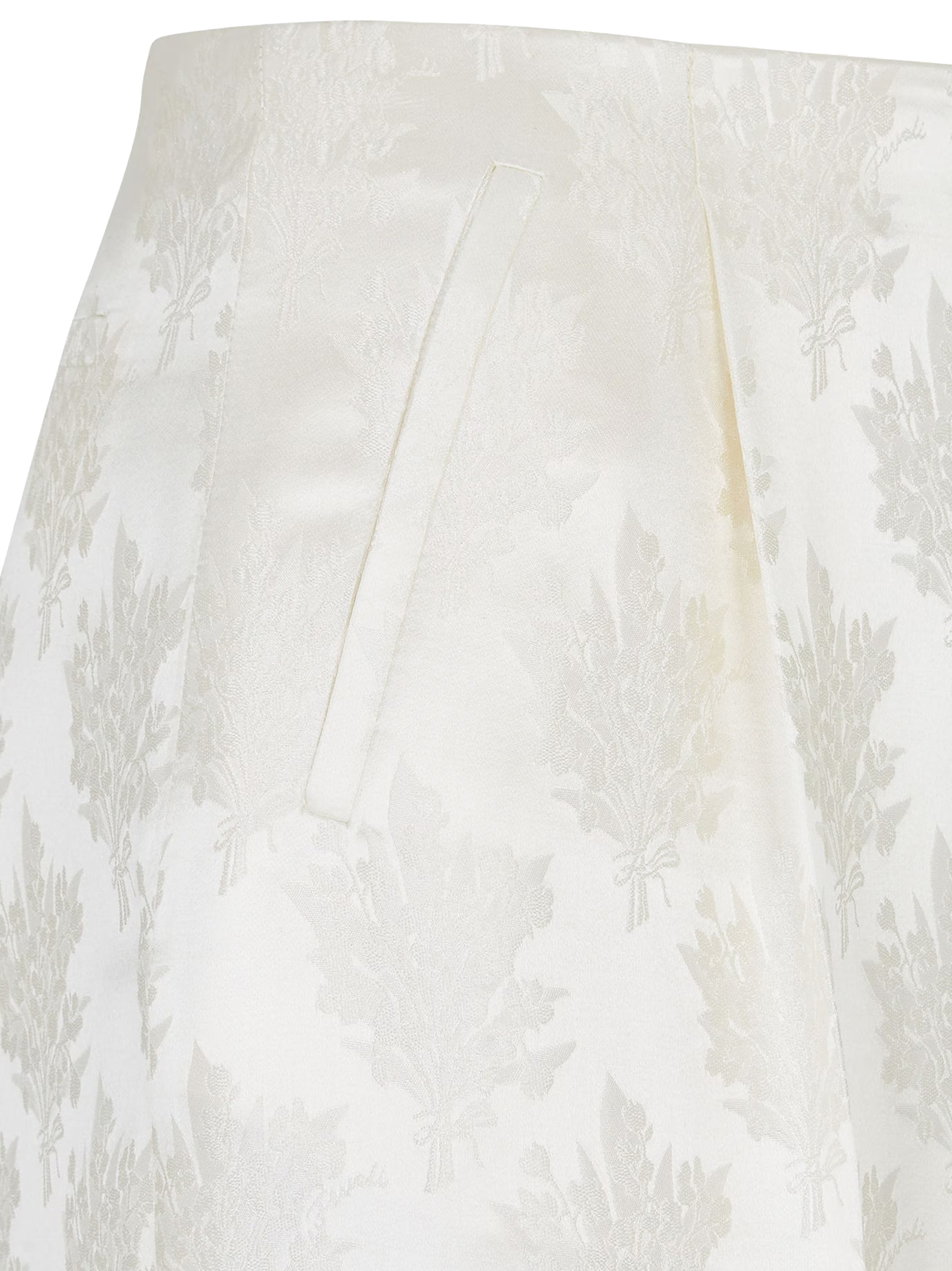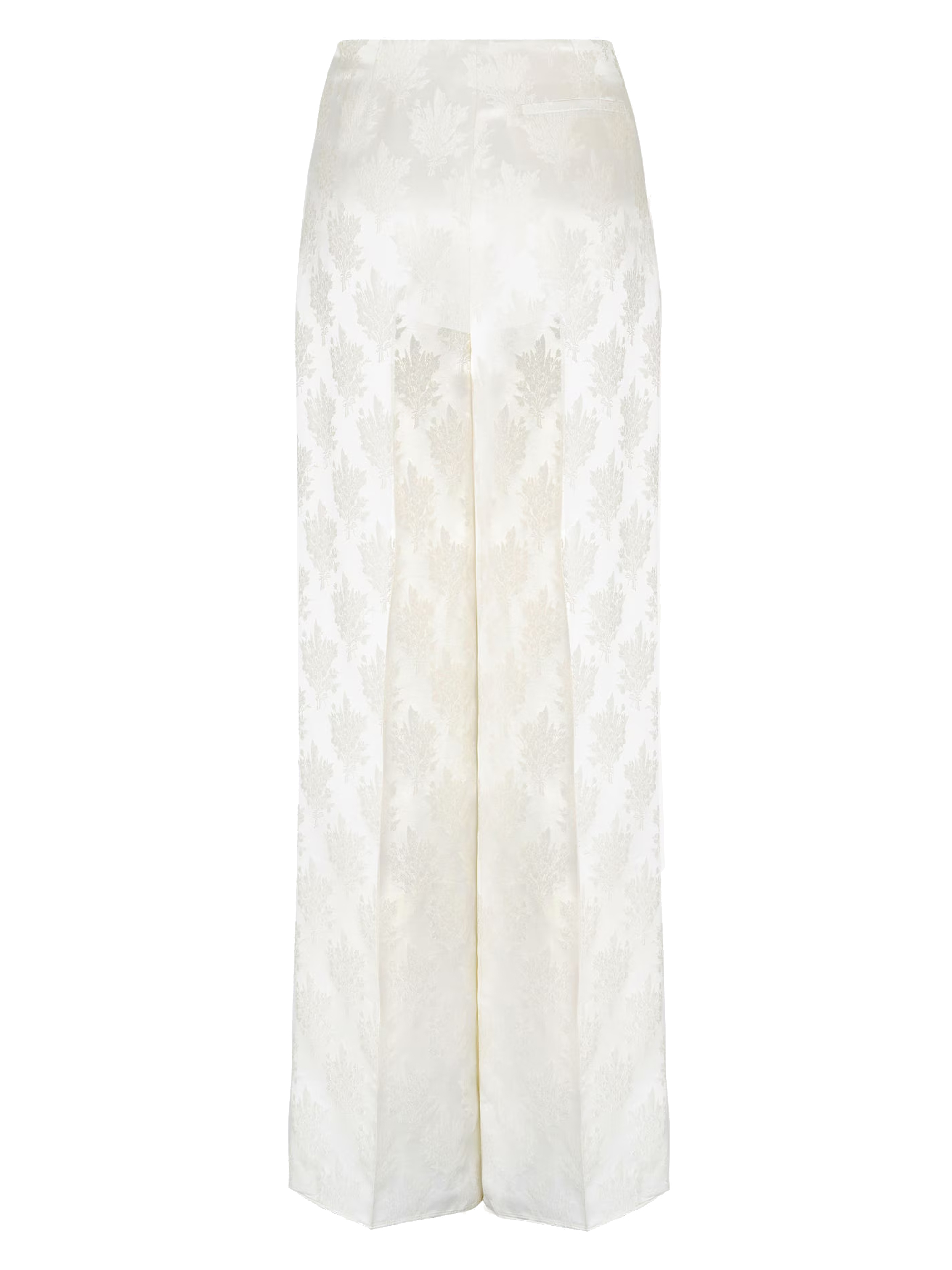 Pantalone Bouquet di FENDI bianco in seta con pinces sul davanti, piega stirata, tasche sui fianchi, taschino a filetto sul retro e chiusura con zip sul fianco.