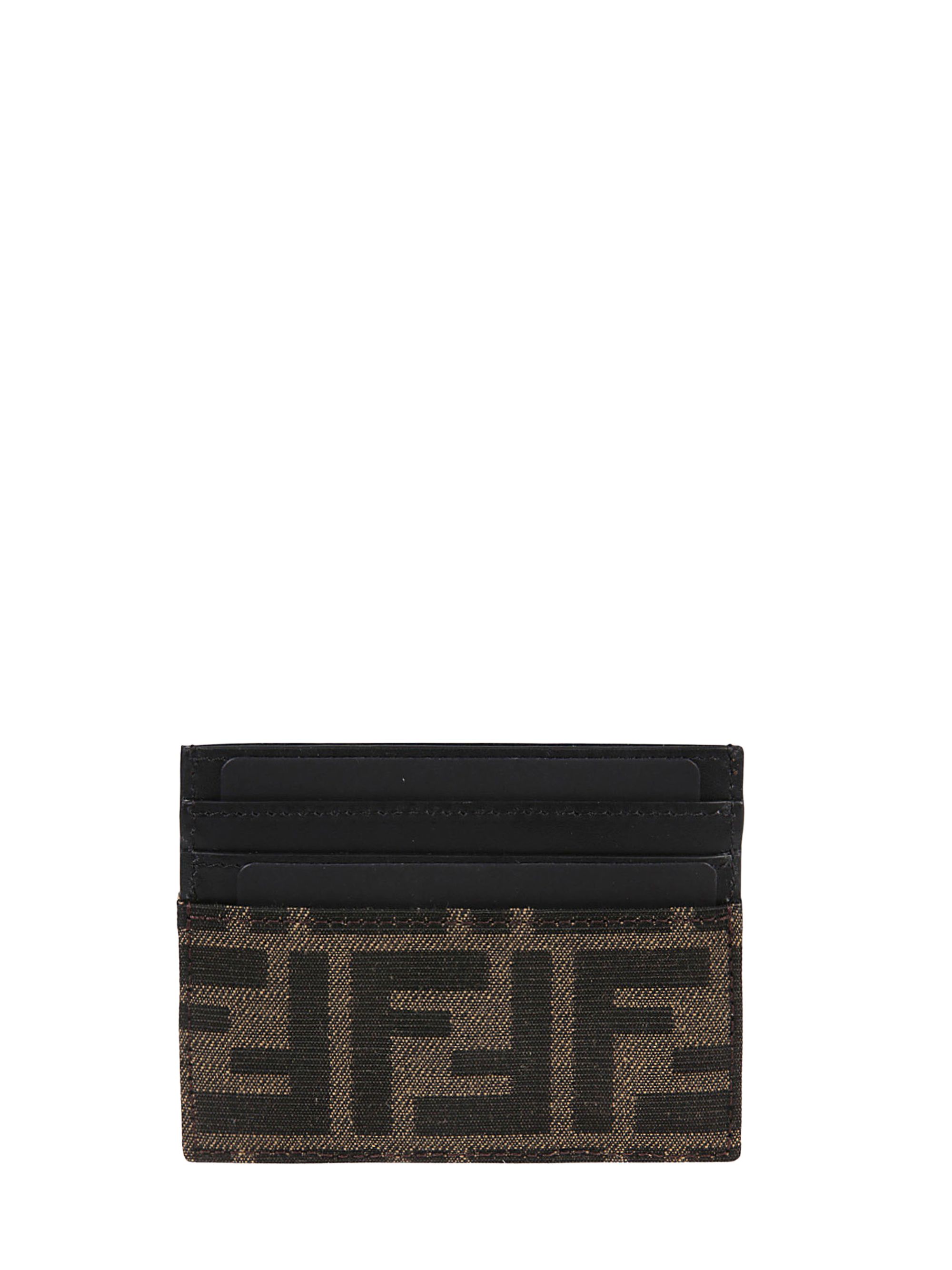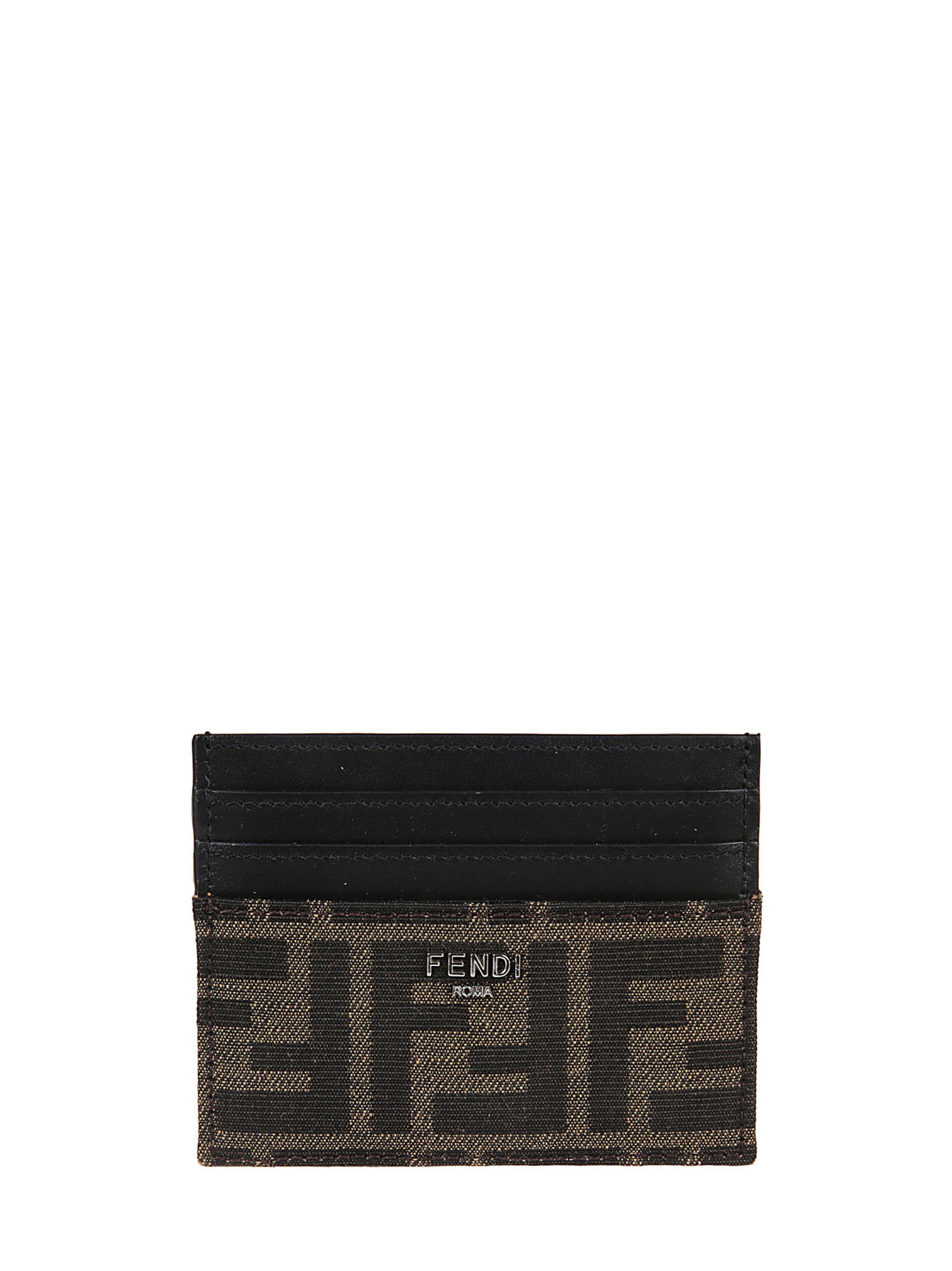 Portacarte FF Jacquard di FENDI marrone in tessuto FF, caratterizzato da 6 slot, tasca piatta centrale, dettagli in tessuto FF e lettering Fendi Roma in metallo con finitura palladio.