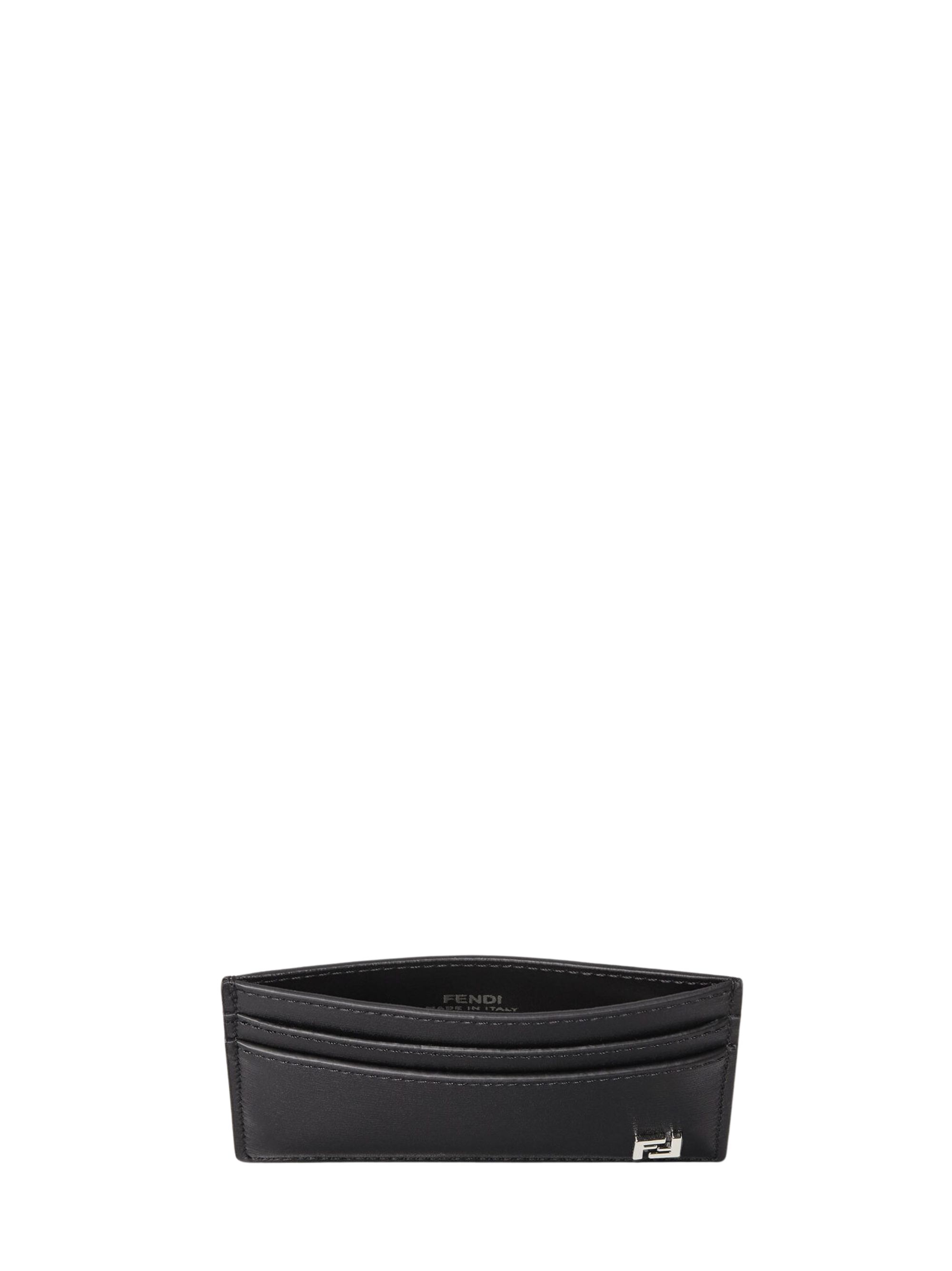 Portacarte Squared FF di FENDI nero in pelle, caratterizzato da 4 slot, una tasca piatta centrale e motivo Squared FF in metallo con finitura palladio.