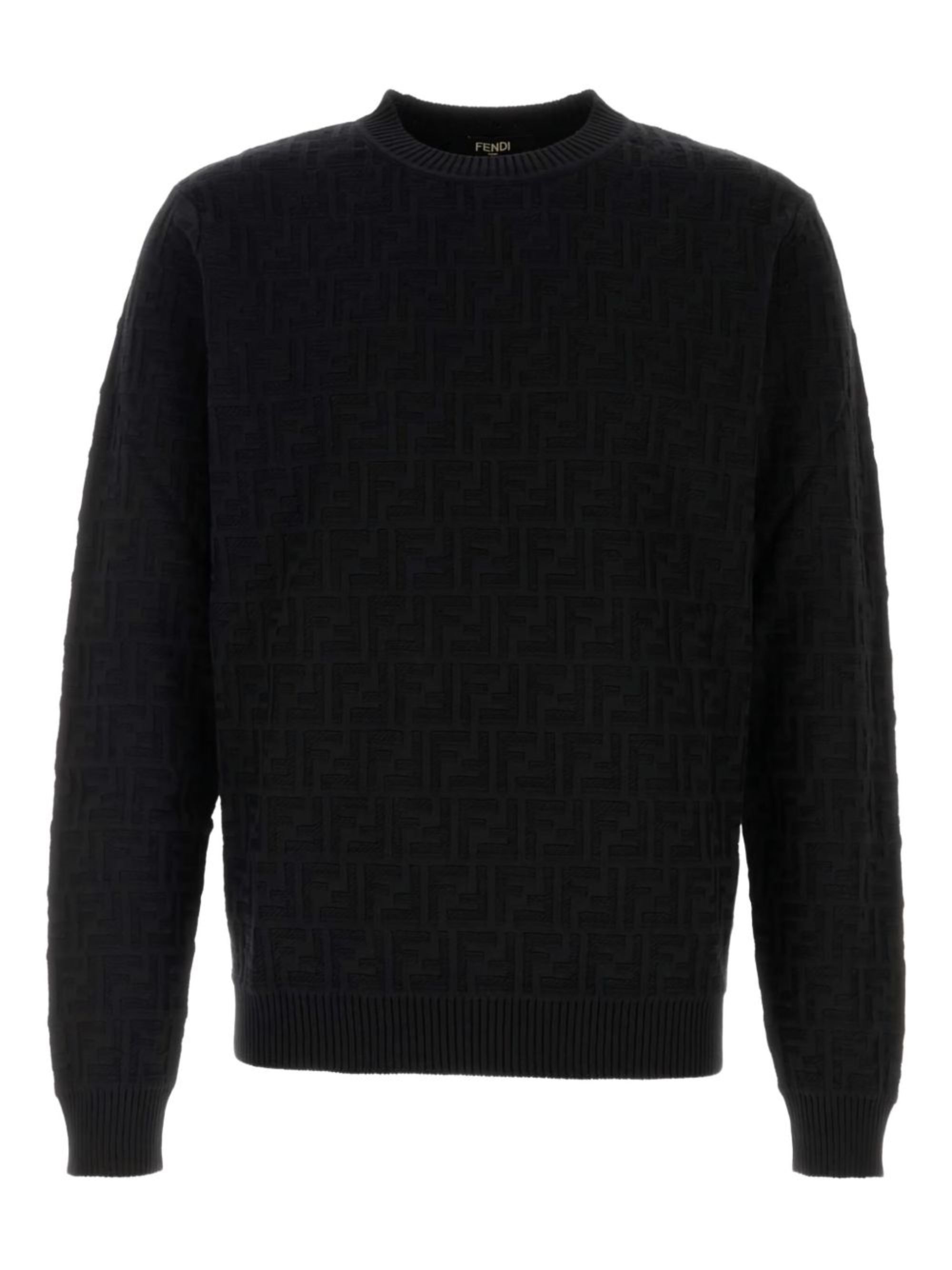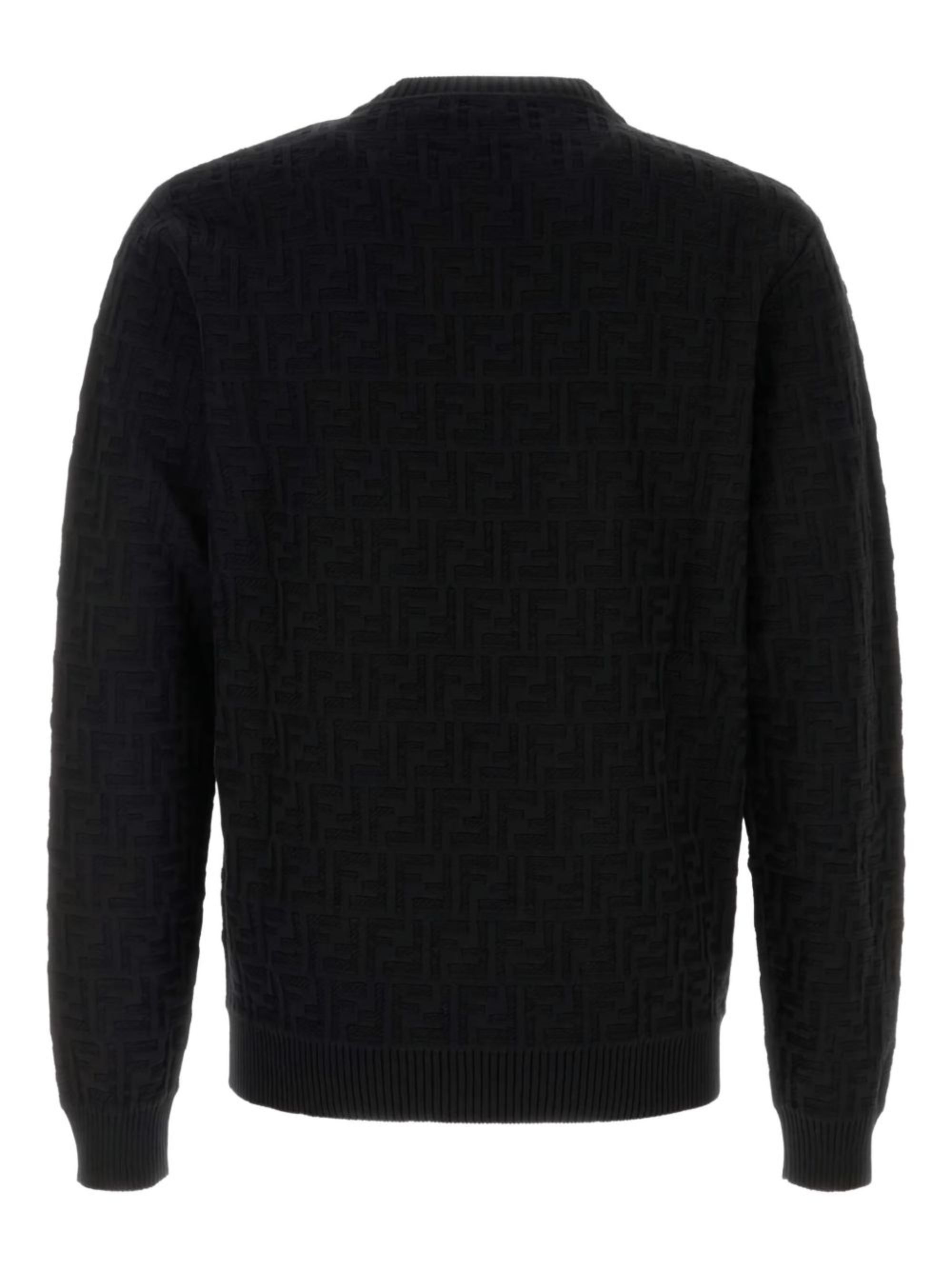 Pullover con motivo FF di FENDI nero in cotone, caratterizzato da motivo FF all-over, maniche lunghe, girocollo e bordi a costine.
