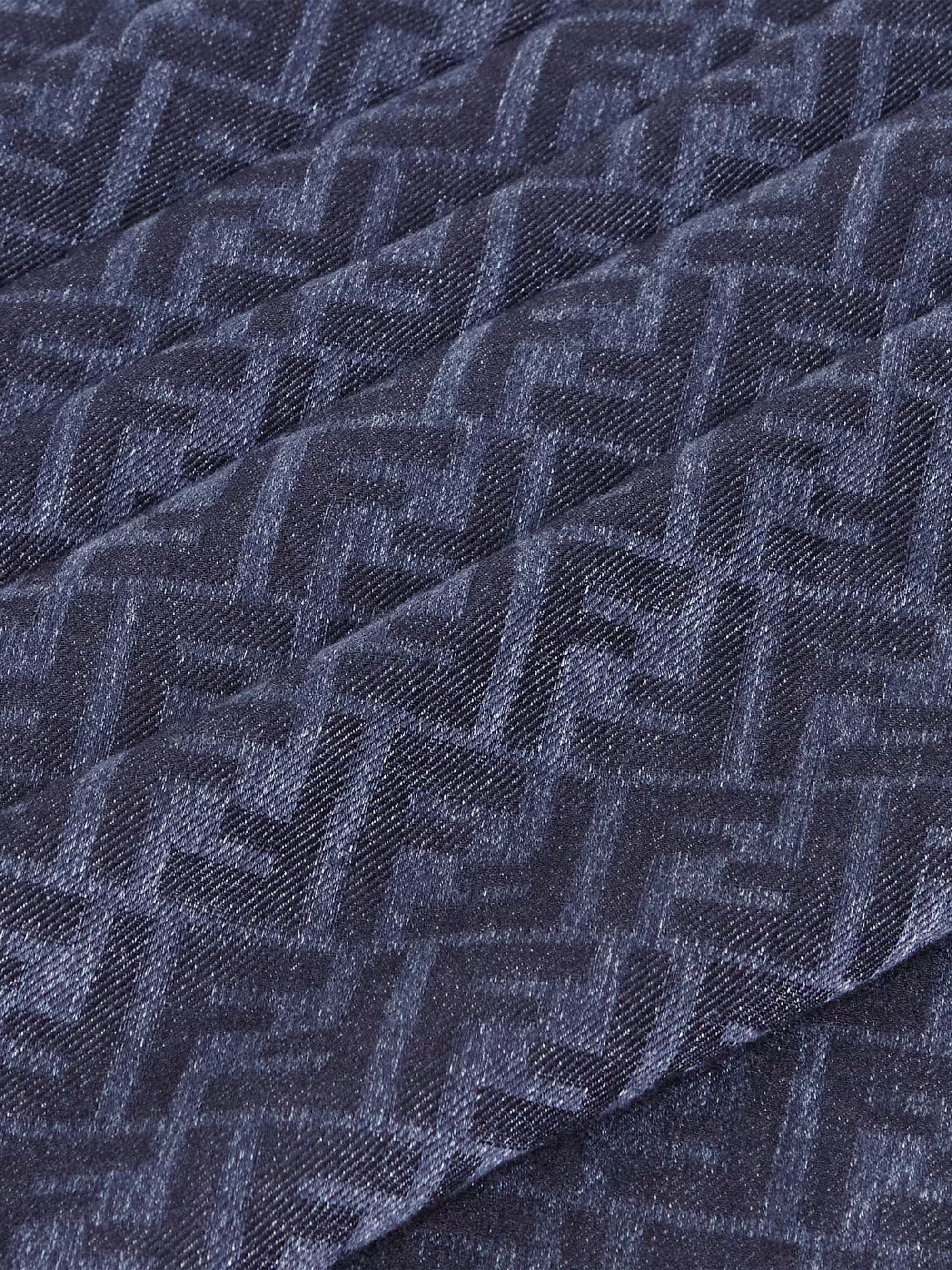 Scialle FF di FENDI blu in cotone e lana con motivo FF all over e logo.