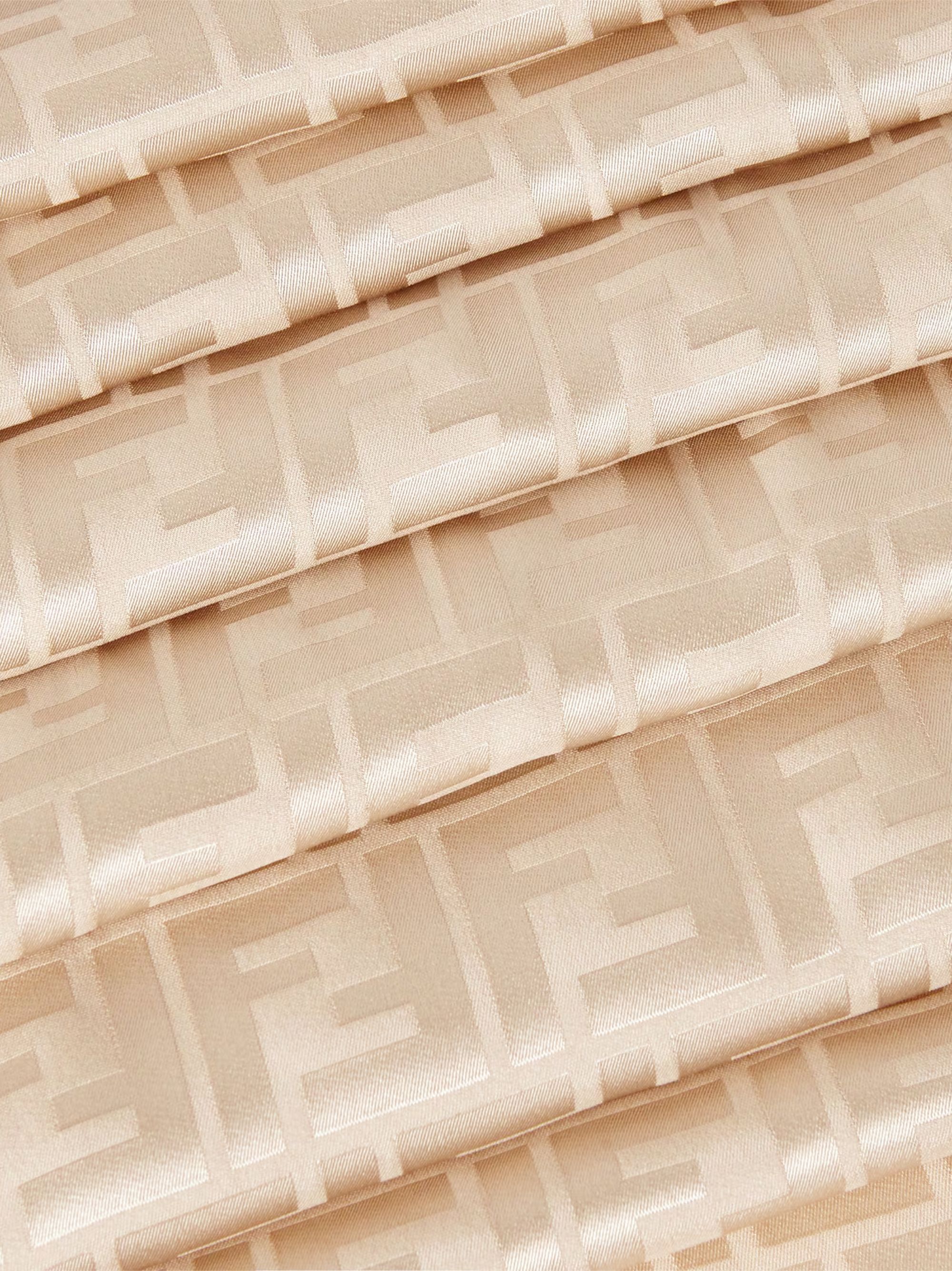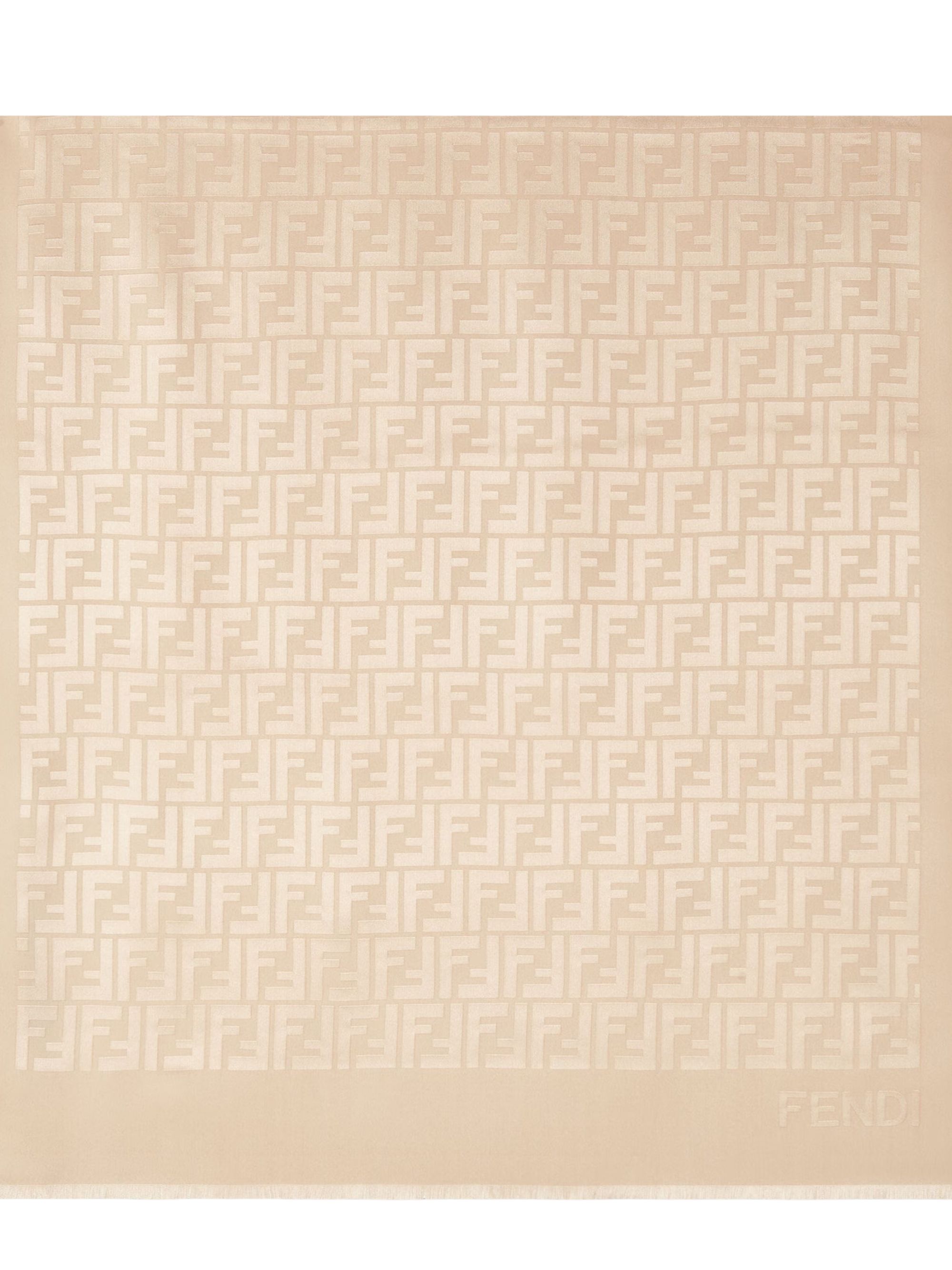 Stola FF di FENDI beige in seta, caratterizzata da motivo FF jacquard all-over e fondo sfrangiato a mano.