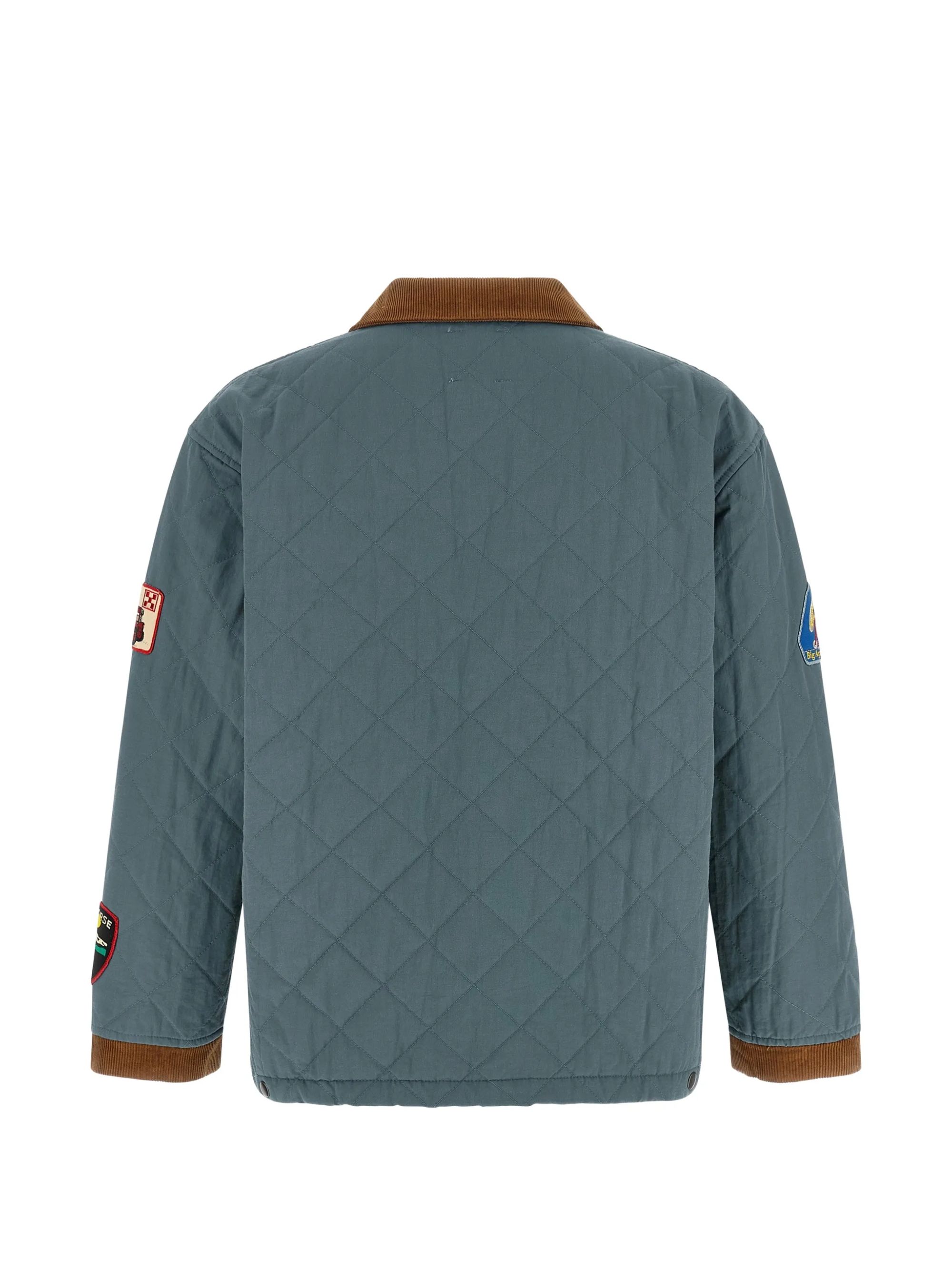 Giubbino in jeans di FOUND caratterizzato da patch applicati , colletto a camicia in velluto, maniche lunghe e chiusura a bottoni.