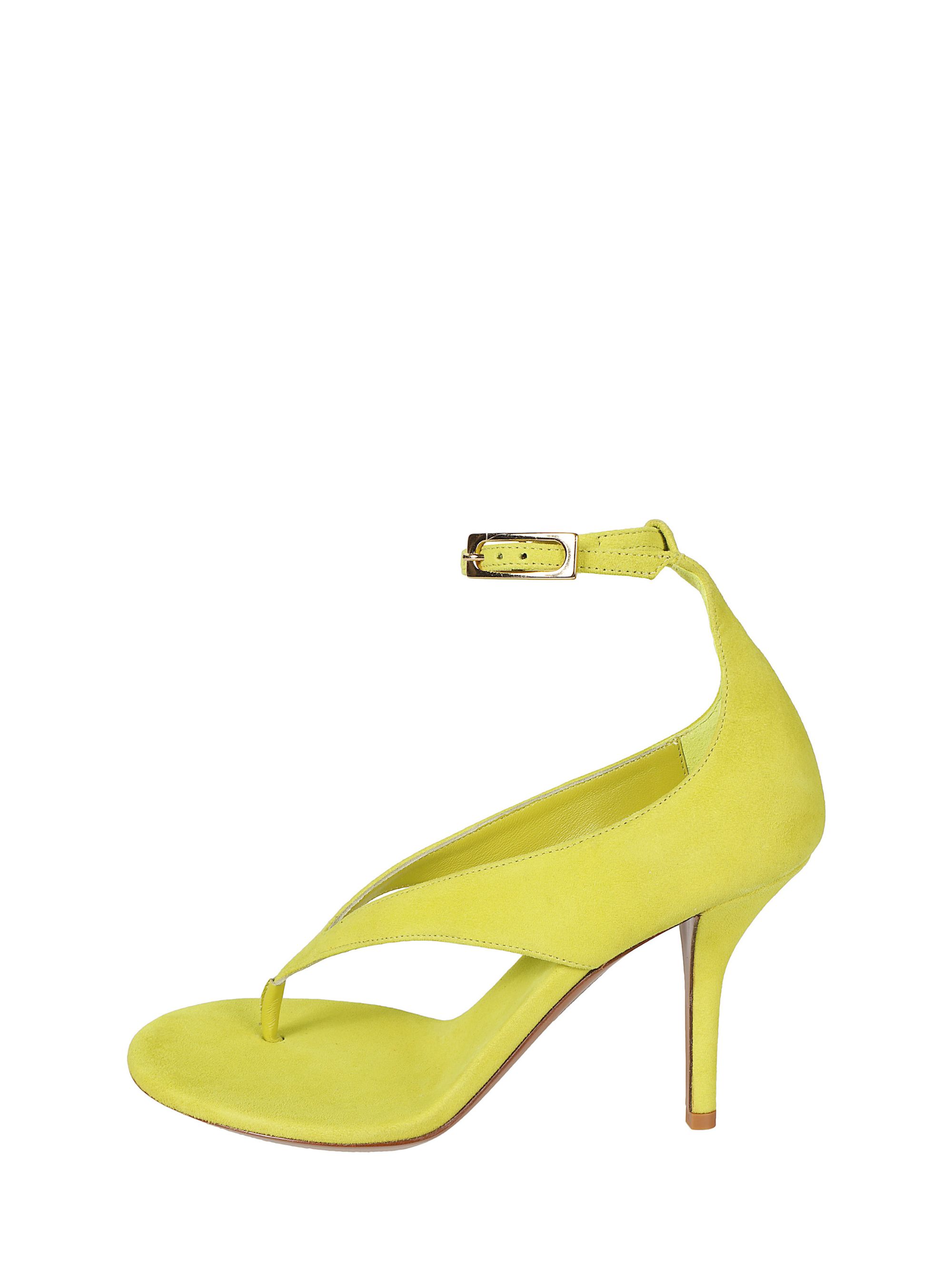 Scarpa con tacco Alice di GIA BORGHINI verde in pelle scamosciata, caratterizzata da infradito e cinturino alla caviglia regolabile.