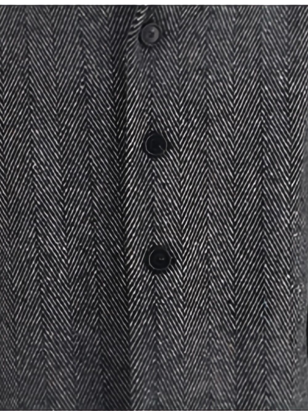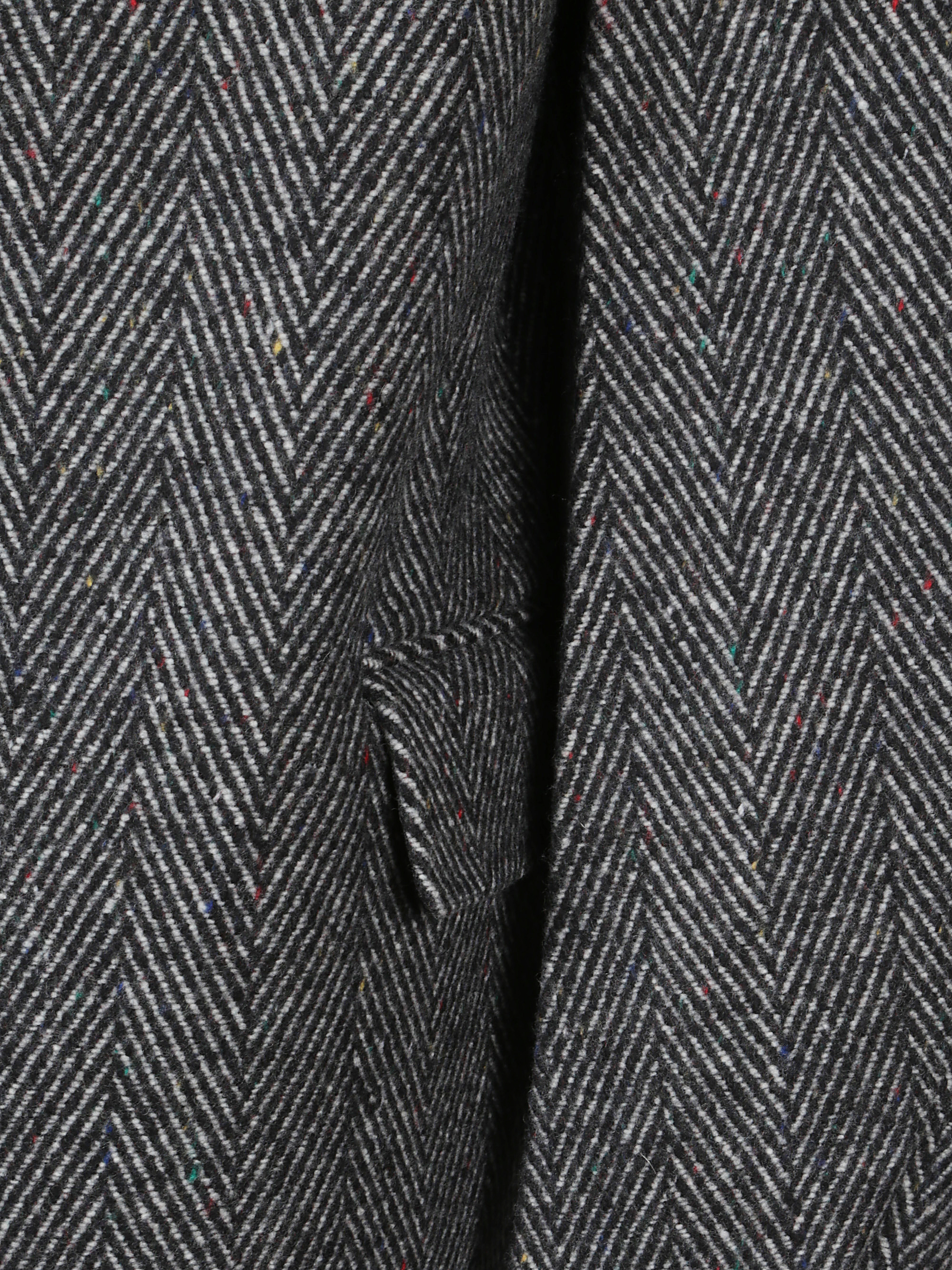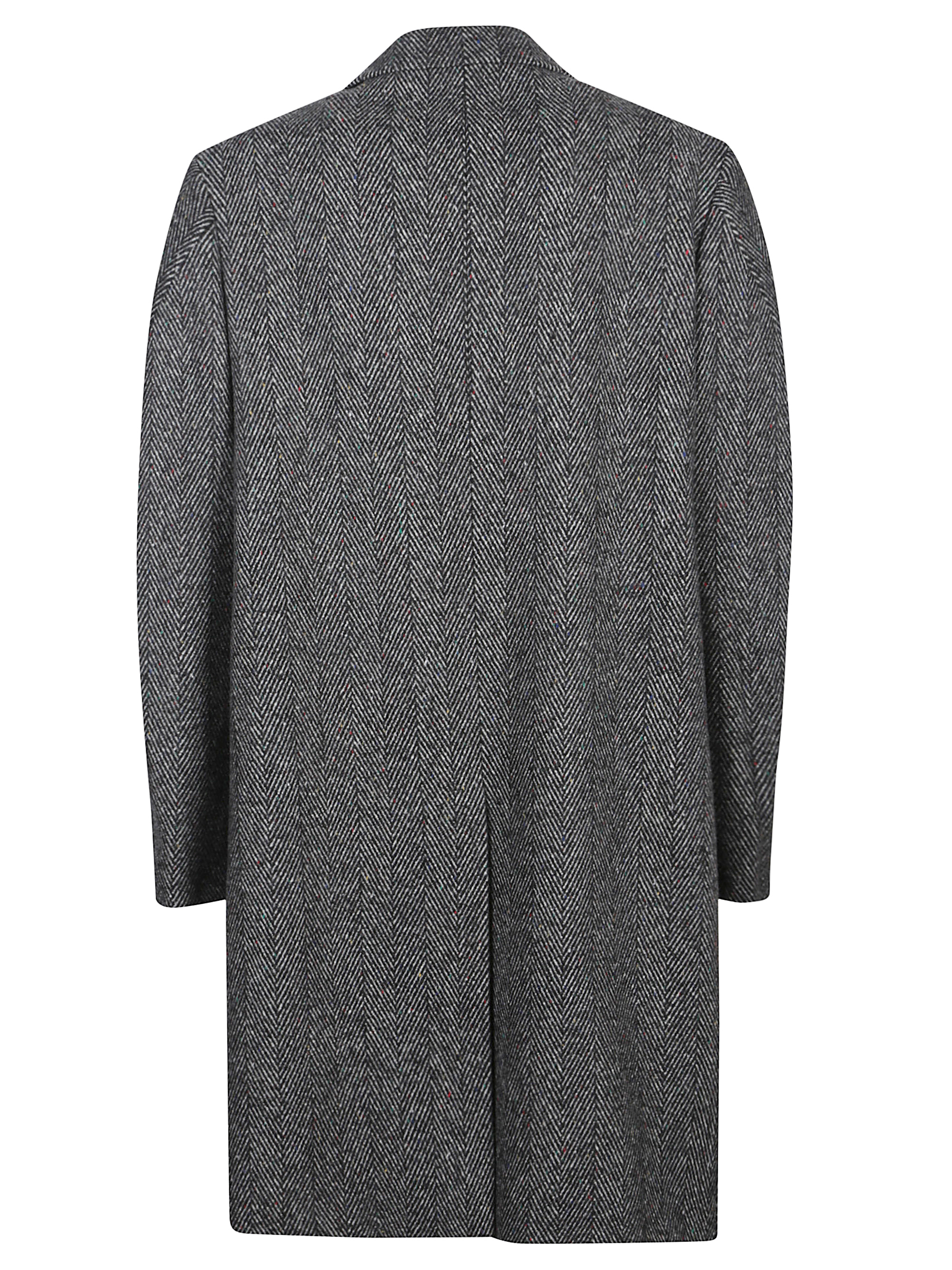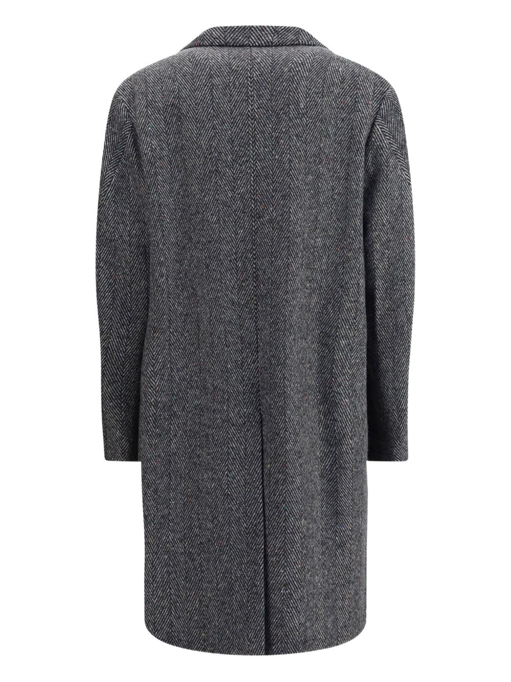 Cappotto spigato di GIVENCHY grigio in misto lana con revers a lancia, spacco posteriore, tasche con pattina e chiusura con bottoni.