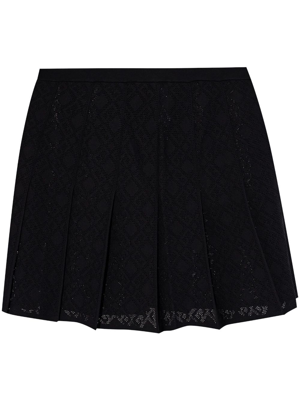 Minigonna plissé di GIVENCHY nera in viscosa con fascia in vita a coste, maglia con effetto traforato e chiusura laterale con zip nascosta.