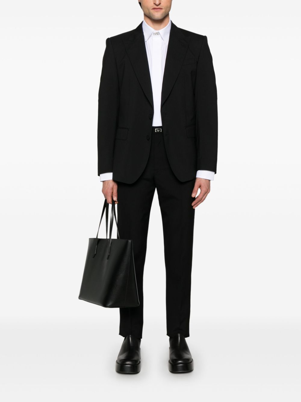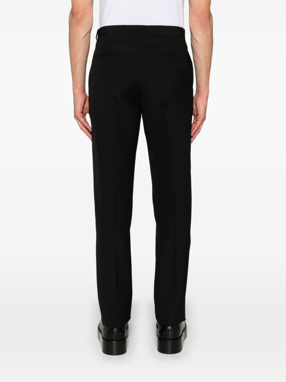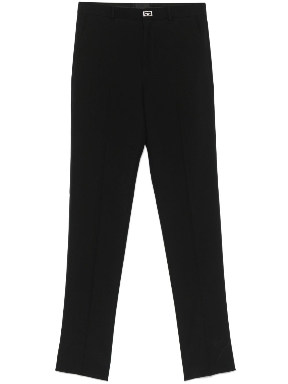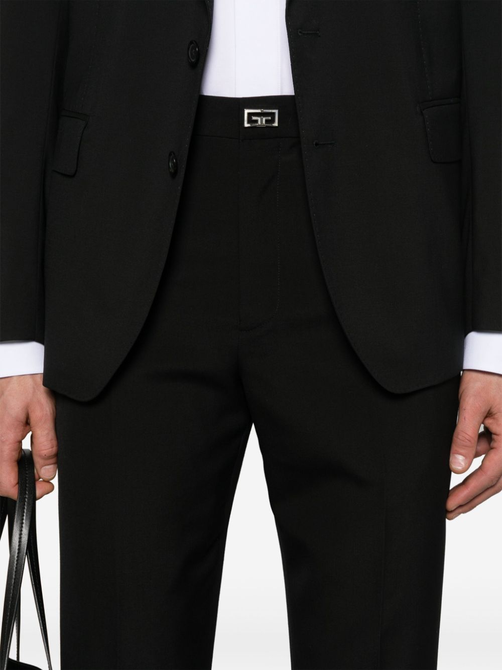 Pantalone sartoriale di GIVENCHY nero in lana con tasche posteriori a filetto, placca con logo argento e chiusura frontale nascosta.