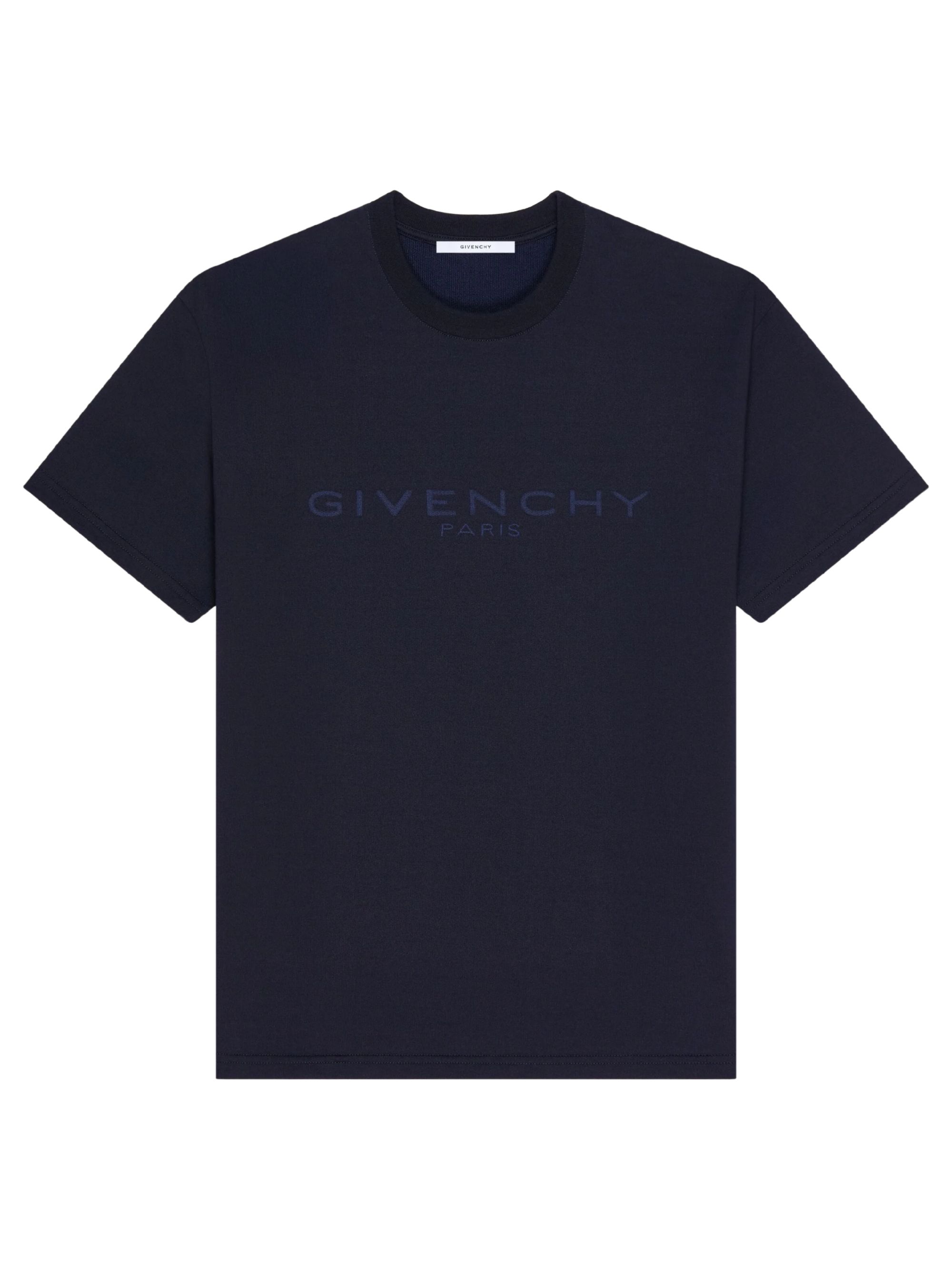 T-shirt con logo di GIVENCHY blu in cotone e seta, caratterizzata da girocollo e logo Givenchy Paris tono su tono sul petto.